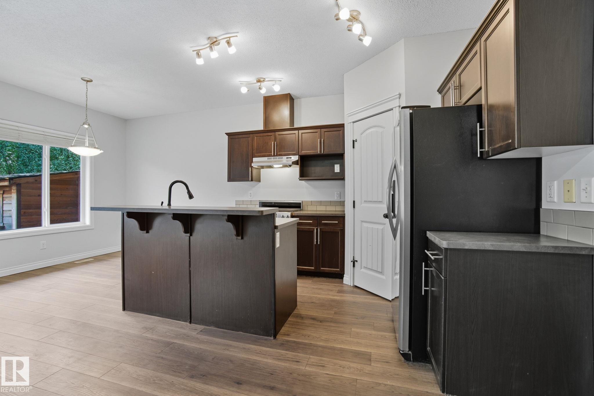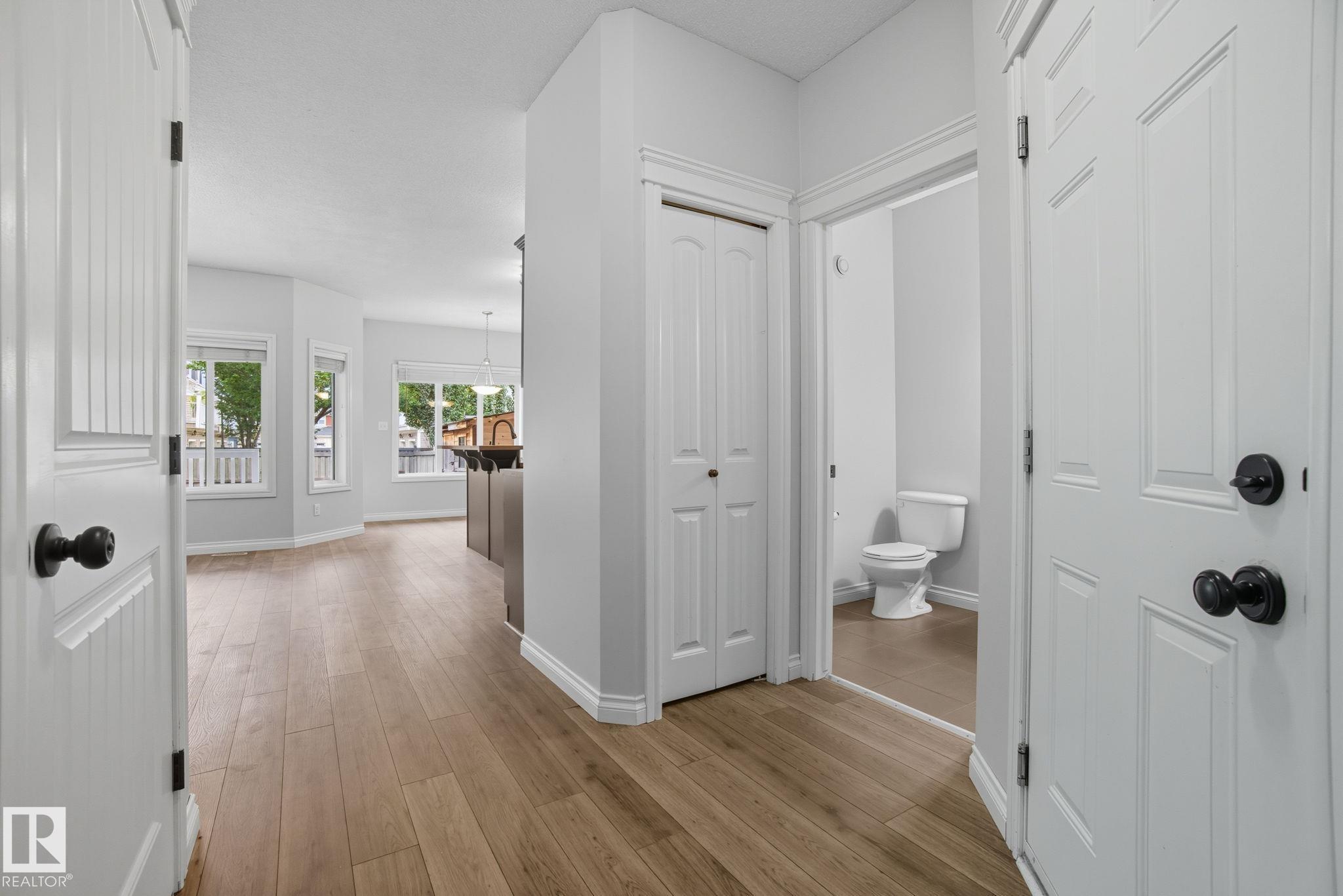 Welcome to this charming half duplex in Ambleside, perfectly located just steps from Dr. Margaret-Ann Armour School?ideal for young families! This 2-storey home features 3 bedrooms, 2.5 baths, and an attached single garage. Freshly painted with brand-new flooring, it?s move-in ready and has no condo fees. The spacious backyard backs onto scenic walking trails, creating a private space for kids to play or family BBQs. Inside, enjoy cozy evenings by the fireplace in the bright, open living room. The unfinished basement offers endless possibilities to design the perfect playroom, gym, or family retreat. Situated in the heart of Windermere, you?re within walking distance to top amenities including shopping, groceries, banks, medical services, restaurants, and even the movie theatre. This low-maintenance home combines comfort, convenience, and community living?all that?s missing is you!