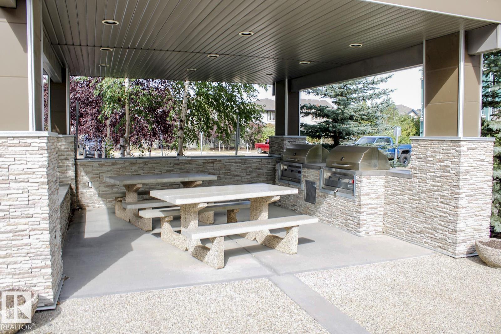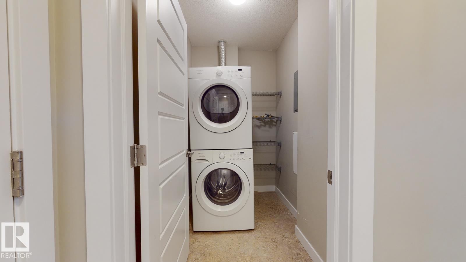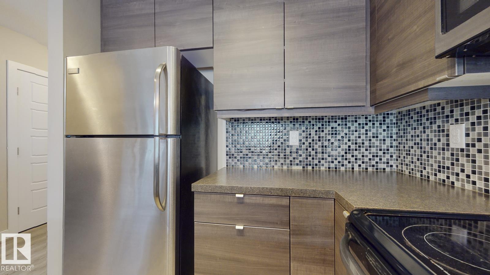 This building is located in the ION of AMBLESIDE. The condo features a spacious layout including an open concept kitchen with tile backsplash and stainless steel appliances. The large living and dining room features laminate flooring and an entrance to a patio area. There is a spacious bedroom with WALK-IN closet, a full bathroom, in-suite laundry and a computer station. Enjoy the convenience of a TITLE energized parking stall. This complex features many amenities including BBQ area, entertainment room, fitness room and a guest suite. This building in close to all amenities including shopping, public transportation, restaurants, schools, Currents of Windermere and easy access to the Anthony Henday.
