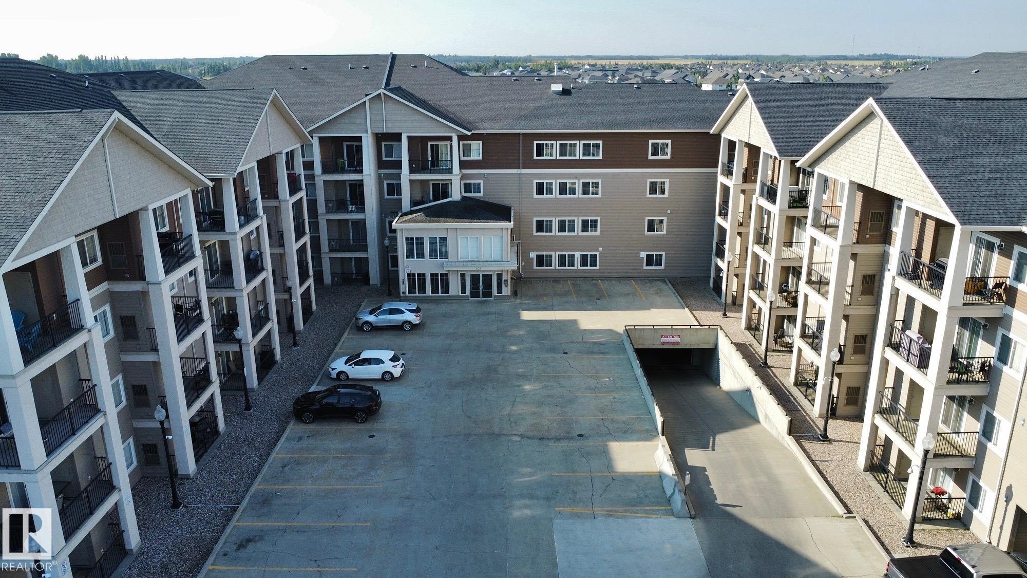 2 bedroom 2 full bathroom condo in Leduc. This unit features a large open concept kitchen with an island, 5 appliances, a large storage room with in-suite laundry, air conditioning and a large patio with gas hookup for BBQ. The master bedroom has a walkthrough his and hers closet with plenty of storage space and opens to a large ensuite with bathtub, shower, vanity, and plenty of counter space. The kitchen is fully equipped with a fridge, stove, microwave, dishwasher, and kitchen island, with a double sink. The building is located just blocks from Leduc Common and has an equipped exercise room, three elevators, security cameras throughout, and ample visitor parking. Water, heat and window treatments are included, along with a secure underground parking stall. No pets.
