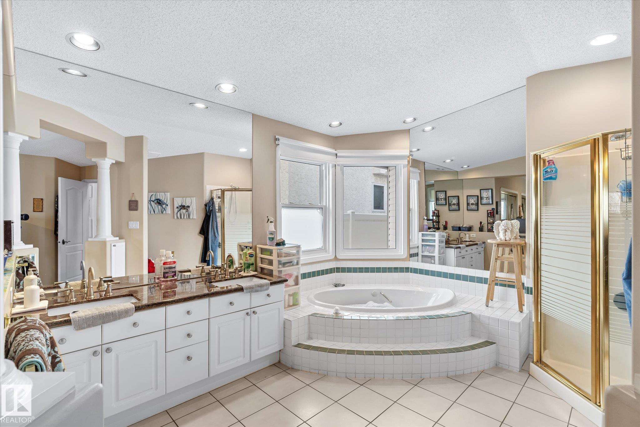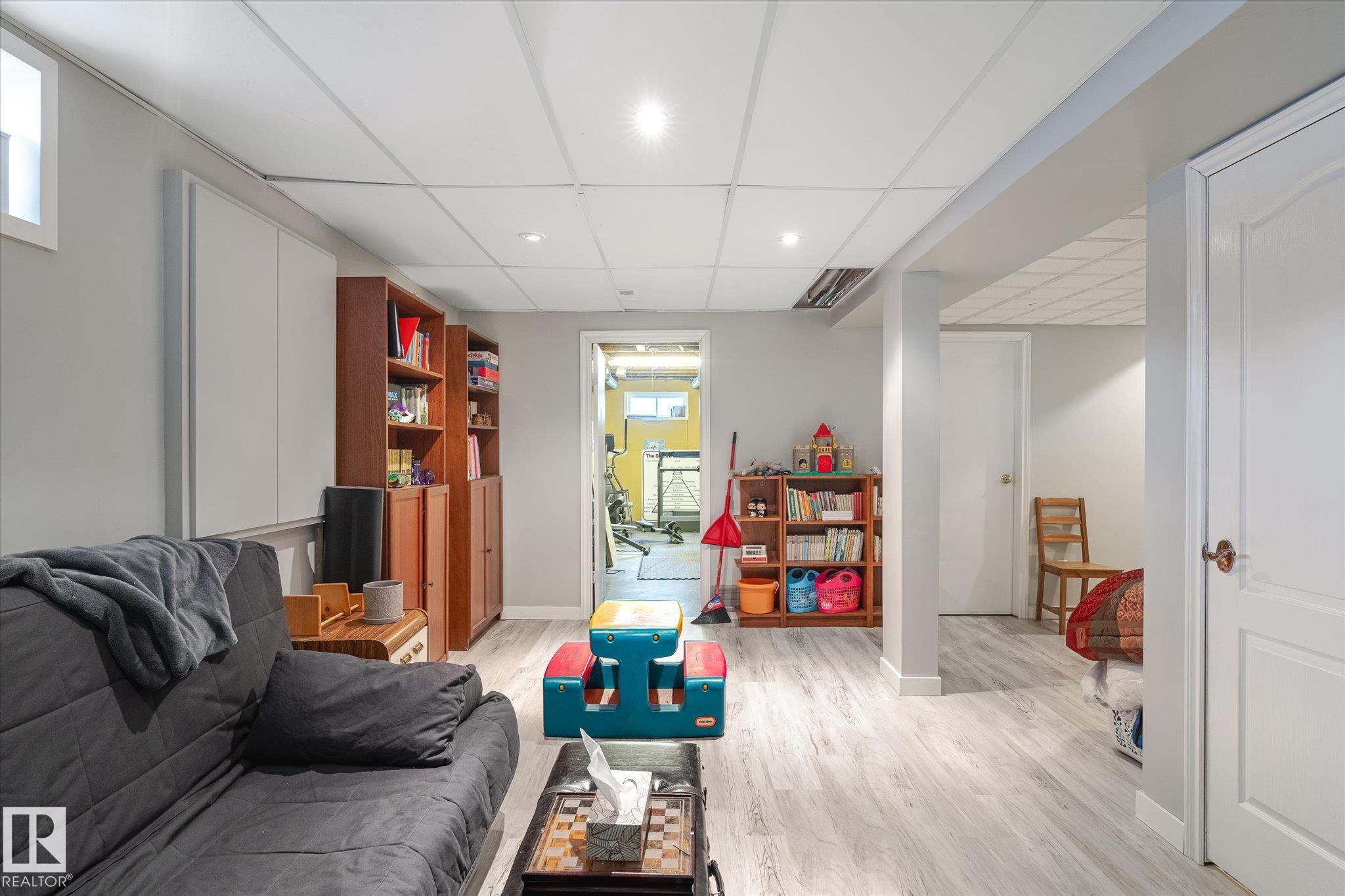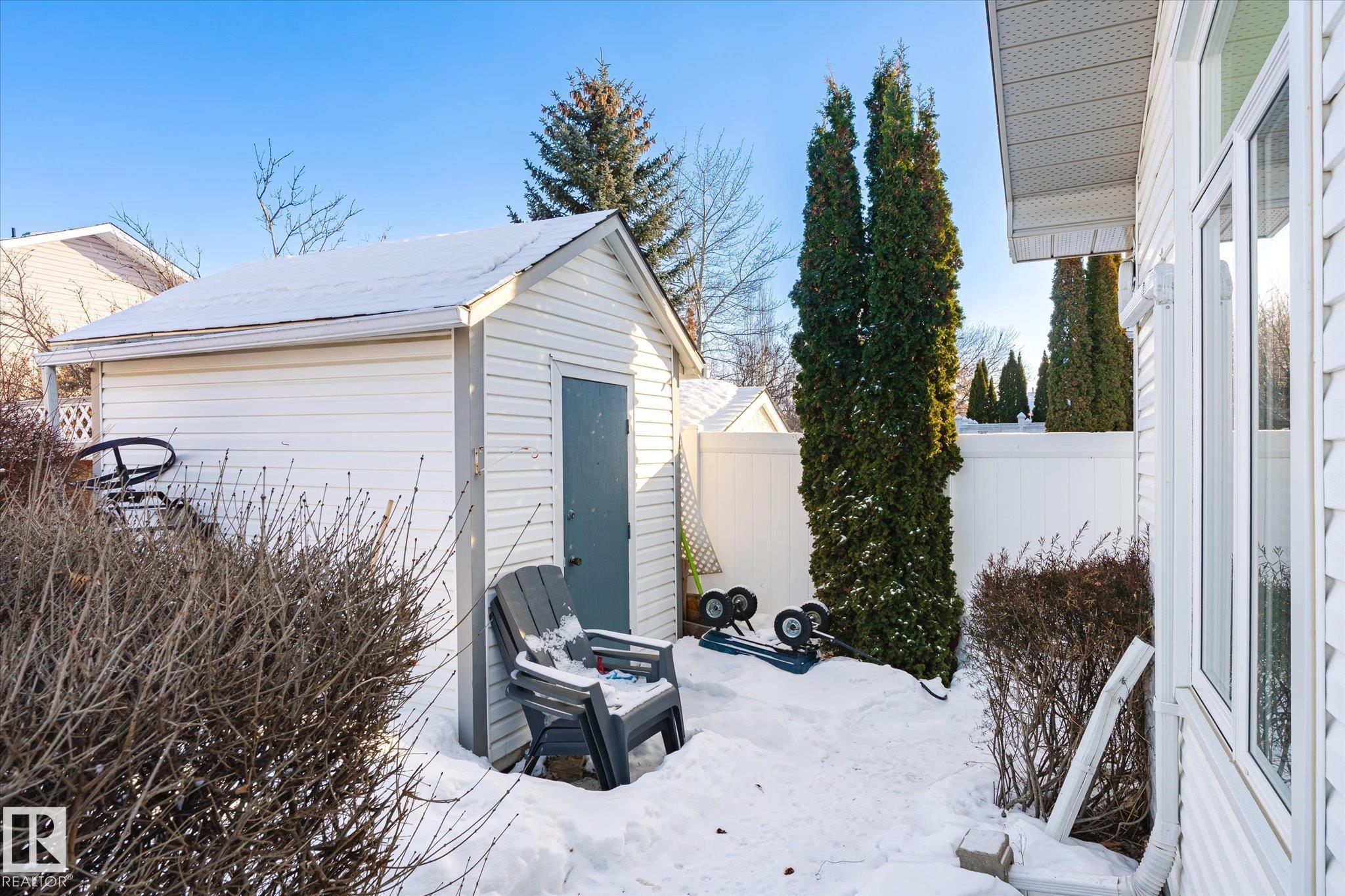 Huge (1919.54 sq. ft. ) Beautiful Bungalow on corner lot with 2 Parking pads !!! Basement is completed with Bedroom ,Bathroom ,oversize recreation room and office/craft room. Home has very opened concept with two sided fireplace adorning the main level. Former Klondike home built by Encore. Granite countertops in kitchen .Gas hook up for dryer and barbeque . Most windows have been upgraded ,New dishwasher in 2025 ,new shingles on roof and shed in the last 5 years .New Furnace and air conditioner in 2025. All fencing except the back section is Low Maintenance . Tile in the bathroom in the upstairs and family room have in floor heating .Home is fully finished with Great family potential.Located with very easy access to Anthony Henday Freeway, Shopping,Public Transportation ,Sports Centre ,Parks and Schools.