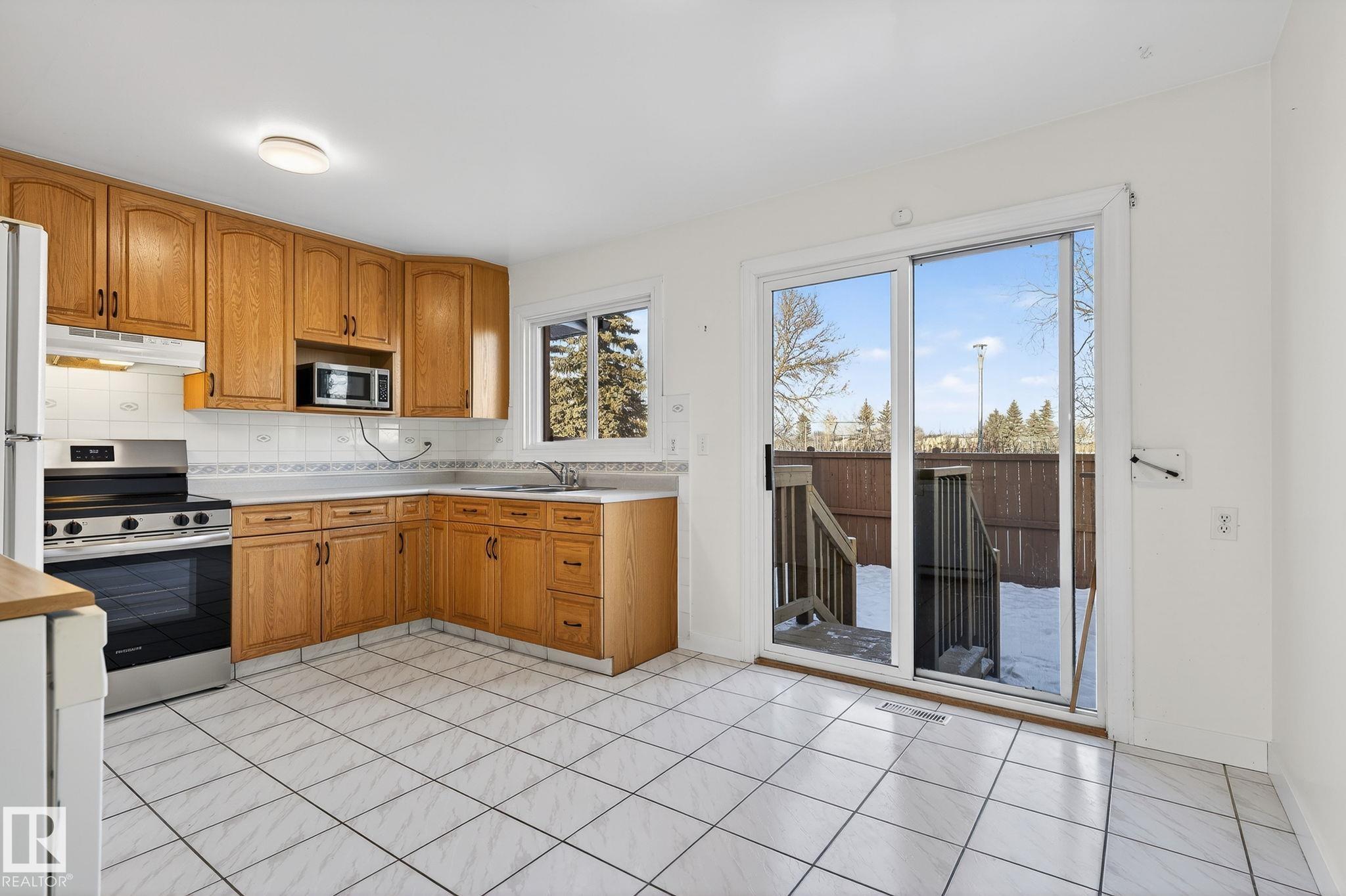 Backing onto peaceful greenspace and conveniently located near everyday amenities, this well-maintained 1,167 sq. ft. half duplex offers a functional layout and serene setting. Featuring 3 bedrooms and 1.5 bathrooms, the bright main floor showcases laminate flooring and large windows that flood the space with natural light. The kitchen provides ample cabinetry and counter space, along with a large window overlooking the park. Adjacent to the kitchen is a spacious dining area with patio doors leading to a fenced backyard, ideal for relaxing or entertaining. A convenient 2-piece powder room completes the main level. Upstairs offers three well-sized bedrooms and a 4-piece bathroom. The finished basement adds valuable living space with a cozy family room, laundry, and extra storage. Additional features include a welcoming front deck, a private driveway with parking for two vehicles, and no rear neighbours thanks to the greenspace backdrop. Motivated seller.