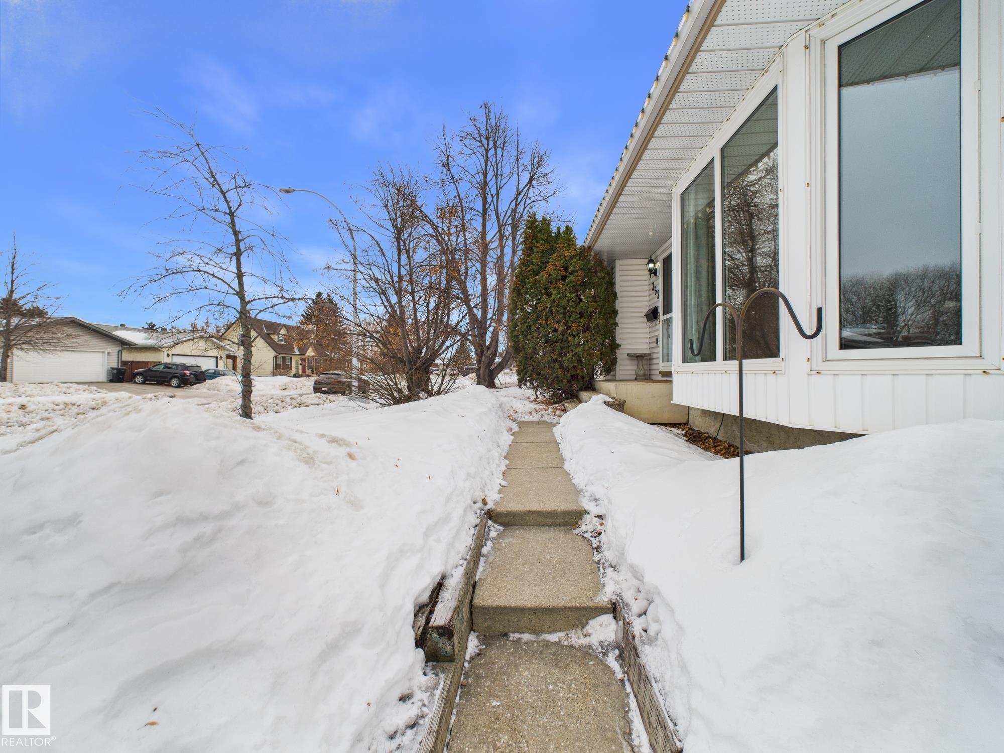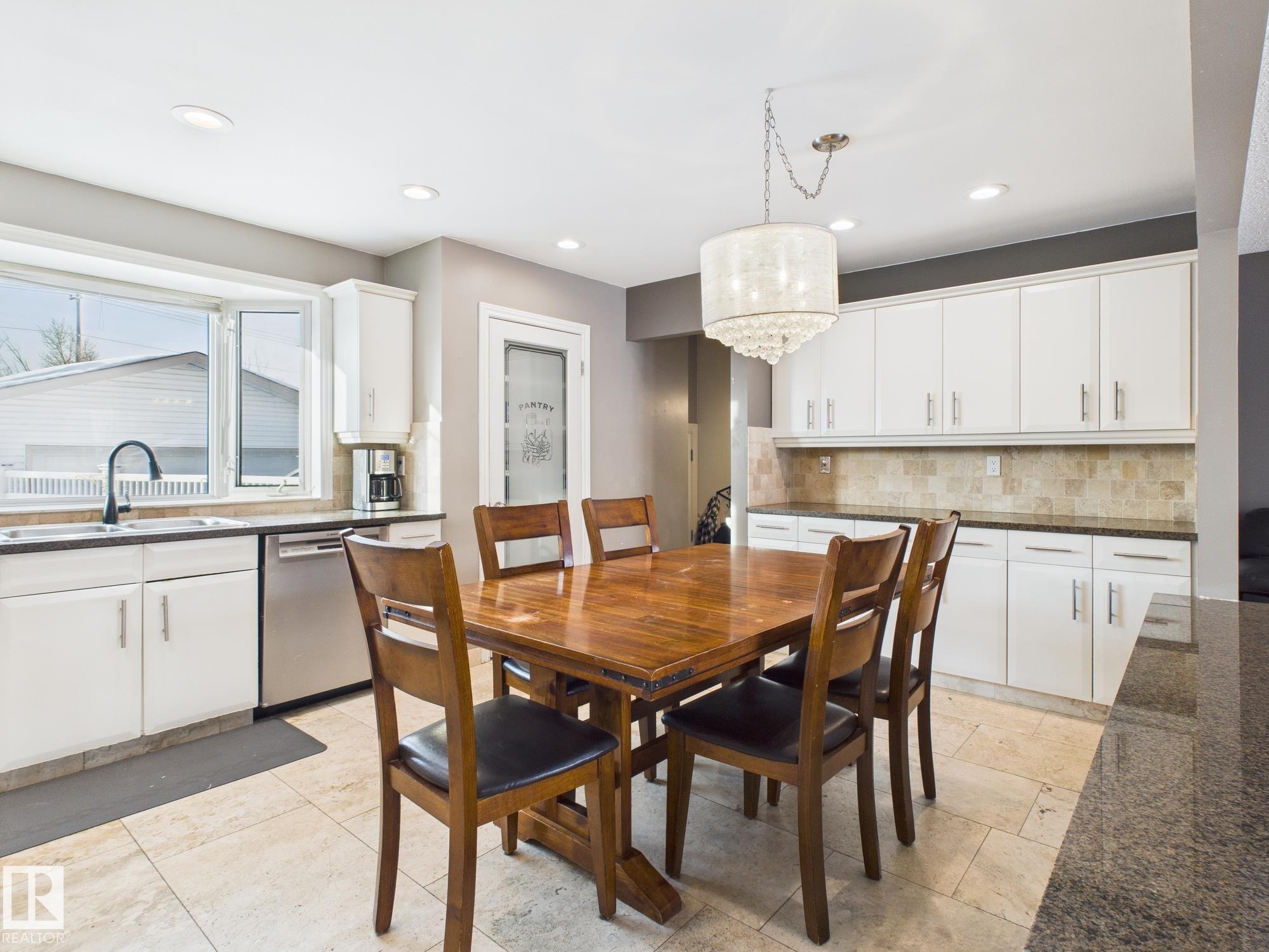 Welcome to this warm 3 bed, 3 bath home, perfect for families or those looking for room to grow. Set on a large lot backing onto peaceful green space, it offers privacy, outdoor space, and a safe, family-friendly setting. The main floor features a bright, open-concept kitchen and living area designed for everyday life and family gatherings. Granite countertops, heated tile flooring, hardwood floors, and large windows create a comfortable, inviting space filled with natural light. Updates include windows and doors (2021), shingles (2018), and a refreshed deck and patio (2024). Upstairs offers three well-sized bedrooms, while the fully finished basement provides flexible space for a playroom, home office, or family room. The oversized heated and insulated double garage adds year-round convenience. Located near parks, schools, Clareview Rec Centre, shopping, public transit, and major routes, this home combines comfort, space, and long-term potential for growing families, 1st time home buyers and investors.