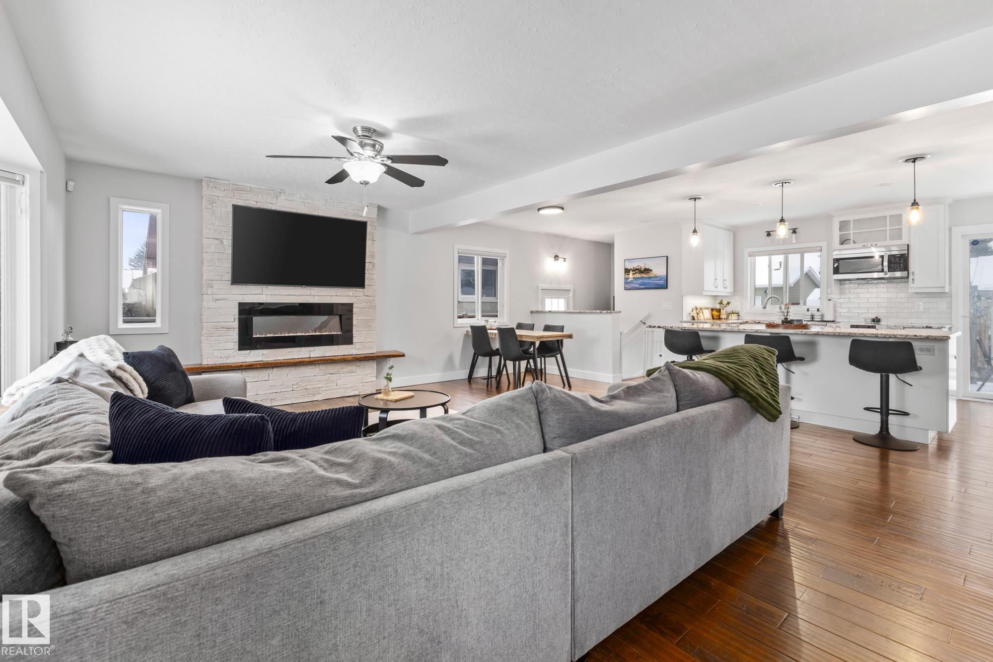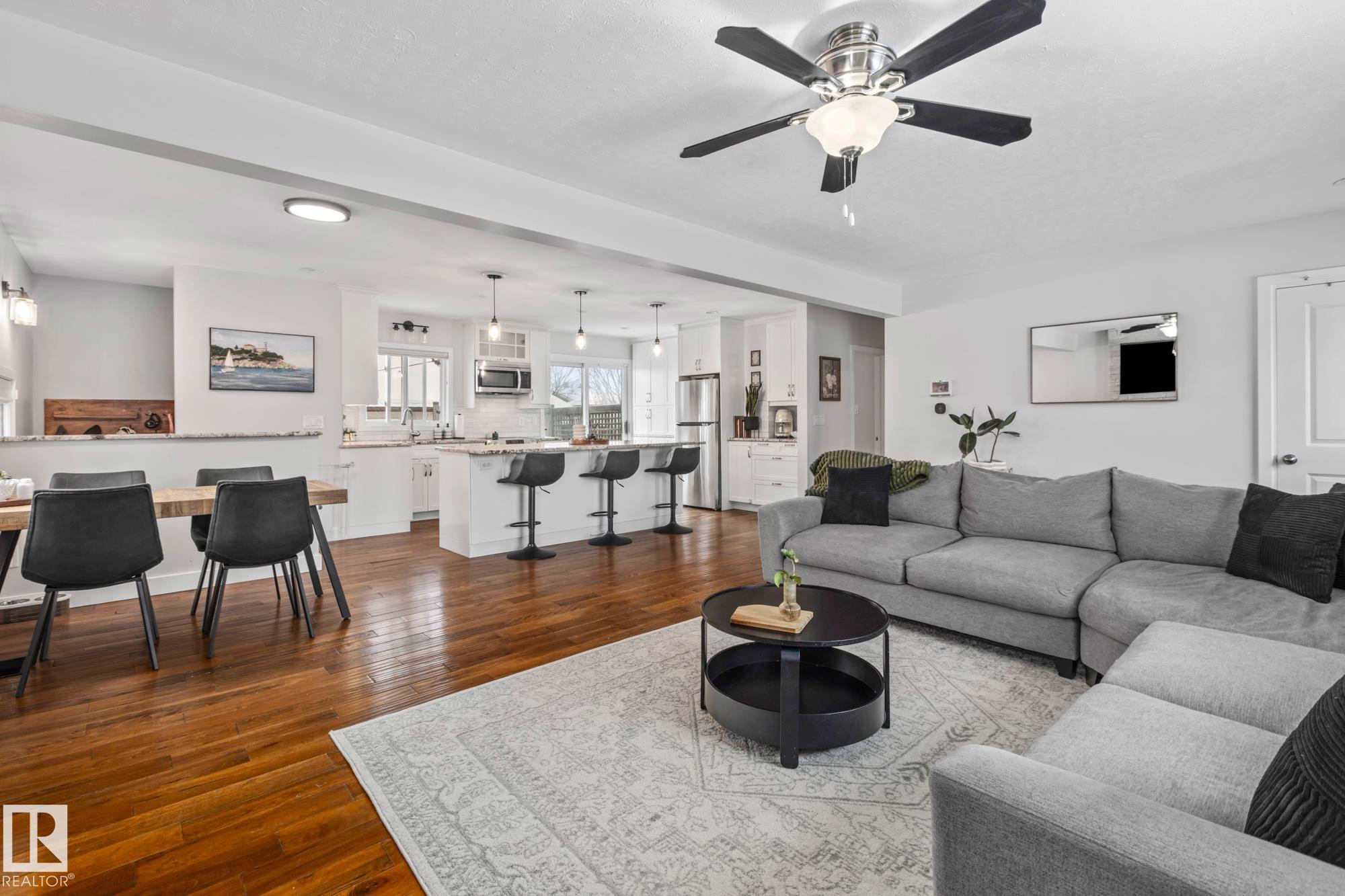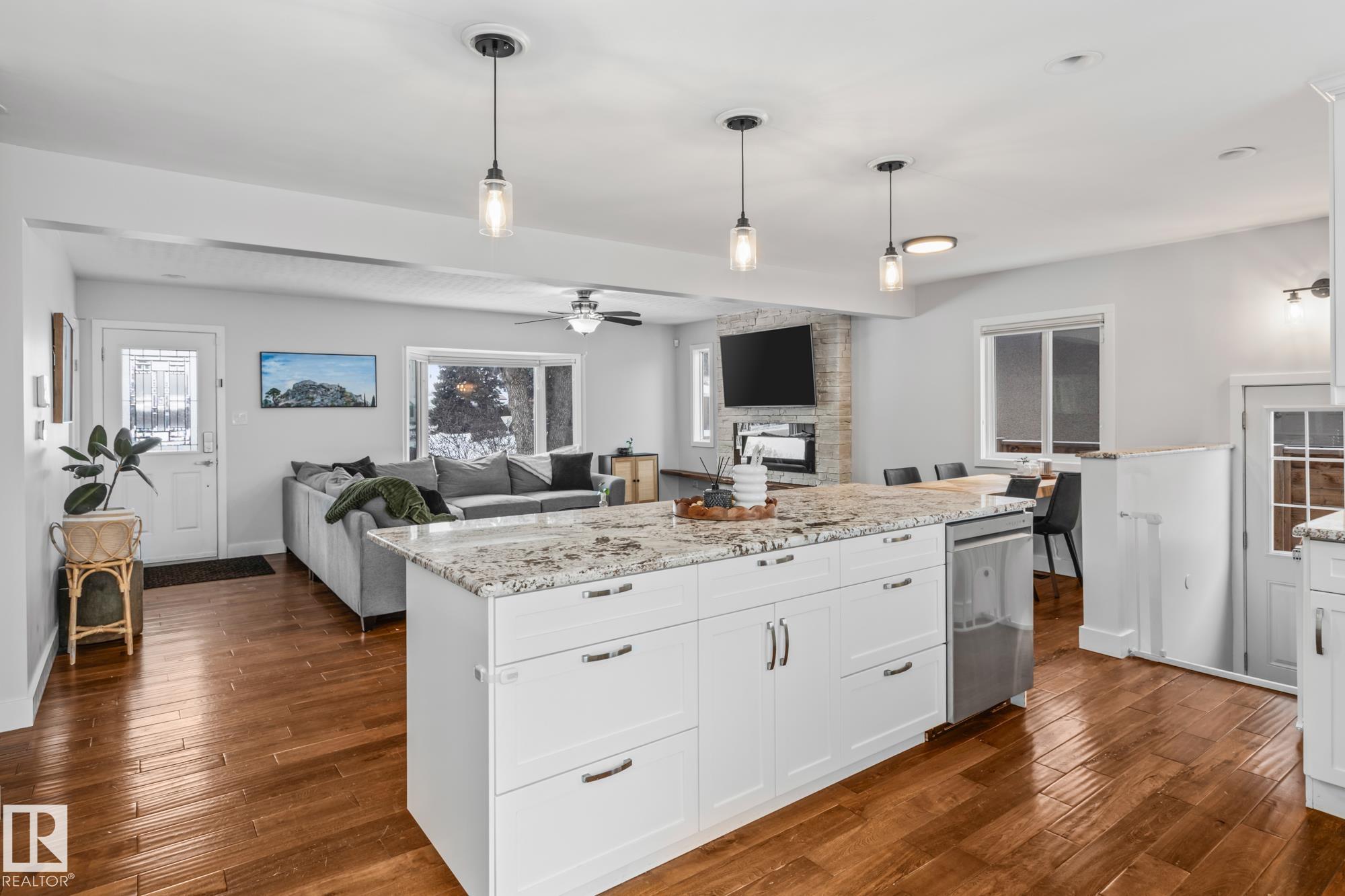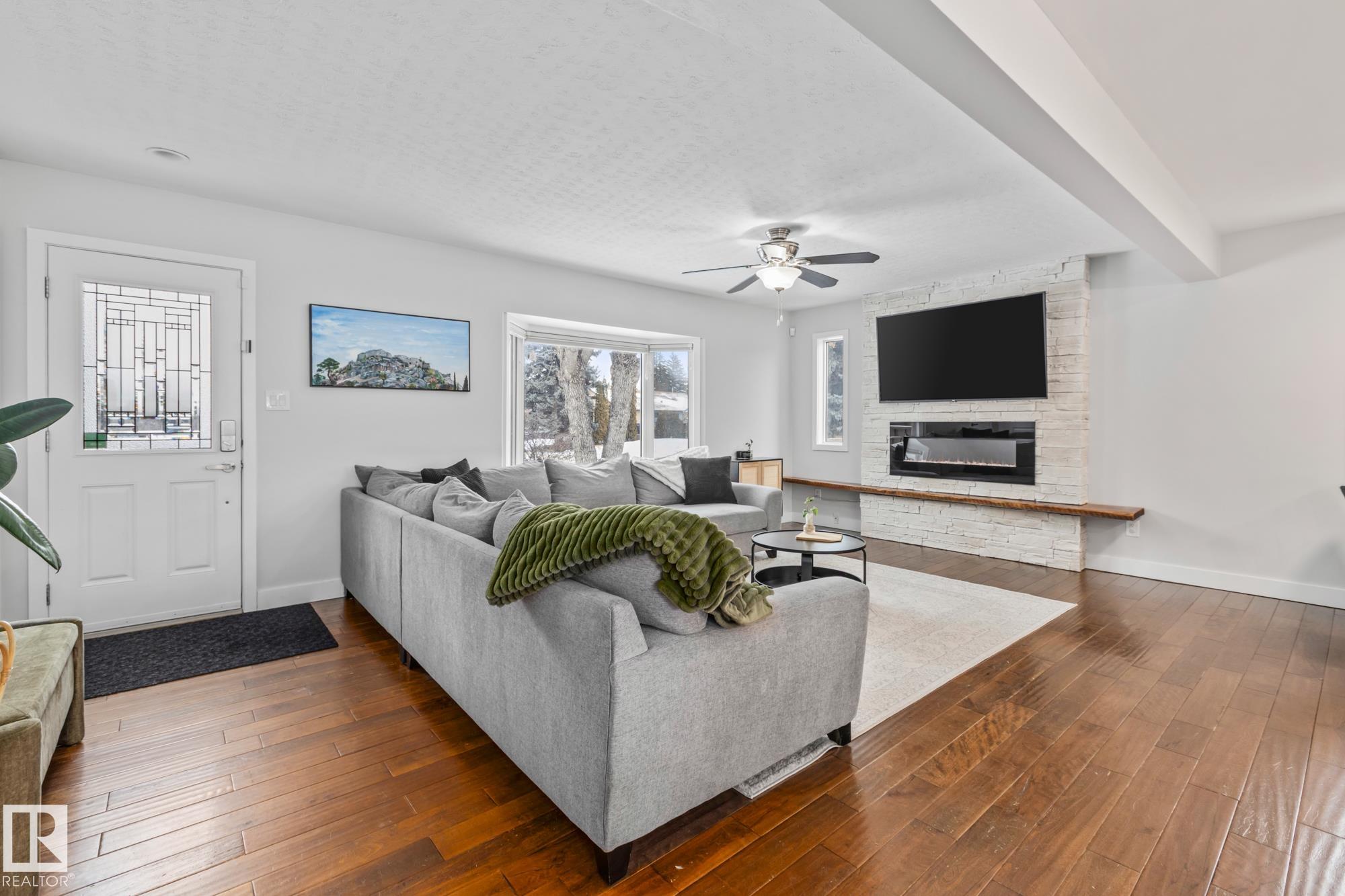 Welcome to this beautifully maintained and updated bungalow in desirable Gold Bar Edmonton, featuring a bright, open-concept layout. The sun-filled living room offers a cozy electric fireplace and flows seamlessly into the spacious kitchen with ample cabinetry and prep space?ideal for everyday living and entertaining. The main floor includes two generous bedrooms and a 4-piece bathroom. The fully developed basement adds excellent versatility with a flex space for a family room, office, or gym, plus two additional bedrooms, a bathroom, and dedicated laundry. Additional features include central vacuum, new dishwasher, washer, and dryer, and heated floors in the main bathroom. Electric heater in the basement bathroom. Move-in ready and thoughtfully upgraded throughout. Close to many amenities including schools and shopping centers! Across the street from Gold Bar Farm and just steps to Gold Bar Park trail systems into the ravine.
