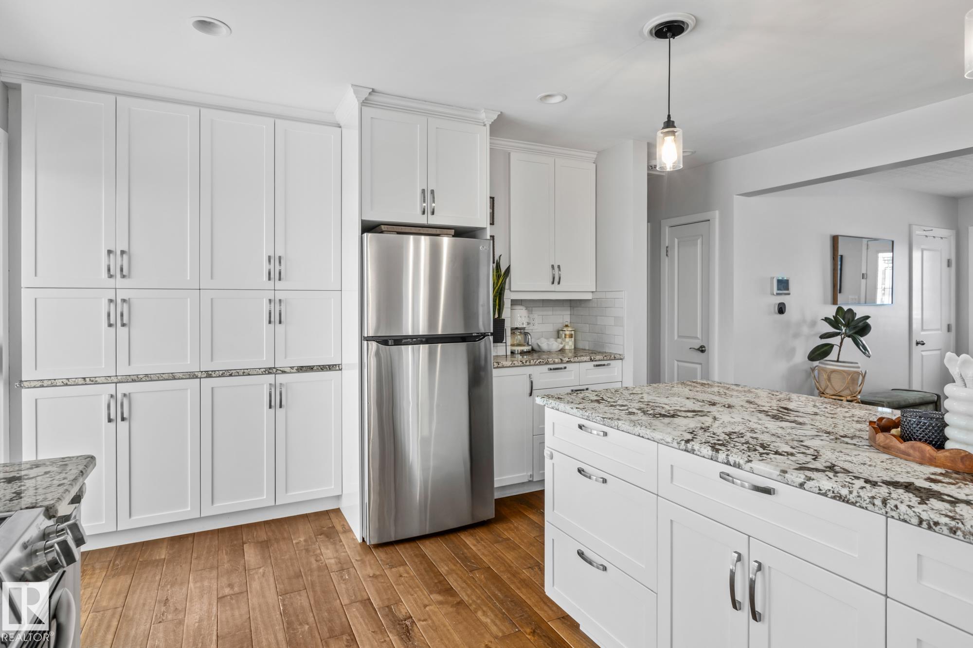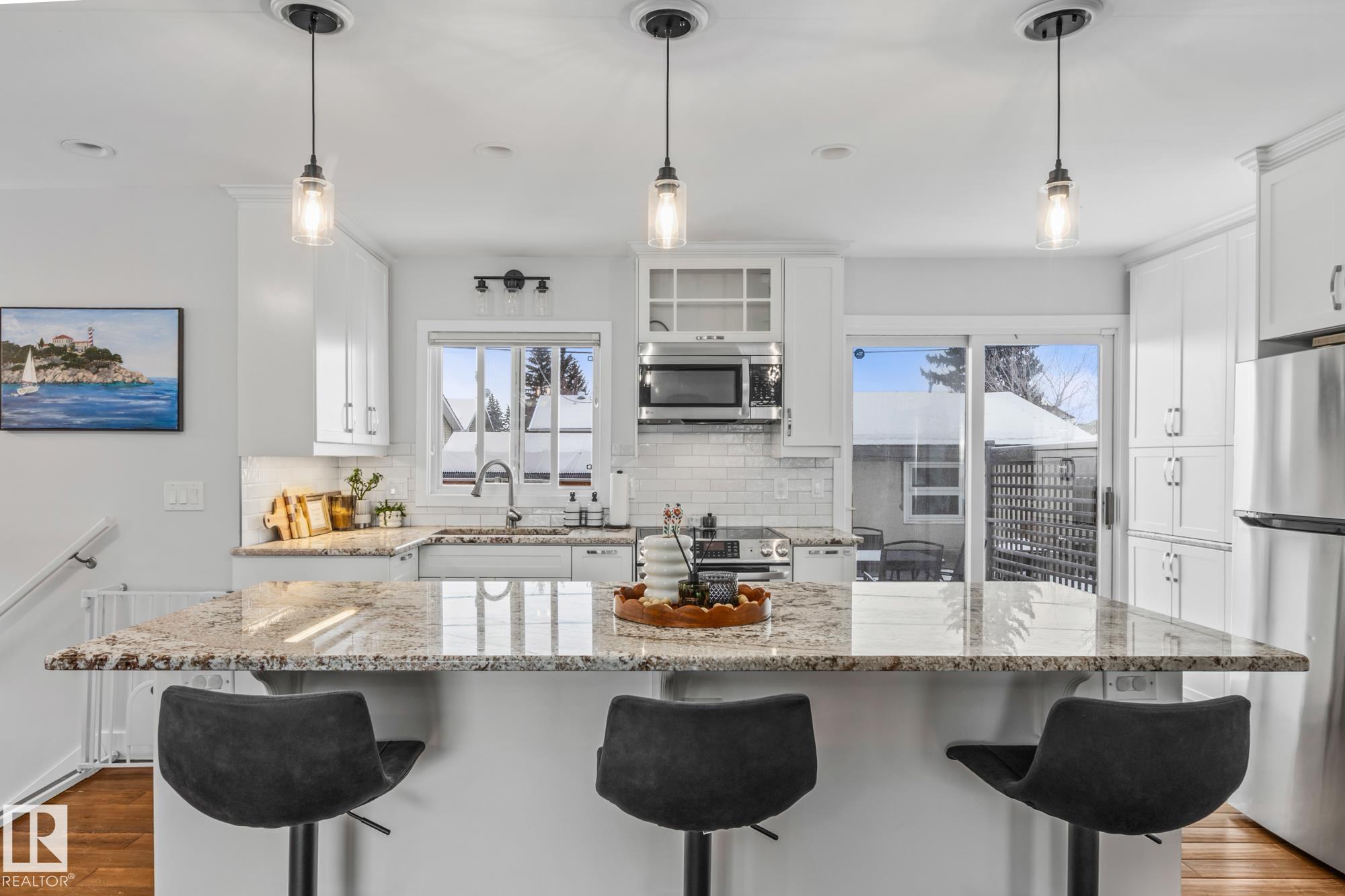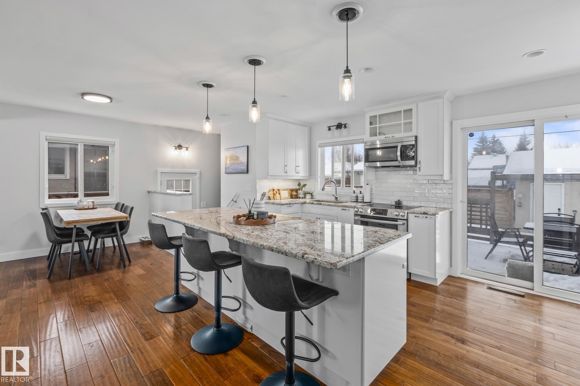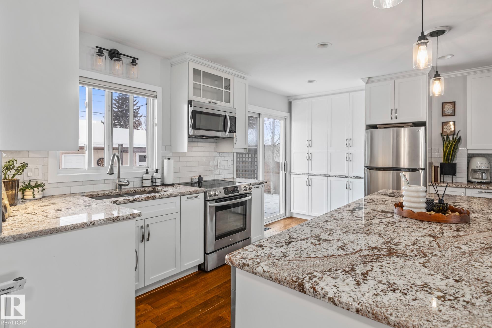 Welcome to this beautifully maintained and updated bungalow in desirable Gold Bar Edmonton, featuring a bright, open-concept layout. The sun-filled living room offers a cozy electric fireplace and flows seamlessly into the spacious kitchen with ample cabinetry and prep space?ideal for everyday living and entertaining. The main floor includes two generous bedrooms and a 4-piece bathroom. The fully developed basement adds excellent versatility with a flex space for a family room, office, or gym, plus two additional bedrooms, a bathroom, and dedicated laundry. Additional features include central vacuum, new dishwasher, washer, and dryer, and heated floors in the main bathroom. Electric heater in the basement bathroom. Move-in ready and thoughtfully upgraded throughout. Close to many amenities including schools and shopping centers! Across the street from Gold Bar Farm and just steps to Gold Bar Park trail systems into the ravine.