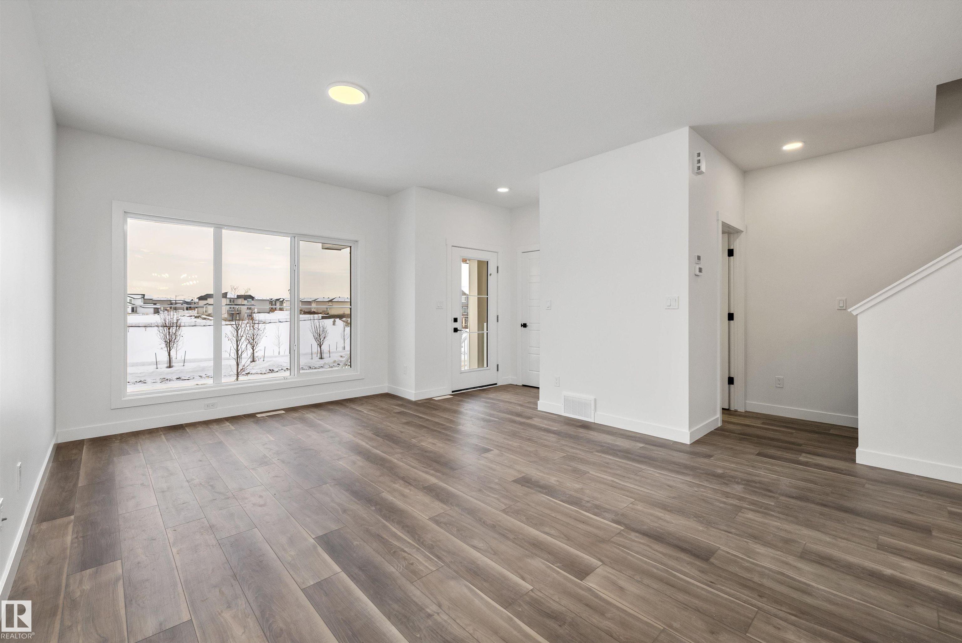 The Spirit is a prime choice for first-time buyers and investors, offering a smart layout on a spacious pie-shaped lot. This home features 9? ceilings on the main and basement levels, complemented by Luxury Vinyl Plank flooring. The open-concept main floor boasts a sun-drenched great room with large front windows, flowing into a rear L-shaped kitchen. Culinary enthusiasts will appreciate the Quartz countertops, flush-ledge island, and upgraded soft-close cabinetry overlooking the expansive backyard. A private rear entry provides direct access to the lower level, while a walk-through mudroom adds daily convenience. Upstairs, the layout includes a central bonus room and a primary suite with double sinks and a glass-door shower. Two additional bedrooms, a laundry closet, and matte black fixtures throughout complete this stylish residence. With a rear parking pad and an option for a detached double garage, this home perfectly balances flexibility and modern comfort.