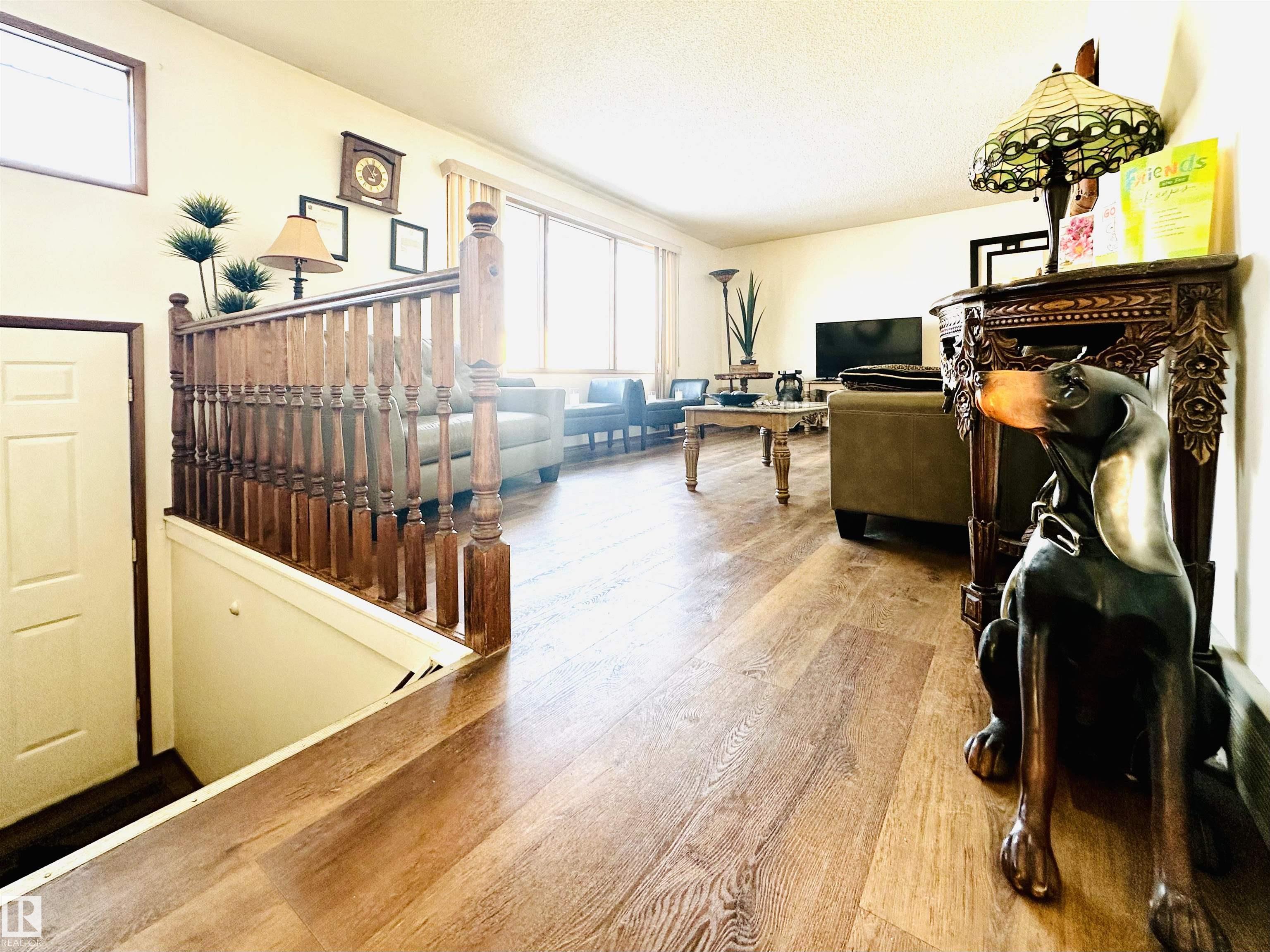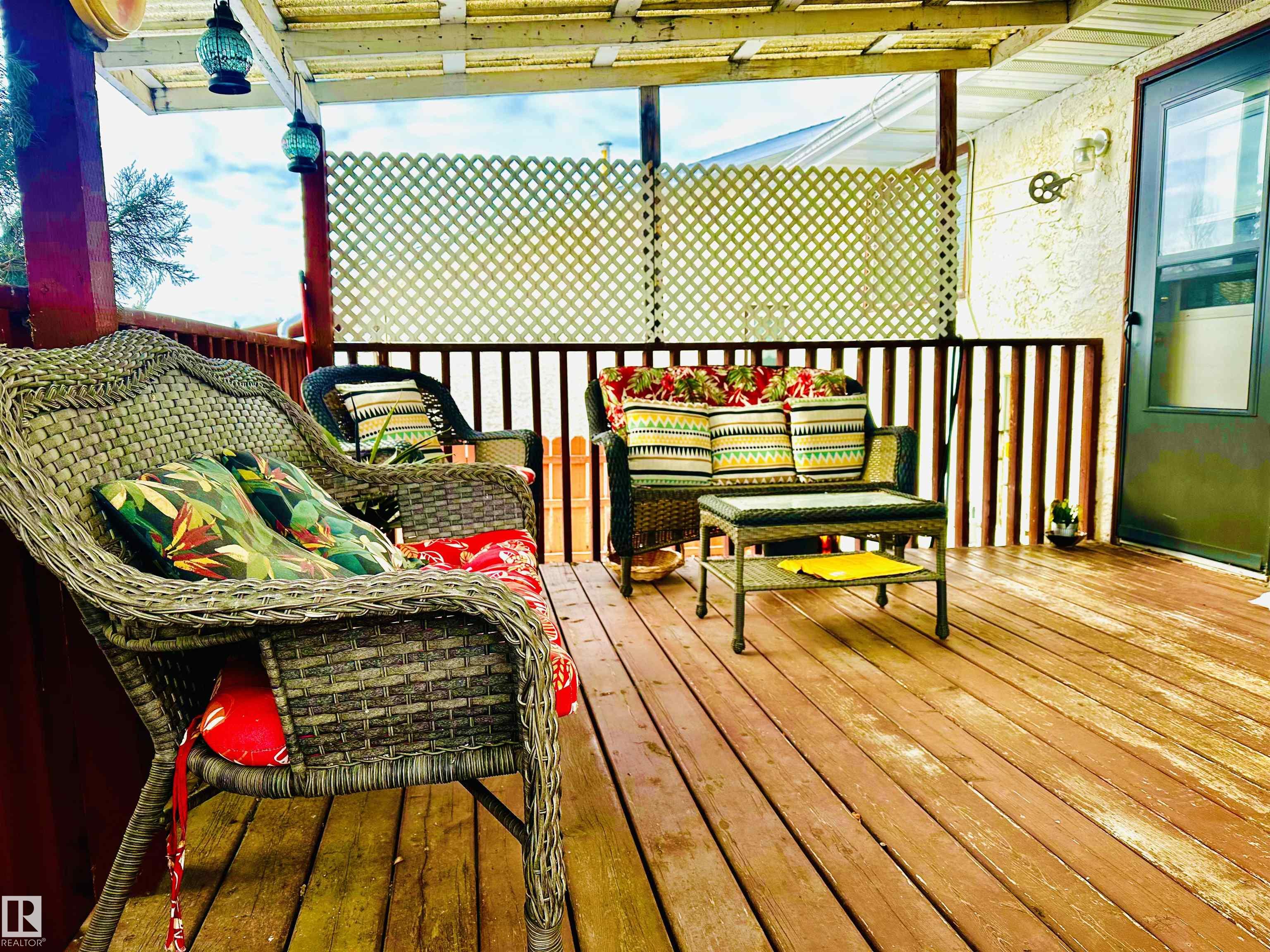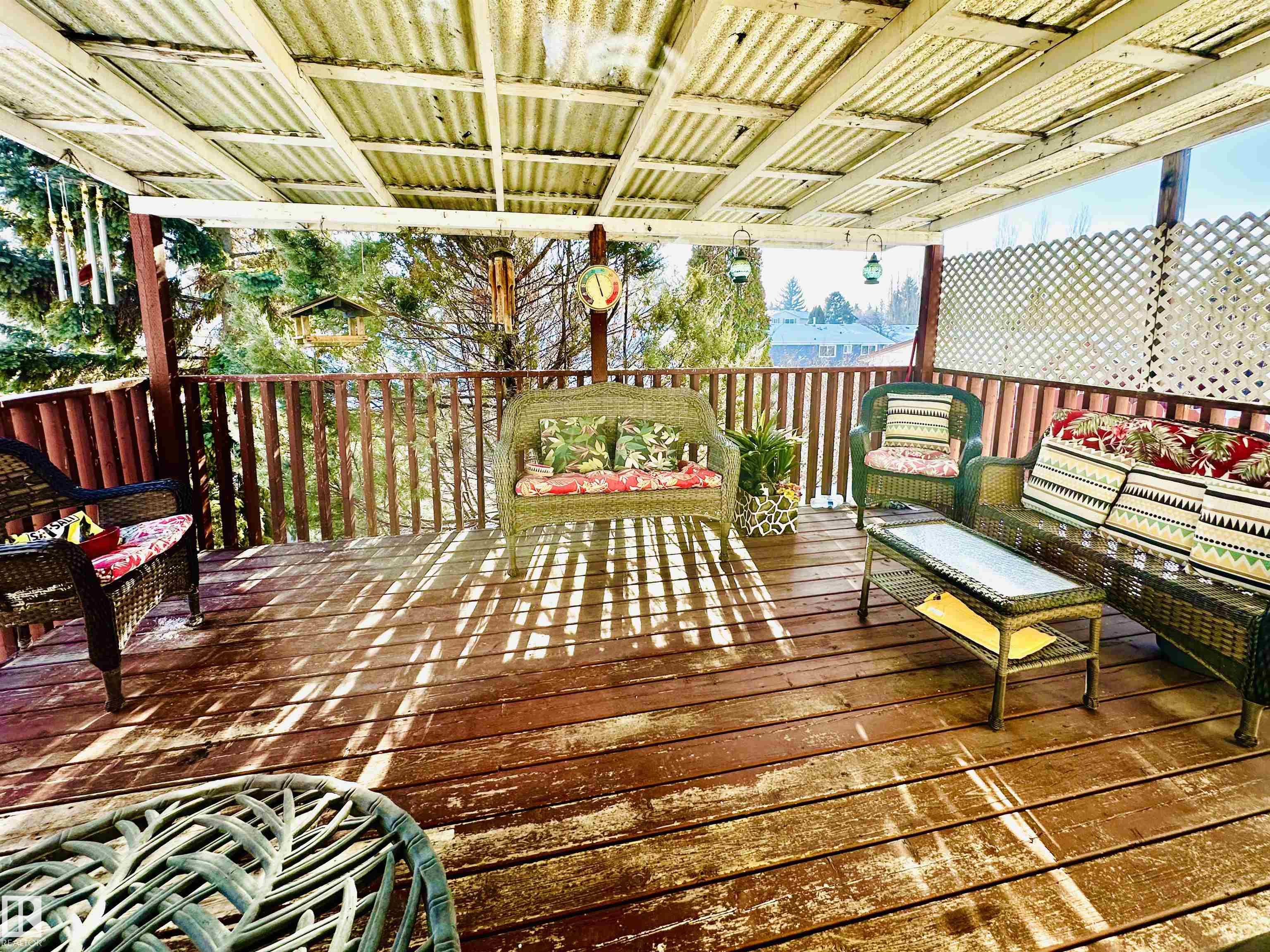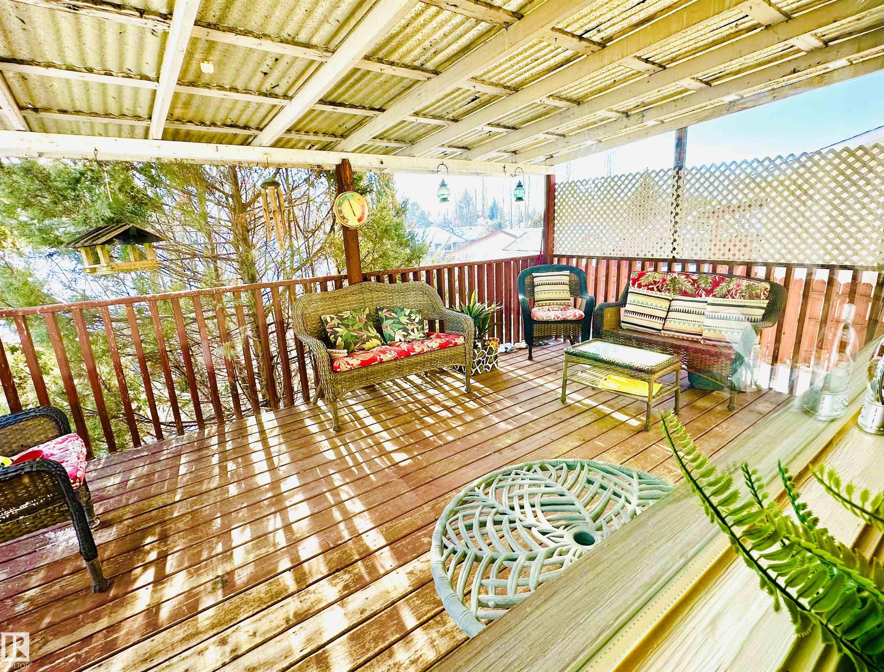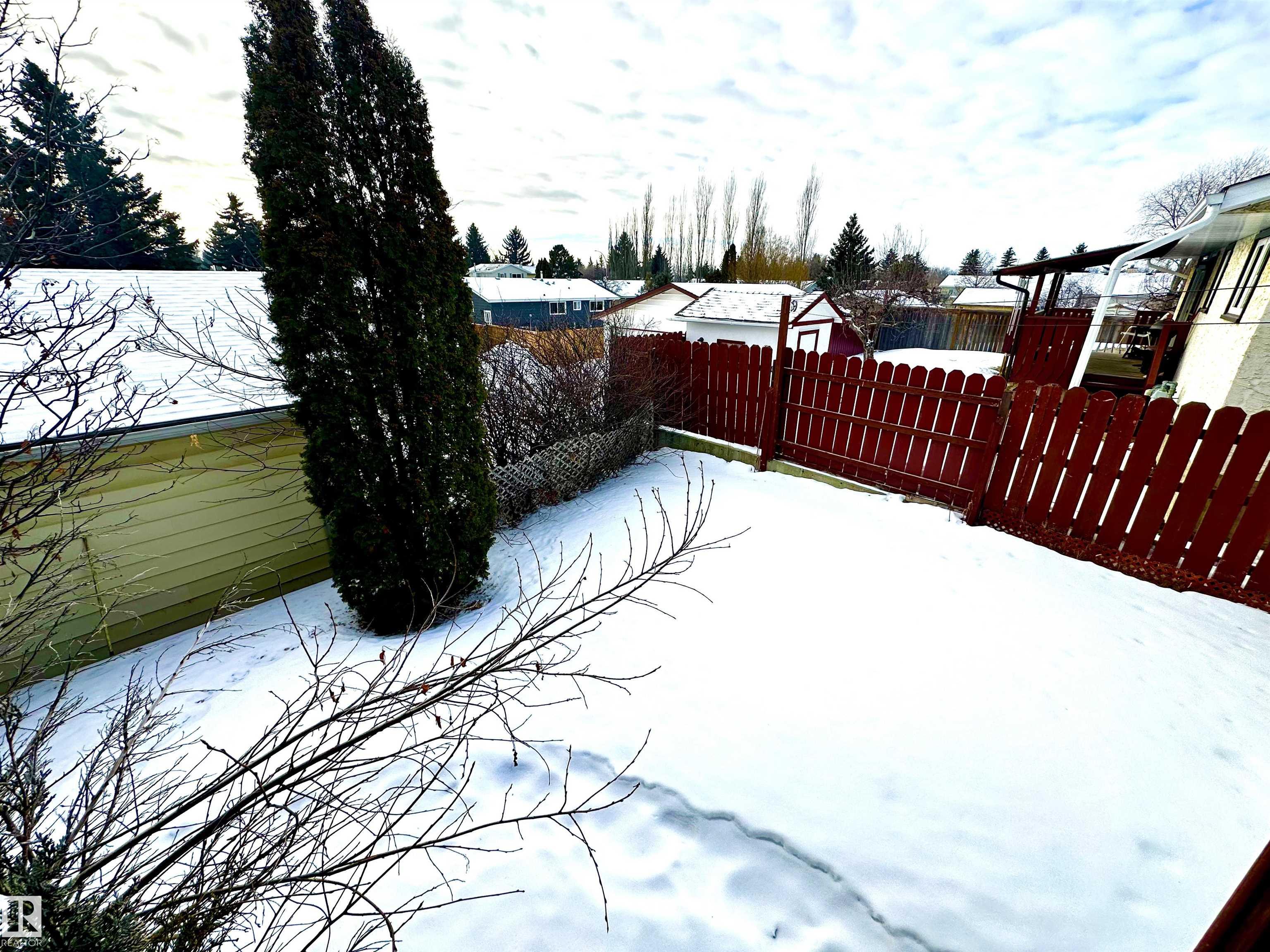 Well maintained Bi-Level in Centennial. Offering 4 bedrooms, 2 bathrooms, oversized double car garage & showcasing a beautifully landscaped yard. The South facing deck is covered that's great for relaxation & BBQing. This home is bright & cheerful; perfect for a growing family. The kitchen has ample cupboards & a pretty breakfast nook nestled into a large bay window overlooking the back yard. The back of the property is graciously sloped away from the house, having privacy fencing, concrete walk-ways & retaining walls. It's like a mini park, giving an acreage feeling, but still in town.