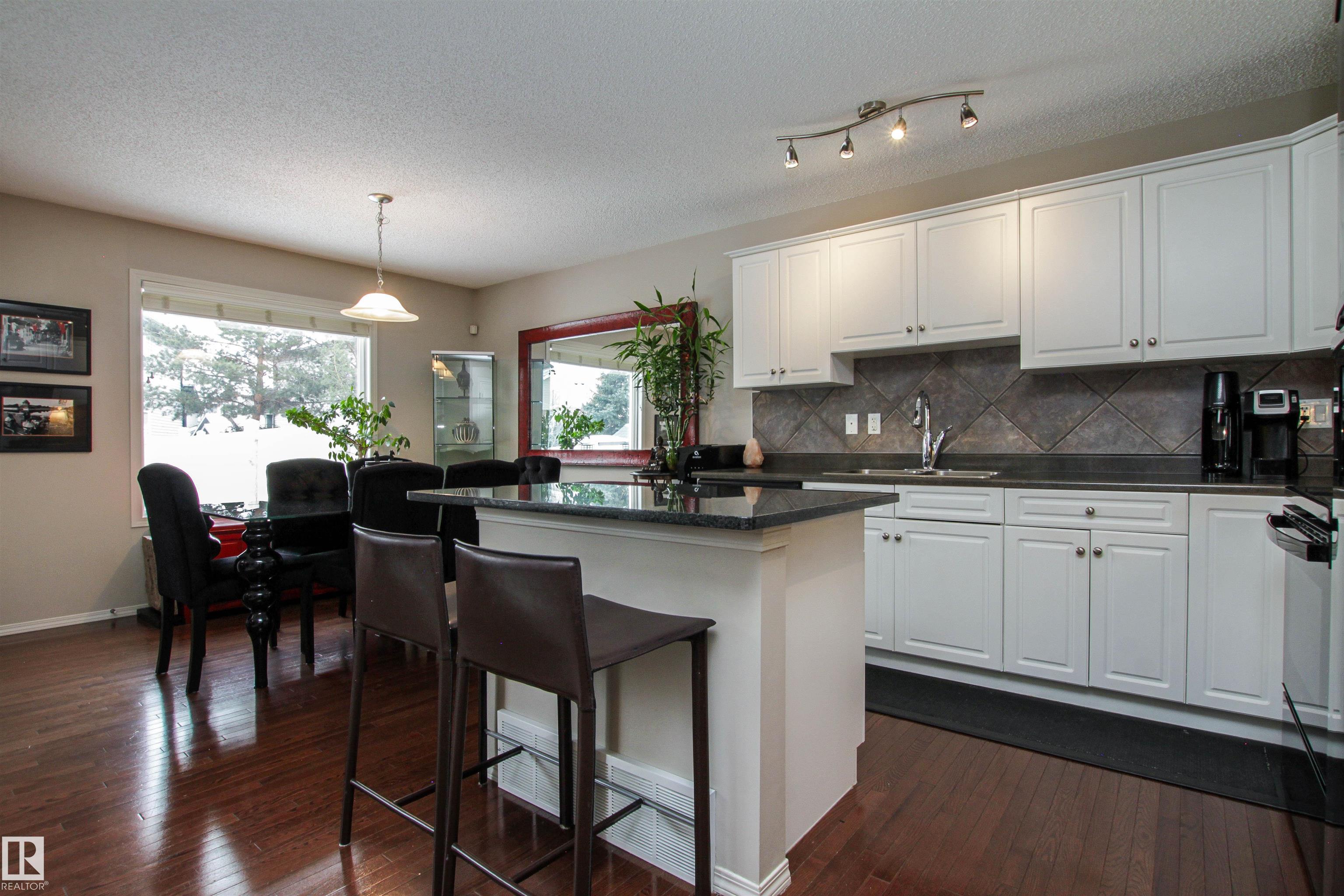 A fantastic opportunity to own this beautiful half duplex in the sought after community of Leger with NO CONDO FEES!!!! Pride of ownership is evident from the moment you enter and you will love the bright open-concept home featuring a beautiful kitchen with modern cabinetry, black appliances, granite island, and a sunny breakfast nook. Hardwood floors and abundant natural light flow throughout. The upper-level loft provides ideal office or flex space, complemented by three well-sized bedrooms. Enjoy morning sunrises from the nicely sized deck and cozy evenings by the fireplace. The fully finished basement includes a games room and dedicated exercise area. Complete with an attached double garage, this home offers comfort, functionality, and space for everyday living. Recent upgrades include new shingles in 2022, HWT in 2025, deck, Hunter Douglas blinds, Medeco locks and the list goes on...