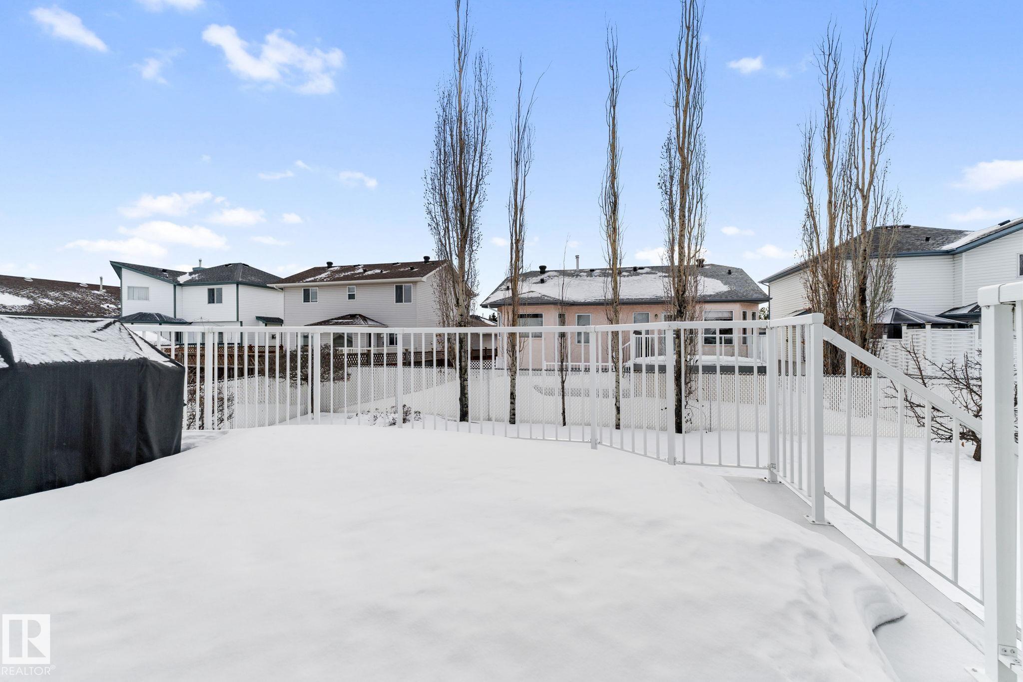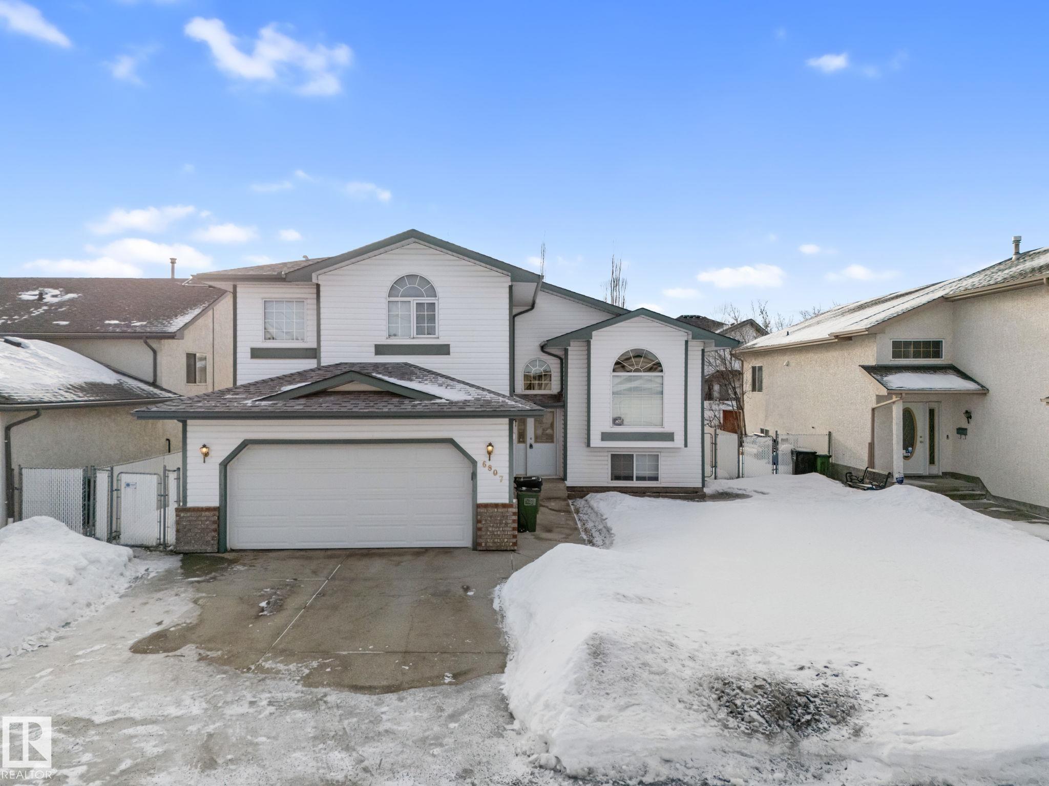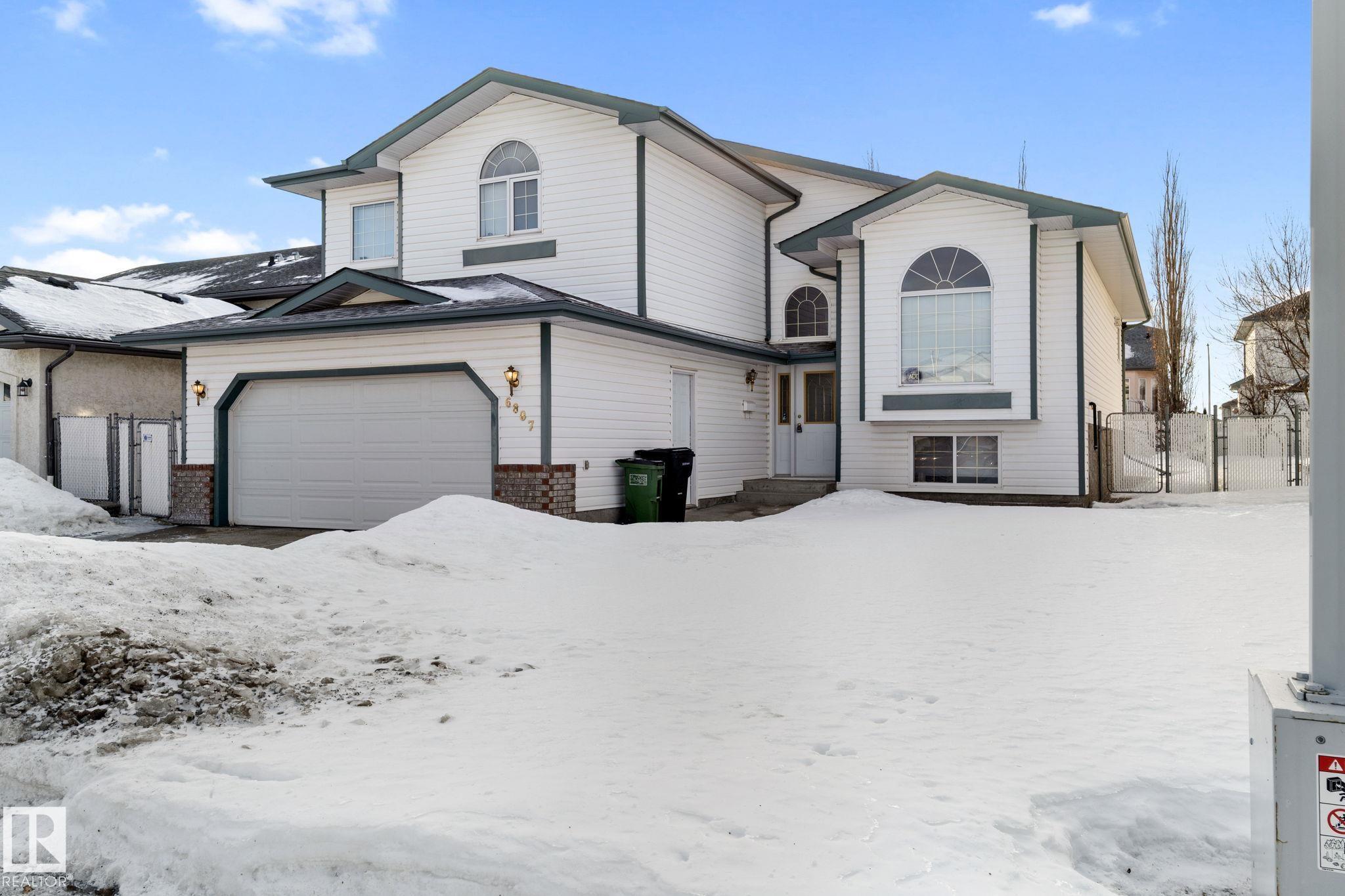 White Eagle CUSTOM Built Bi-level in Ozerna! Located on a QUIET street, it has great curb appeal w/ a NEW ROOF & BRICK accents. The inside is IMMACULATE! A TILED ENTRY greets you, w/ HARDWOOD stringers leading to the living room w/ a half VAULT; the main has gleaming HARDWOOD & TILE. Cook in the large ISLAND KITCHEN w/ an EAT IN NOOK, corner PANTRY, & large DINING ROOM w/ access to the sizeable DECK, perfect for morning coffee or BBQ's. Around the corner are 2 bedrooms w/ a full bath. Up the stairs is the Primary w/ a VAULTED CEILING, walk-in & a 5 piece ensuite. Down in the FULLY FINISHED BASEMENT! Complete with a REC ROOM w/ room for a games section, a spacious bedroom, STORAGE area under the stairs & a large laundry room. Bonus: Keep COOL in the Summer w/ CENTRAL A/C! Park in the finished DOUBLE ATTACHED garage. Play in the FULLY FENCED yard. Trails, Parks, Shopping & a great School is all walking distance away. Located in one of the best communities in the North Side. You'll LOVE this place!