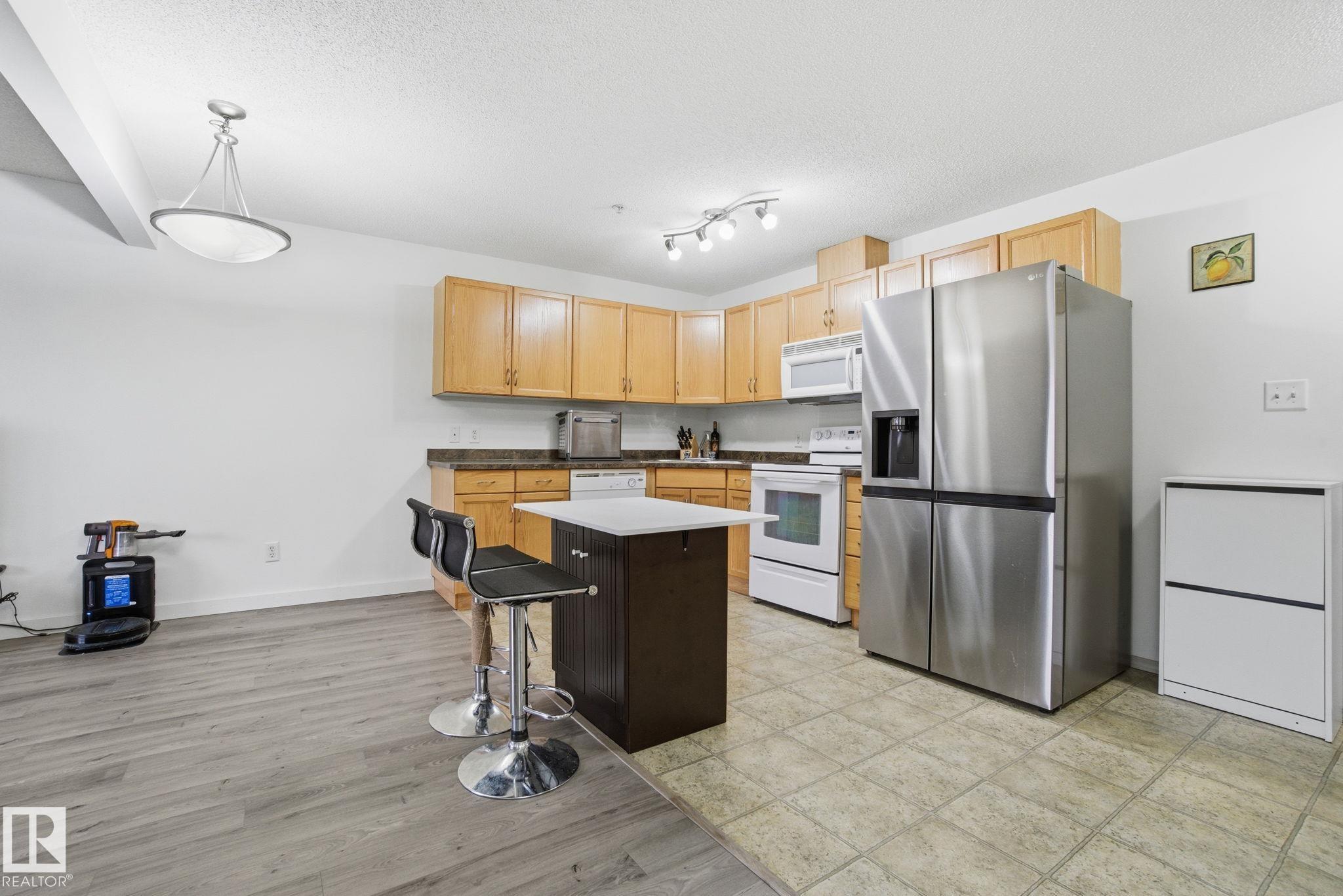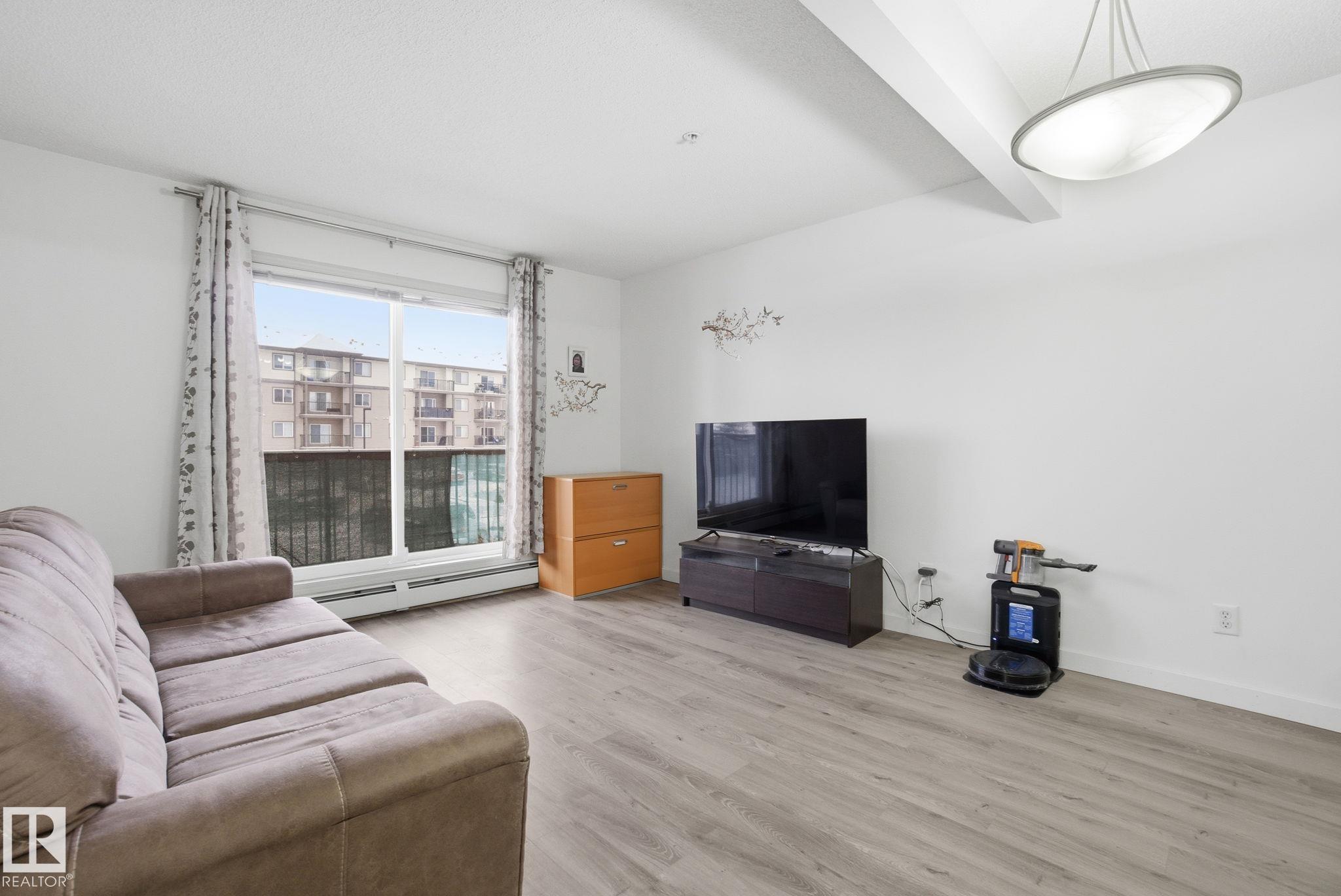 Welcome to this well-kept 1-bed, 1-bath with low condo fee offering a comfortable & convenient lifestyle near Costco, Superstore, Home Depot, Restaurants, Gym/Clareview Community, Library, Movie Theatre and Train Station. Enjoy the new vinyl plank flooring in livingroom and bedroom - Absolutely no carpet. Inside, the open-concept layout features a bright living area, a functional kitchen with ample cabinetry, in-suite laundry with extra storage and modern fridge with hooked up waterline. The spacious & quiet bedroom includes a large closet, and the modern bathroom is designed for comfort. Step out onto your private balcony, complete with a natural gas hookup for BBQ or heat lamp. Enjoy the convenience of a heated, titled underground parking stall. Additional building amenities include a fitness centre. Experience the perfect combination of comfort, convenience, and connectivity?right where you need it.