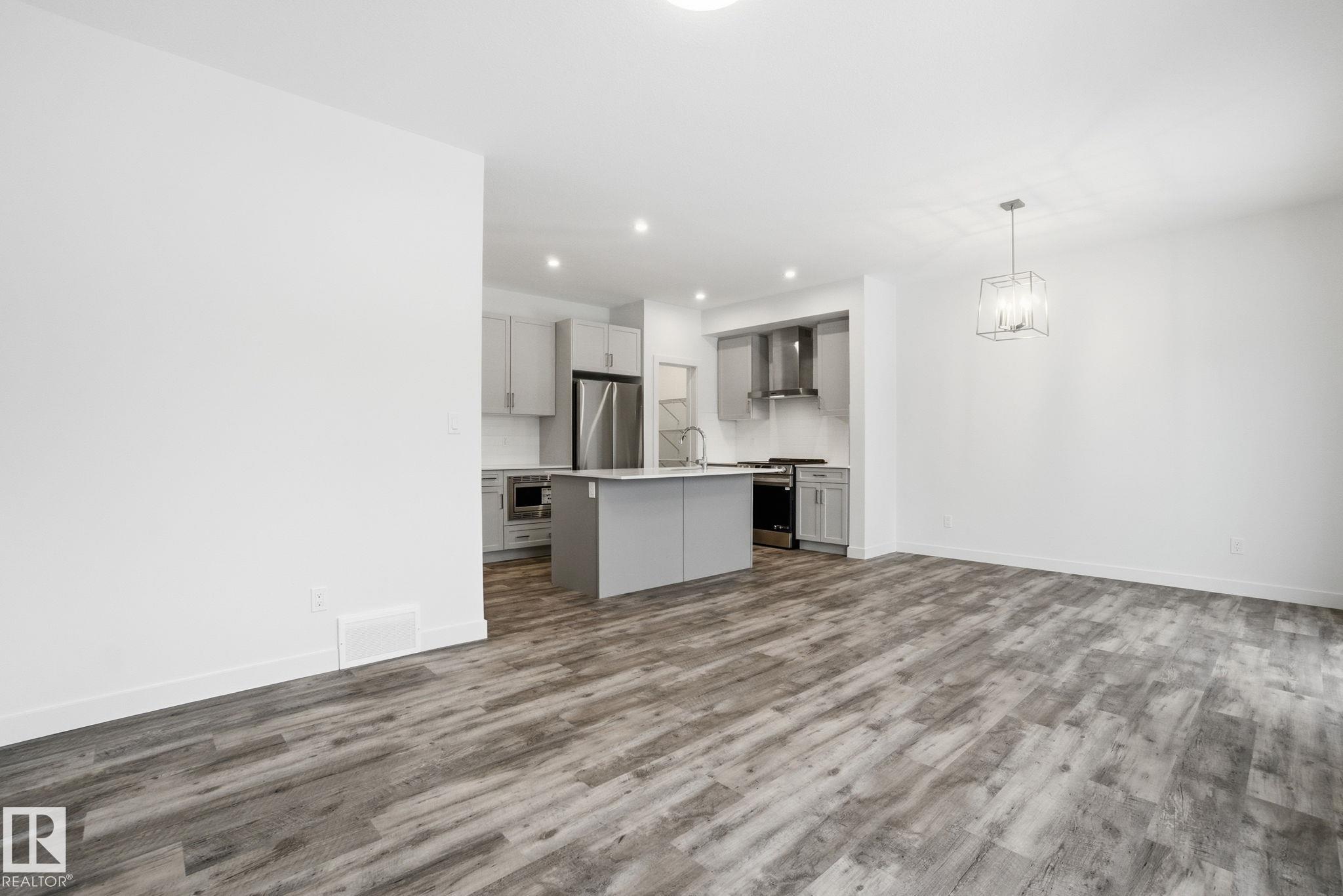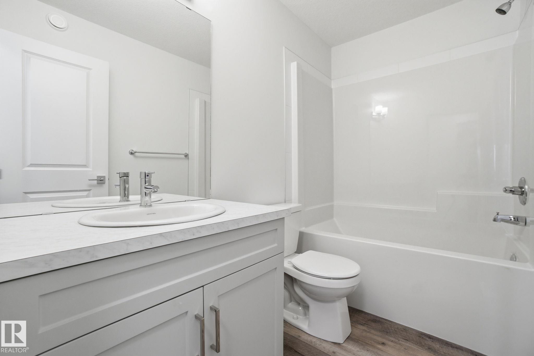 Experience parkside living at Copperwood Close by Ironstone Home Builders, a thoughtfully designed community set alongside the forested trails of The Grange District Park. This modern farmhouse?inspired home offers 1,611 sq.ft. of well-planned living space with 4 bedrooms and 2.5 bathrooms. The open-concept main floor features 9? ceilings, luxury vinyl plank flooring, and a bright, inviting living area. The kitchen is finished with quartz countertops, upgraded appliances, and generous cabinetry, flowing naturally into the dining space. Upstairs, enjoy the convenience of upper-floor laundry, a spacious primary bedroom with walk-in closet and private ensuite, plus three additional bedrooms and a full bath?perfect for growing families or those needing flexible space. Complete with a double attached garage, rear deck, full landscaping, and backed by a 10-year Alberta New Home Warranty. A rare opportunity to live steps from nature in The Hamptons. Interior pictures are representative of similar model.