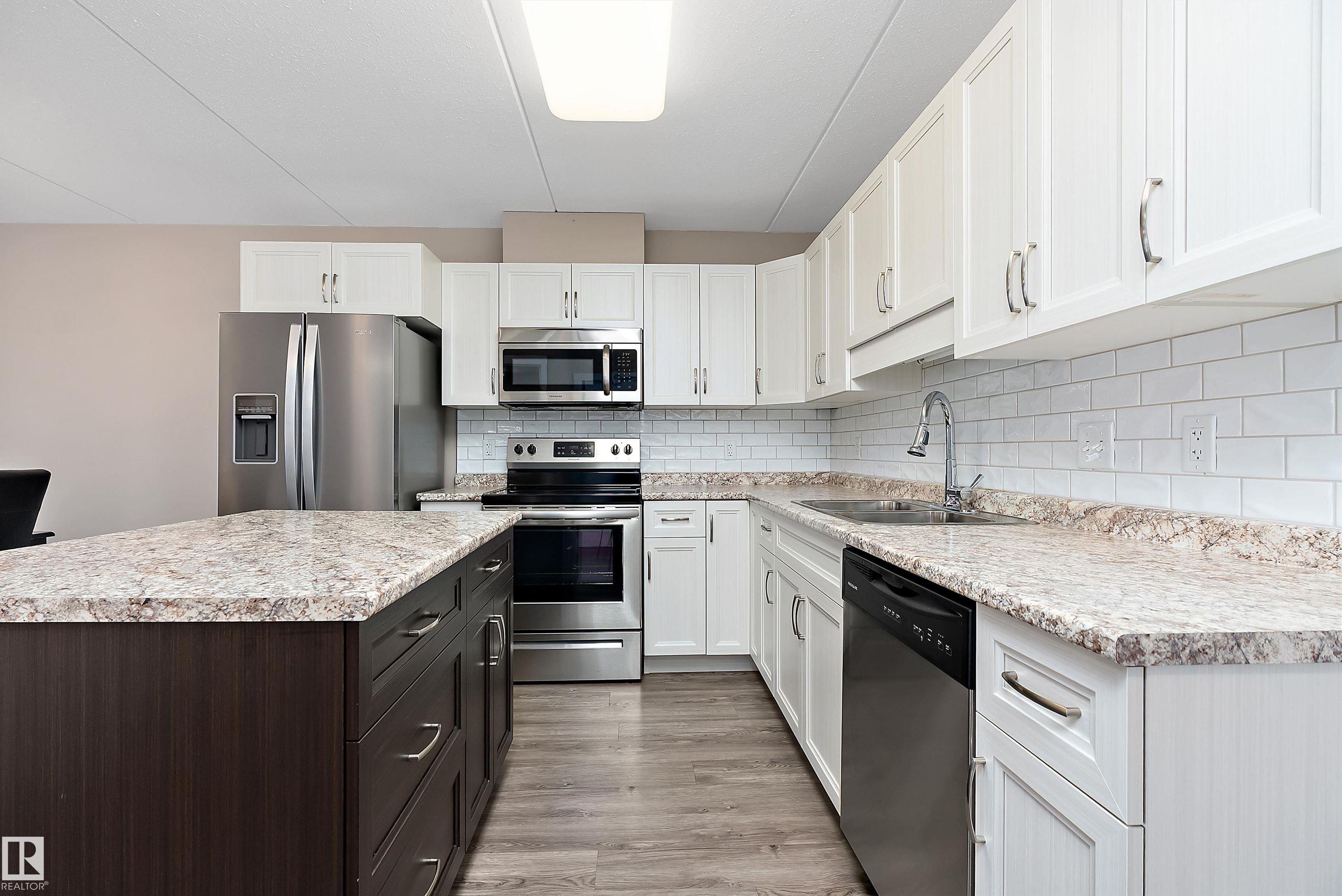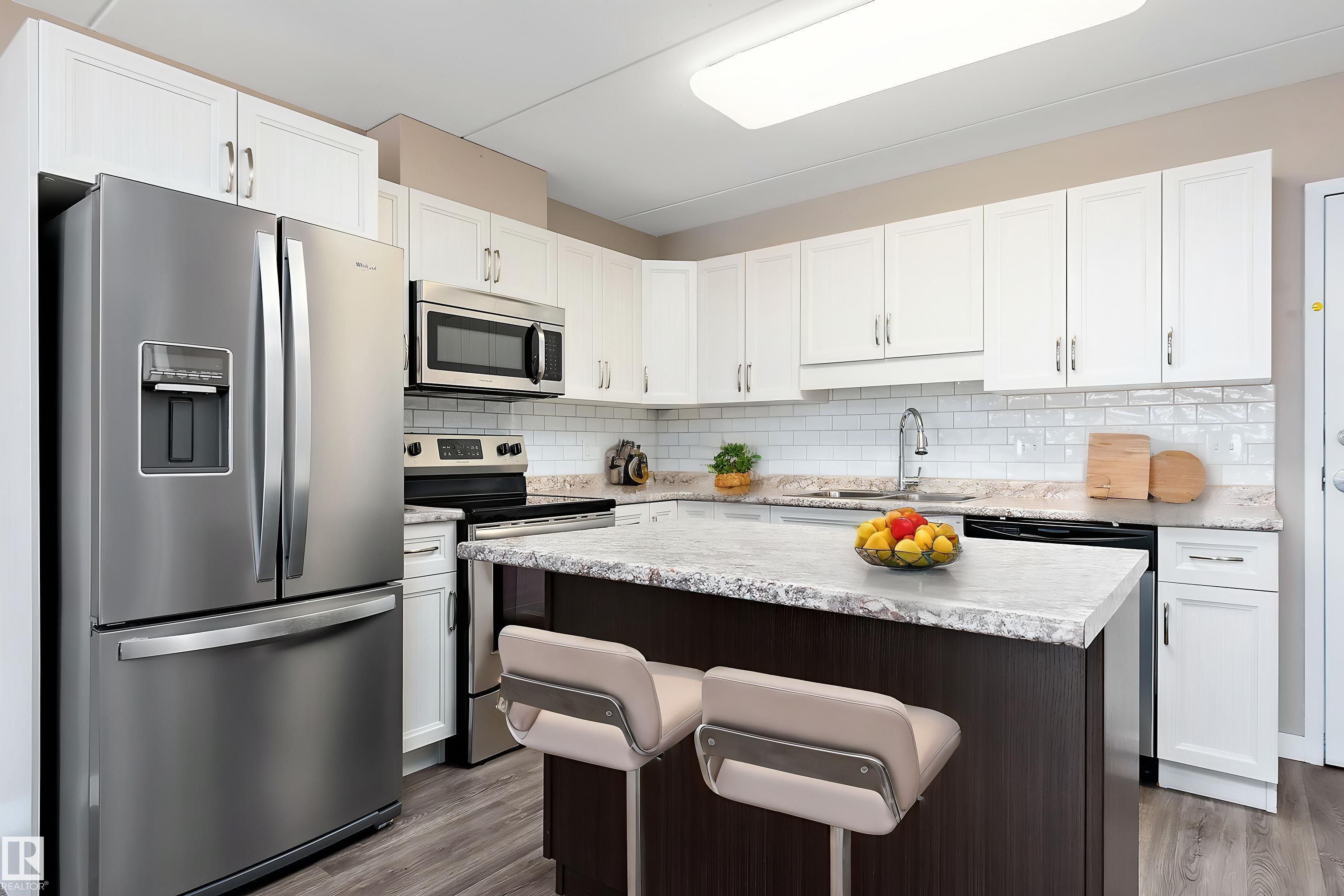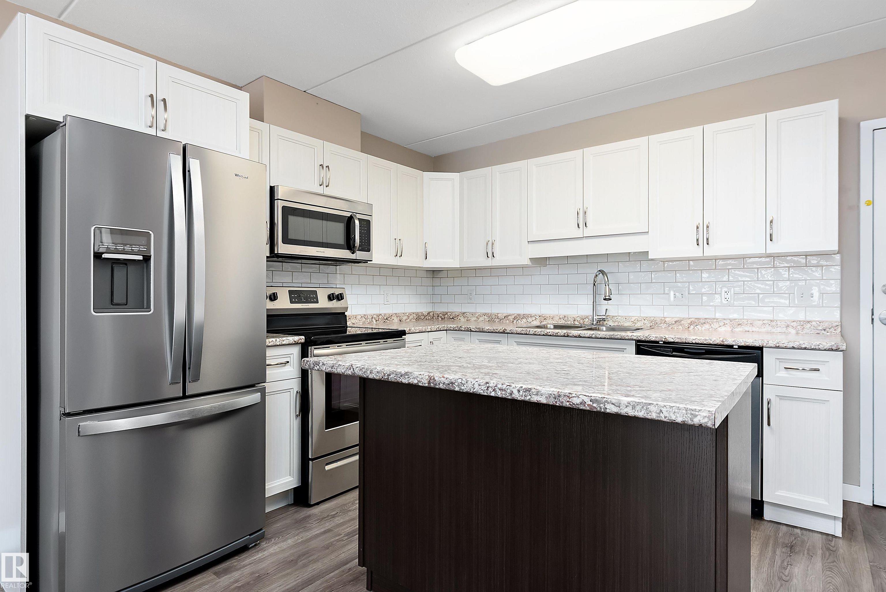 This unique two-bedroom, two-bathroom floor plan offers an airy, open layout designed for comfortable everyday living. Built for durability and quiet enjoyment, the building features 8-inch concrete hollow-core floors and steel stud construction. Inside, you?ll find modern cabinetry, a chef?s island, vinyl plank flooring, generous closet space, and a primary ensuite with a four-foot walk-in shower. Enjoy west-facing outdoor living on the finished vinyl deck balcony, complete with a gas BBQ outlet and dedicated storage shed. The unit also includes an under-building heated parking stall and benefits from some of the most competitive condo fees in the area, covering nearly everything except power. Bright, solid, and well-appointed, this "55+" home offers exceptional value for buyers seeking quality construction and low-maintenance living. Impeccably well cared for and ready to be called "Home" .