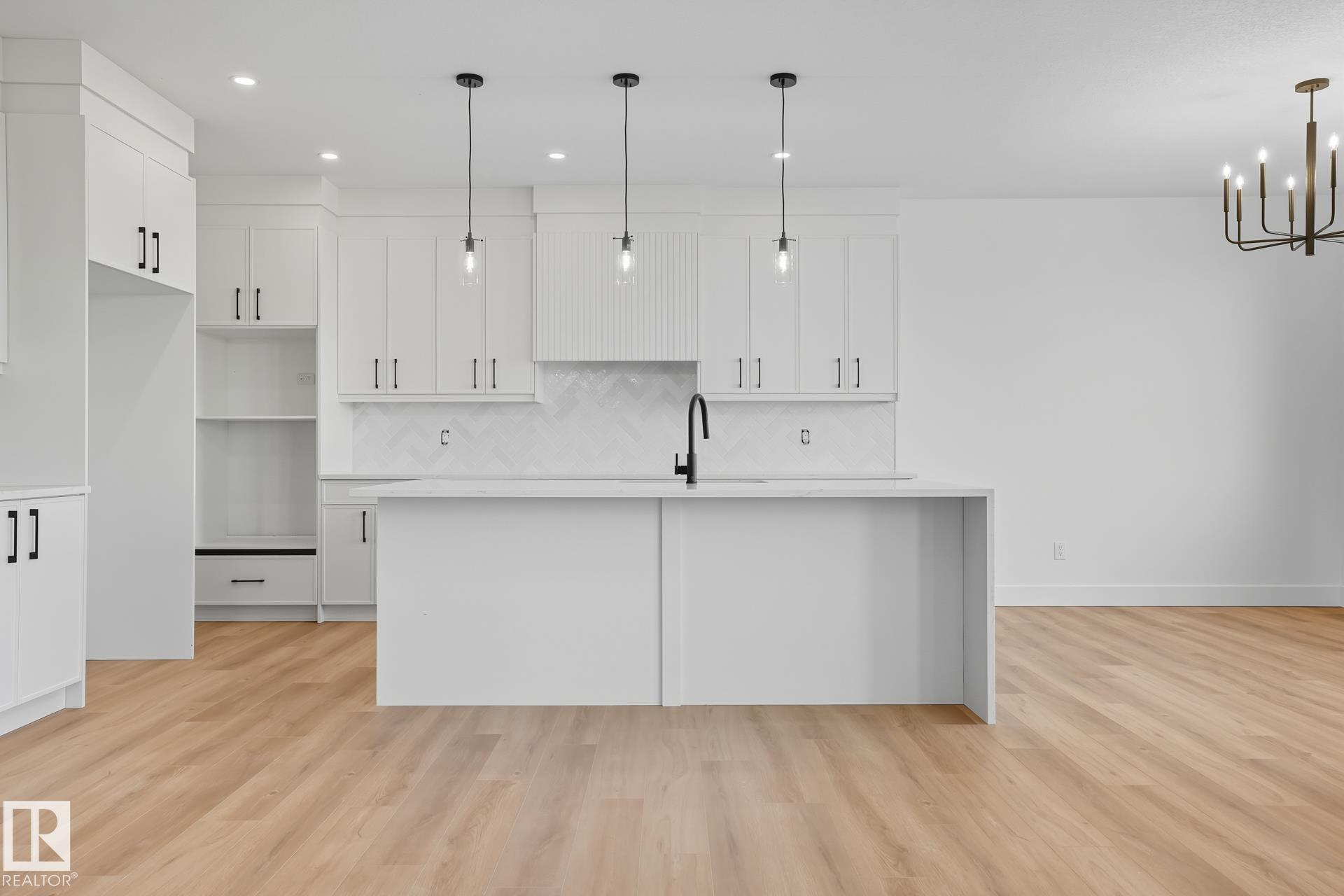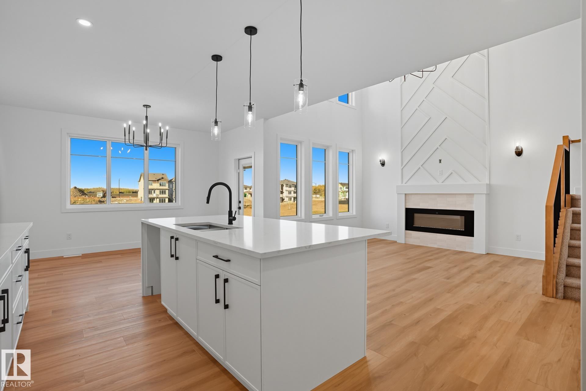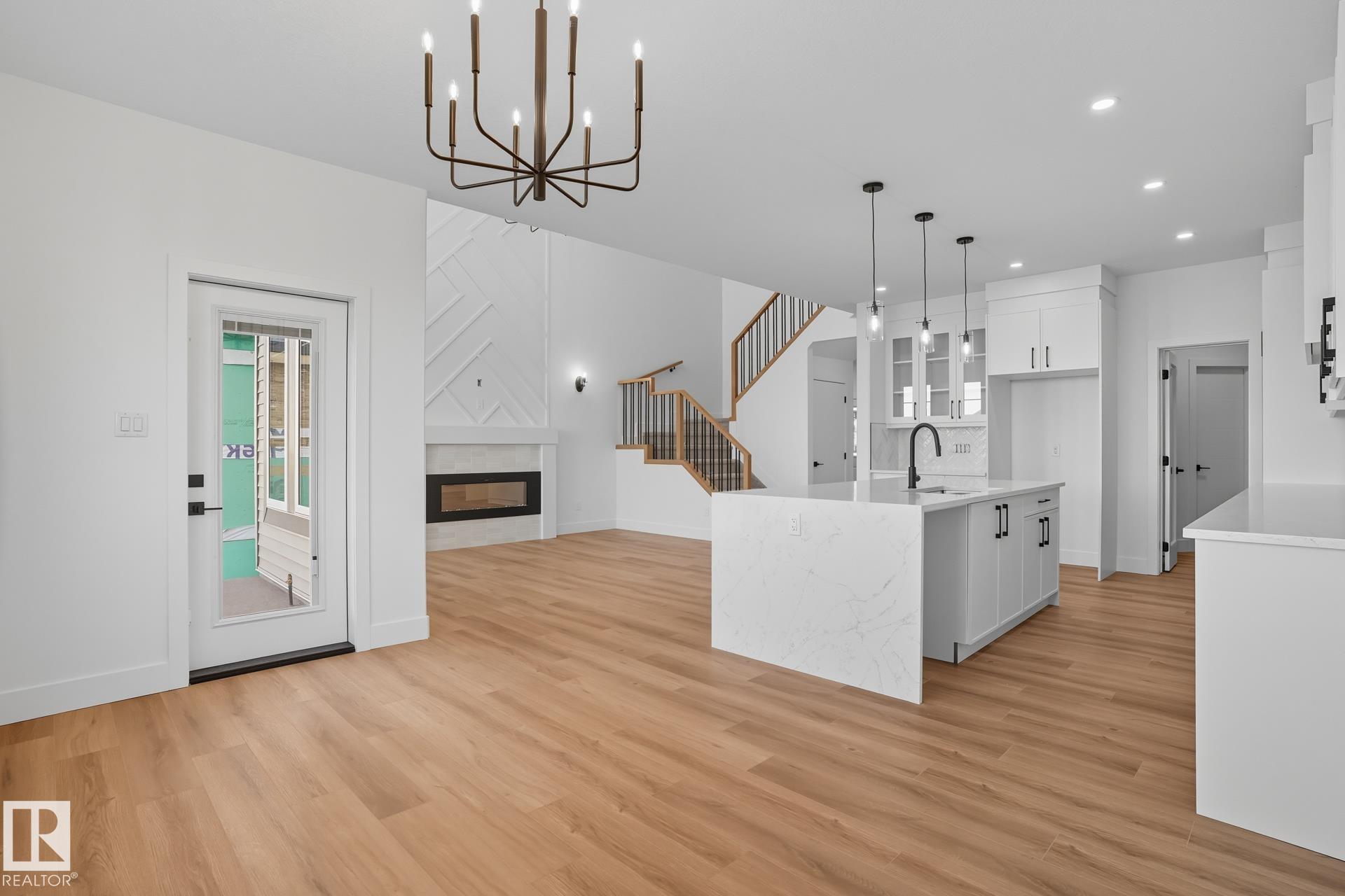 Discover this impressive WALKOUT home in Lakeview, offering over 2,300 sq ft. The open-concept main floor features a striking great room with a custom feature wall and electric fireplace, and a seamless flow into the chef-inspired kitchen. A walk-through pantry, spacious mudroom, and convenient main floor bedroom with a full bath make this layout perfect for families, guests, or multi-generational living. Step out onto the rear deck overlooking the serene dry pond, complete with a BBQ gas line, making it the ideal spot to relax or entertain. Upstairs, the rear primary suite captures pond views and offers a luxurious ensuite with direct access to the laundry room, including a sink. A bright, front-facing bonus room provides the perfect space for movie nights, playtime, or hosting guests. Located near several schools, transit, the Henday and other amenities. MOVE IN TODAY!