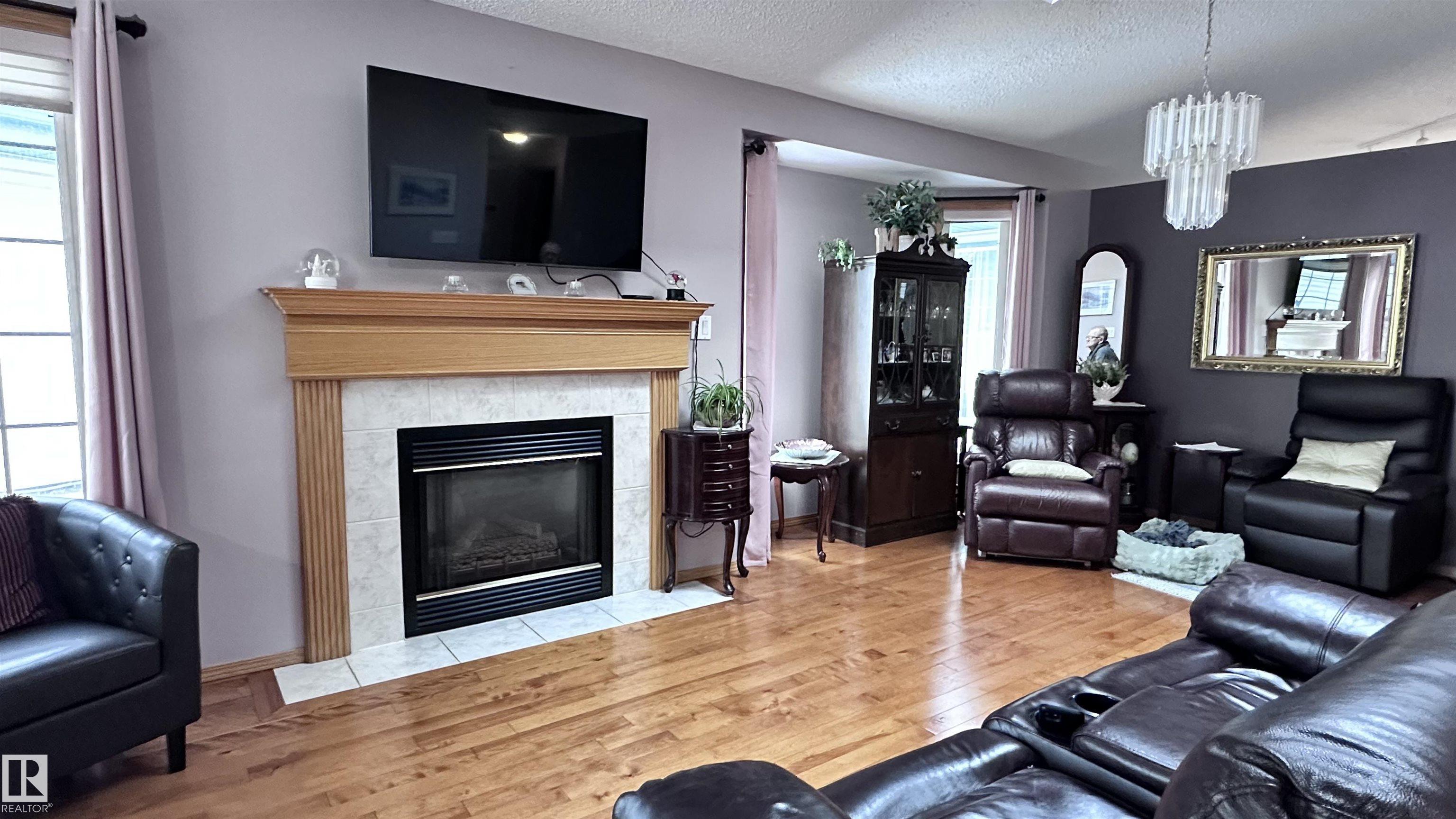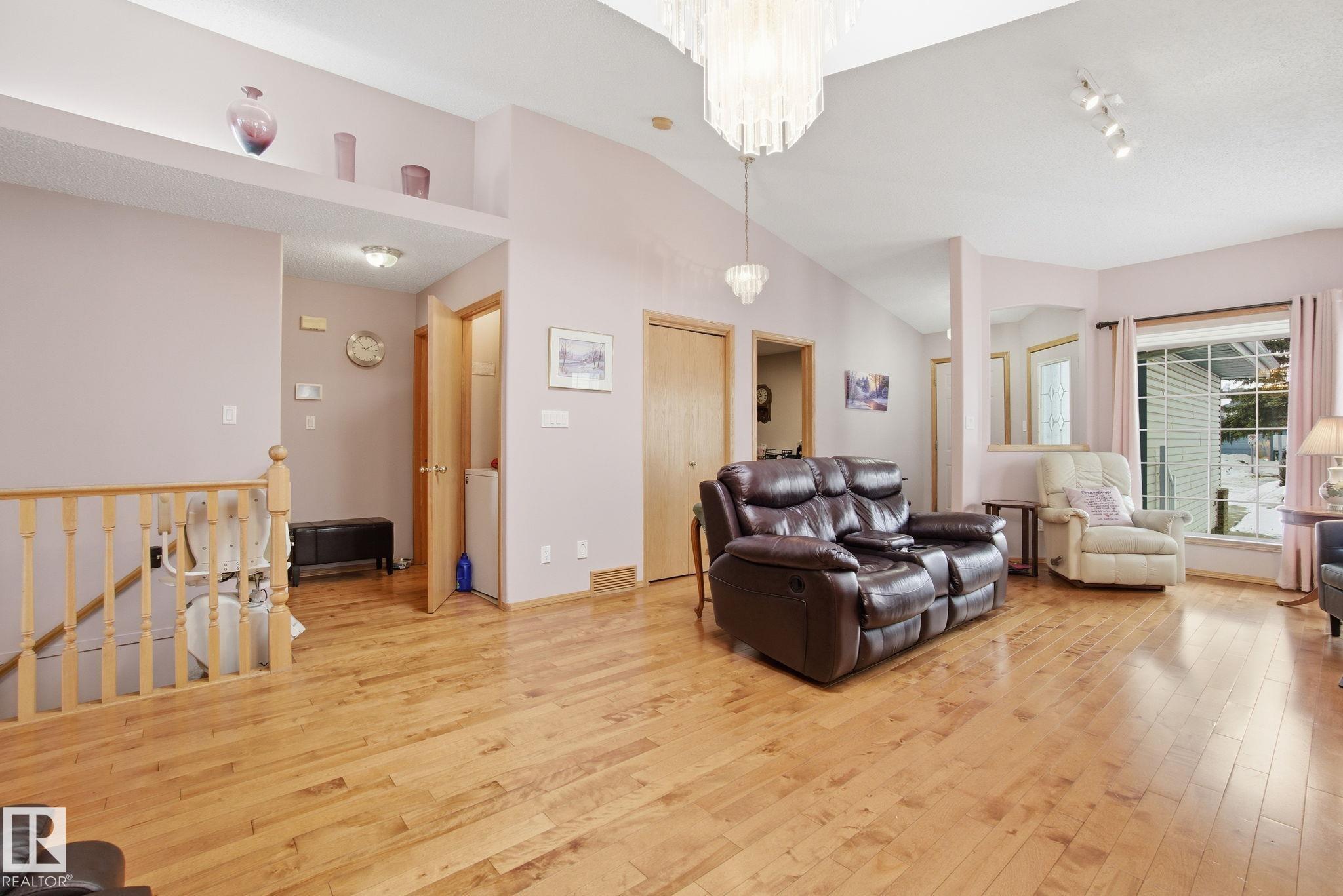 Located in Terra Losa East, this meticulously maintained original-owner home sits on the largest pie-shaped lot in the complex. Recent upgrades include a newer roof, maintenance-free front and back decks, plus a newer furnace and A/C. The double attached garage is equipped with a wheelchair lift for added accessibility. Step into a bright, spacious layout featuring a front living room with gleaming hardwood floors and a gas fireplace. Just off the entrance is a versatile den/bedroom/flex space. At the rear of the home, the U-shaped kitchen offers a generous breakfast bar and flows into the adjoining dining area with sliding patio doors to the deck. A cozy family room tucked into the back corner features a second gas fireplace and overlooks the backyard. The spacious primary suite easily fits a king-size bedroom set and includes a 3-piece ensuite, while the main bath features a convenient step-in tub.The fully finished basement offers a massive rec room, lg bdrm, 3-piece bathroom, and ample storage space.