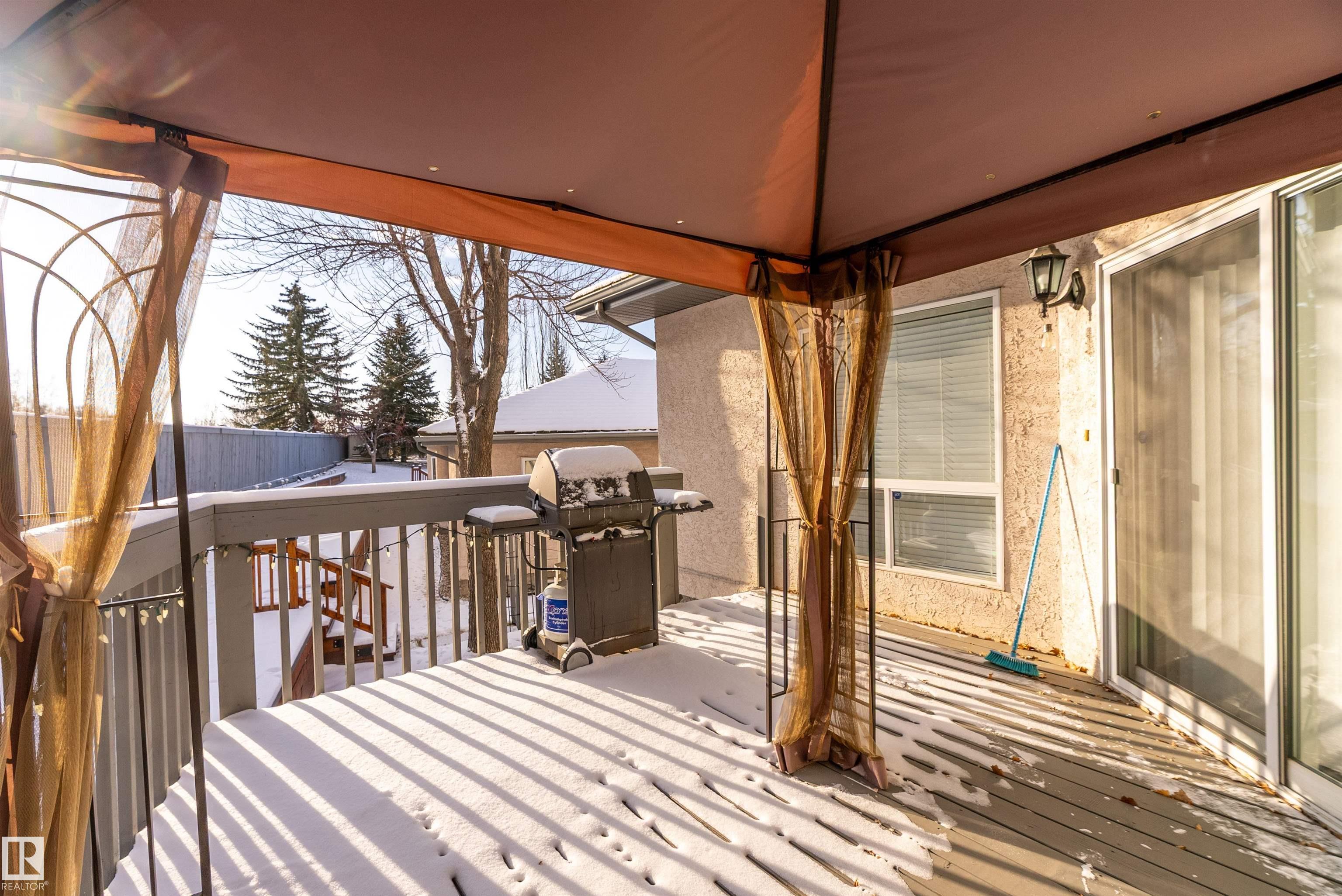 A rare find! Well-kept home tucked away on a quiet street in sought-after Creekside Terrace, offering a private setting just off the ravine. The welcoming entryway features a large closet, & just down the hall is a spacious laundry room. An open-concept layout includes a bright living room w/ vaulted ceiling & generous kitchen w/ raised eating island, pantry, ample cupboard & counter space, & new appliances. The large dining nook can easily accommodate gatherings w/ family & friends & opens to a large back deck w/ gazebo & semi-private yard space. Upstairs offers a spacious primary bedroom w/ double doors, 2 mirrored closets, & full ensuite. A 2nd bedroom & another full bath w/ stand-up shower completes this level. The unspoiled basement has tall ceilings & ample light, ready for your personal development. Additional features include oversized driveway & large double garage. Condo fees include internet & use of community amenities building. Ample visitor parking. Some photos may be virtually staged.