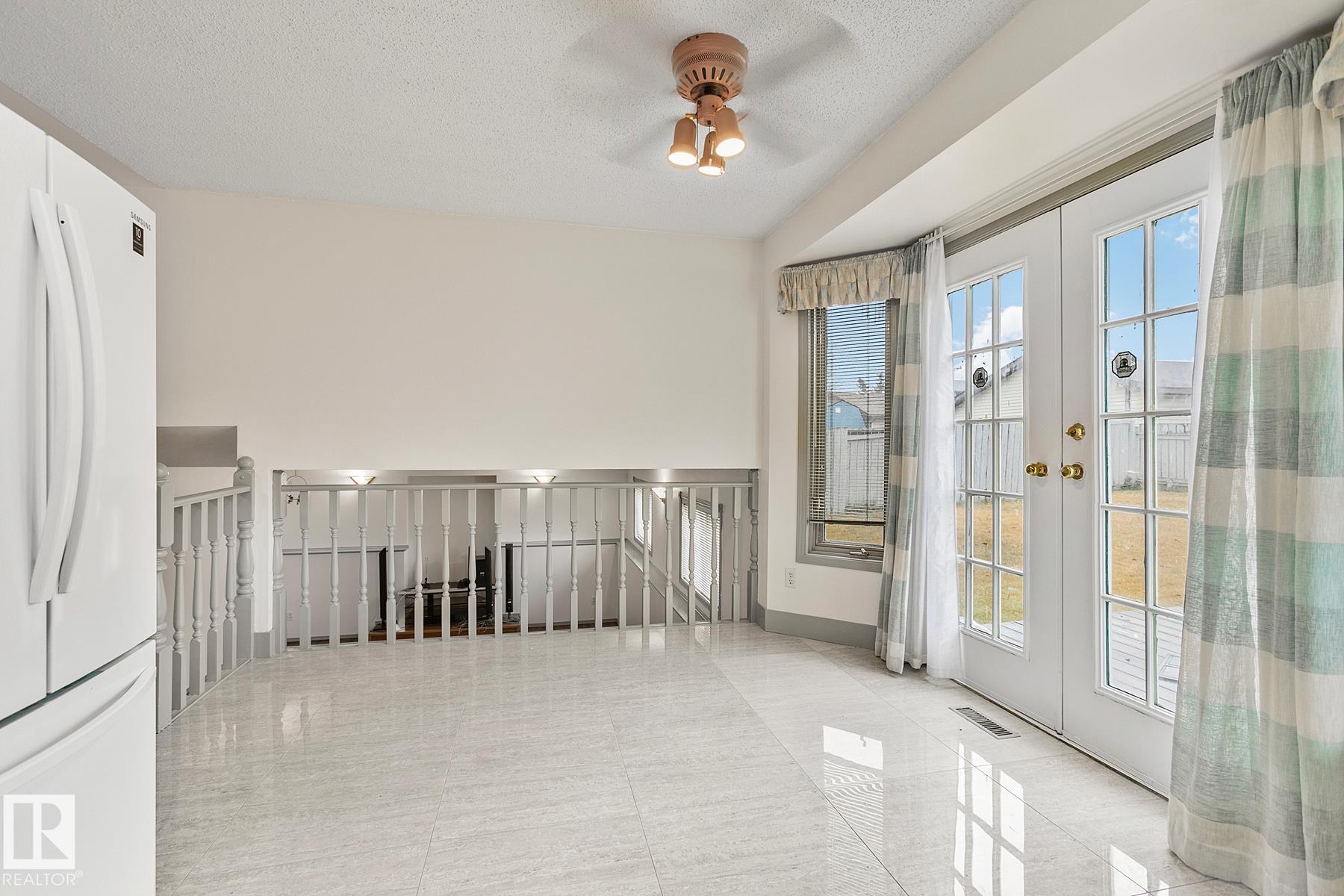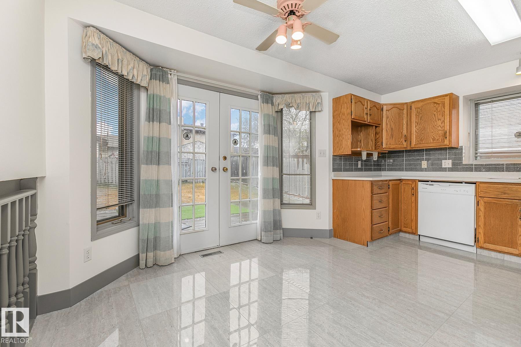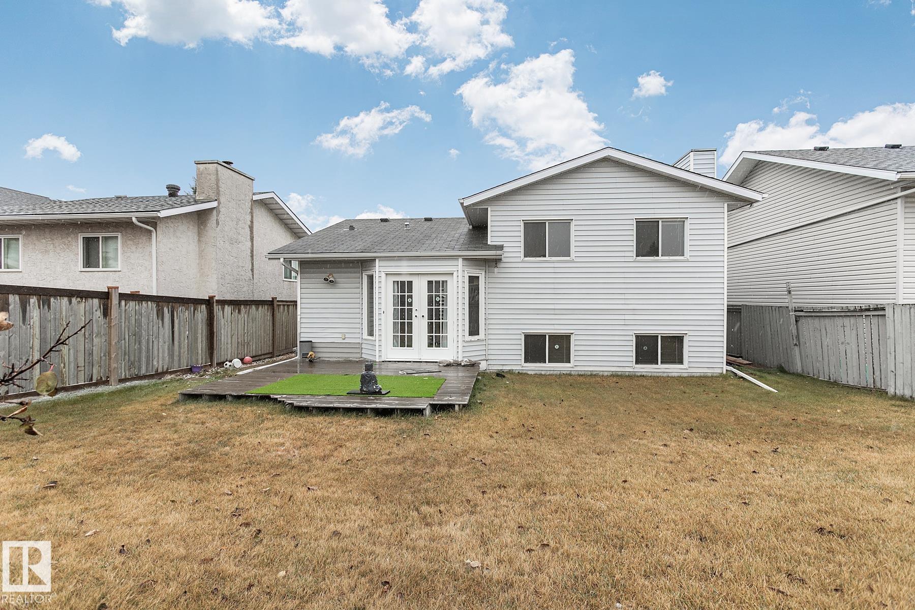 Upgraded SPLIT LEVEL along a QUIET street in Kirkness. The attached DOUBLE GARAGE & BAY WINDOW in the living room add to exterior curb appeal. Inside you are welcomed to a SKYLIGHT bringing in NATURAL LIGHT; a FRESH MOTIF w/ NEW PAINT, 24"x 24 inch TILE w/ grey accents against a white palate welcomes you in. Entertain in the SPACIOUS living room w/ a dining room attached. Around the corner is a U- SHAPED kitchen featuring new QUARTZ counters, MODERN back splash tile, NEW sink & faucet; the EAT IN NOOK has PATIO DOORS leading to the deck & large FULLY FENCED yard to play in. Upper floor has 4 piece bath w/ TILED floor, NEW QUARTZ counters, sink & faucet. 3 bedrooms are FAMILY FRIENDLY. 3rd floor has a SIZEABLE family room, a full bath featuring new tub surround with 24"x24" tile & an ample bedroom/den. Basement is partially finished & has some minor finishing left to make it complete. UPGRADED high efficiency furnace & chilly CENTRAL A/C, laundry room is around the corner, see it now! You will LOVE it!