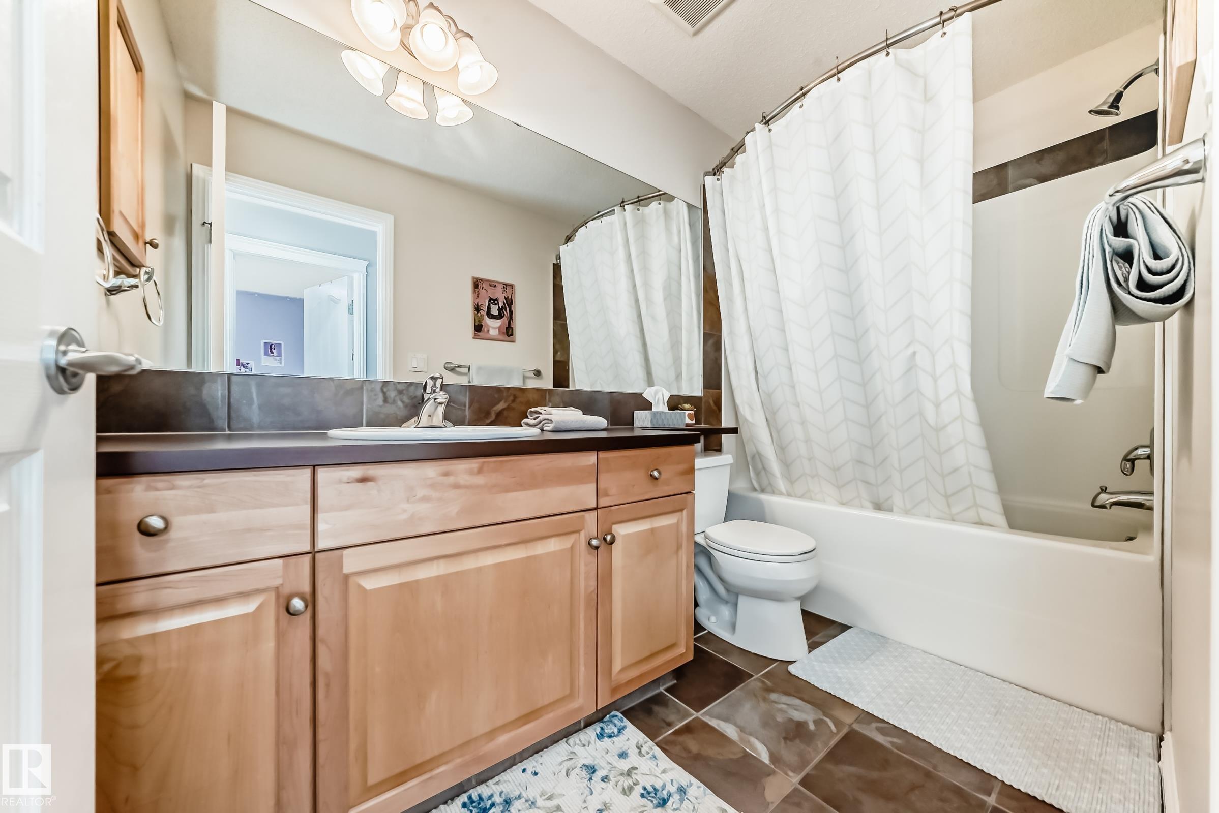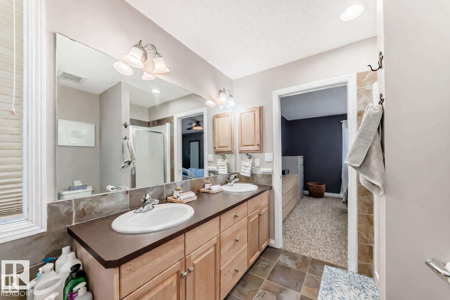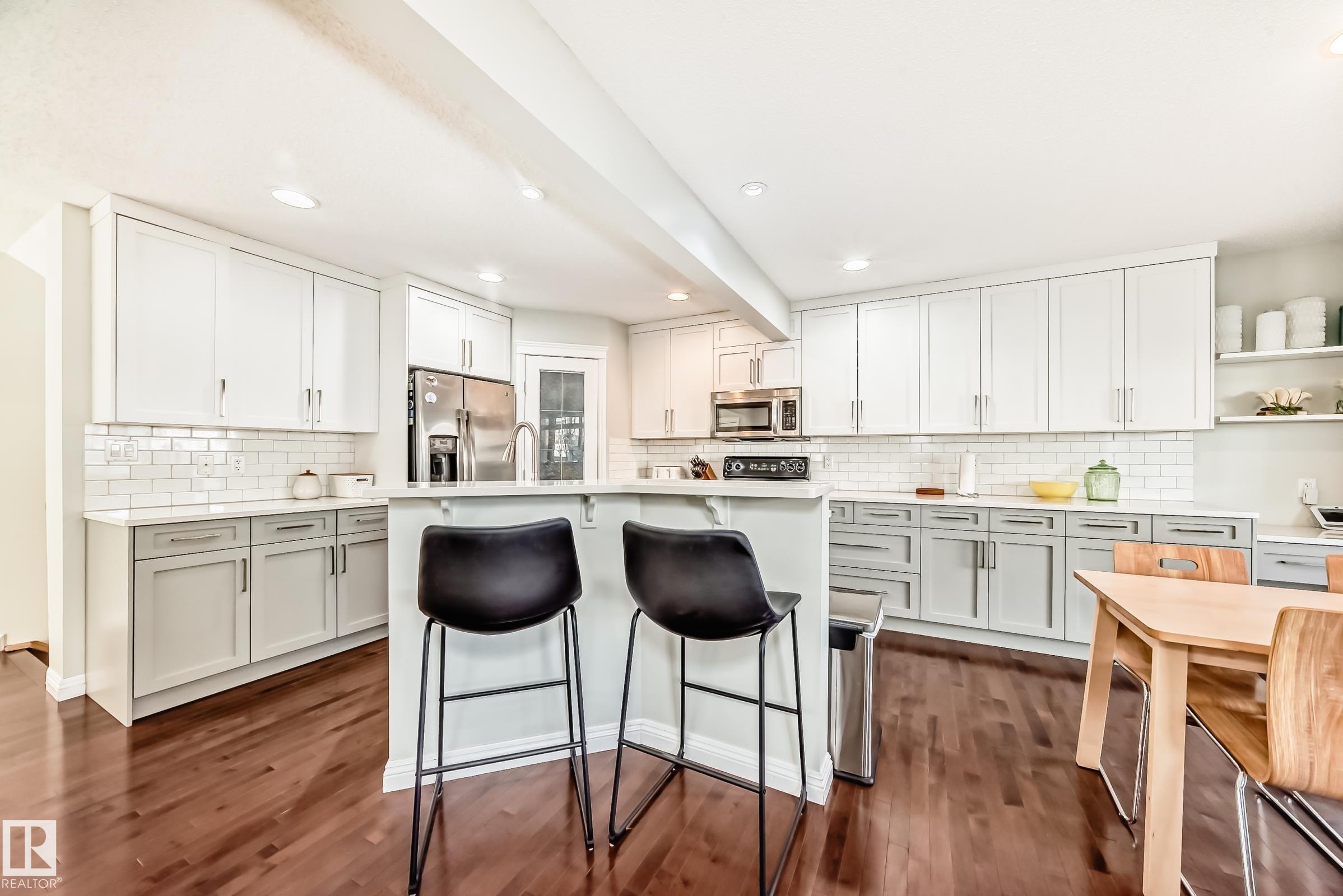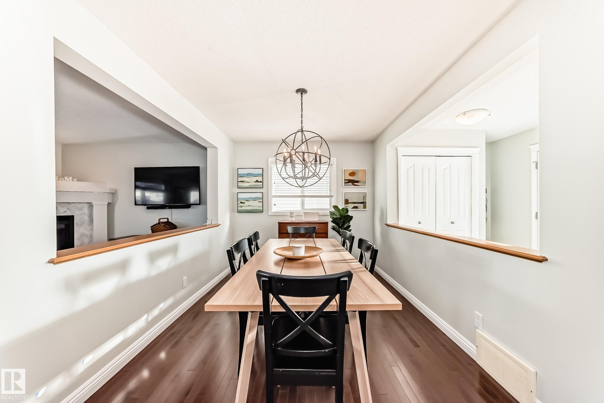 Welcome to the desirable Hamptons community! This home is steps from parks, ponds, and walking trails, and sits across from the pond on a wide street with a comfortable sense of space between homes. This fully finished 5 bedroom home is located in an established neighborhood with schools and amenities in place, including Bessie Nichols Public K-9 and Sister Annata Brockman Catholic K-9, both a short walk away. The main floor features updated custom cabinetry, while the fully finished basement offers 2 bedrooms, a spacious living area, and a full bathroom with heated floors. Upstairs offers an expansive bonus room, a laundry room, and three bedrooms, including a lovely primary retreat with a walk-in closet and a spa-like 5-pc ensuite with double sinks, a soaker tub and a separate shower. Clean, well cared for, and tastefully updated throughout, this move-in ready home also provides quick access to Anthony Henday Drive, the Whitemud, shopping, dining, and everyday amenities. Simply unpack and enjoy.