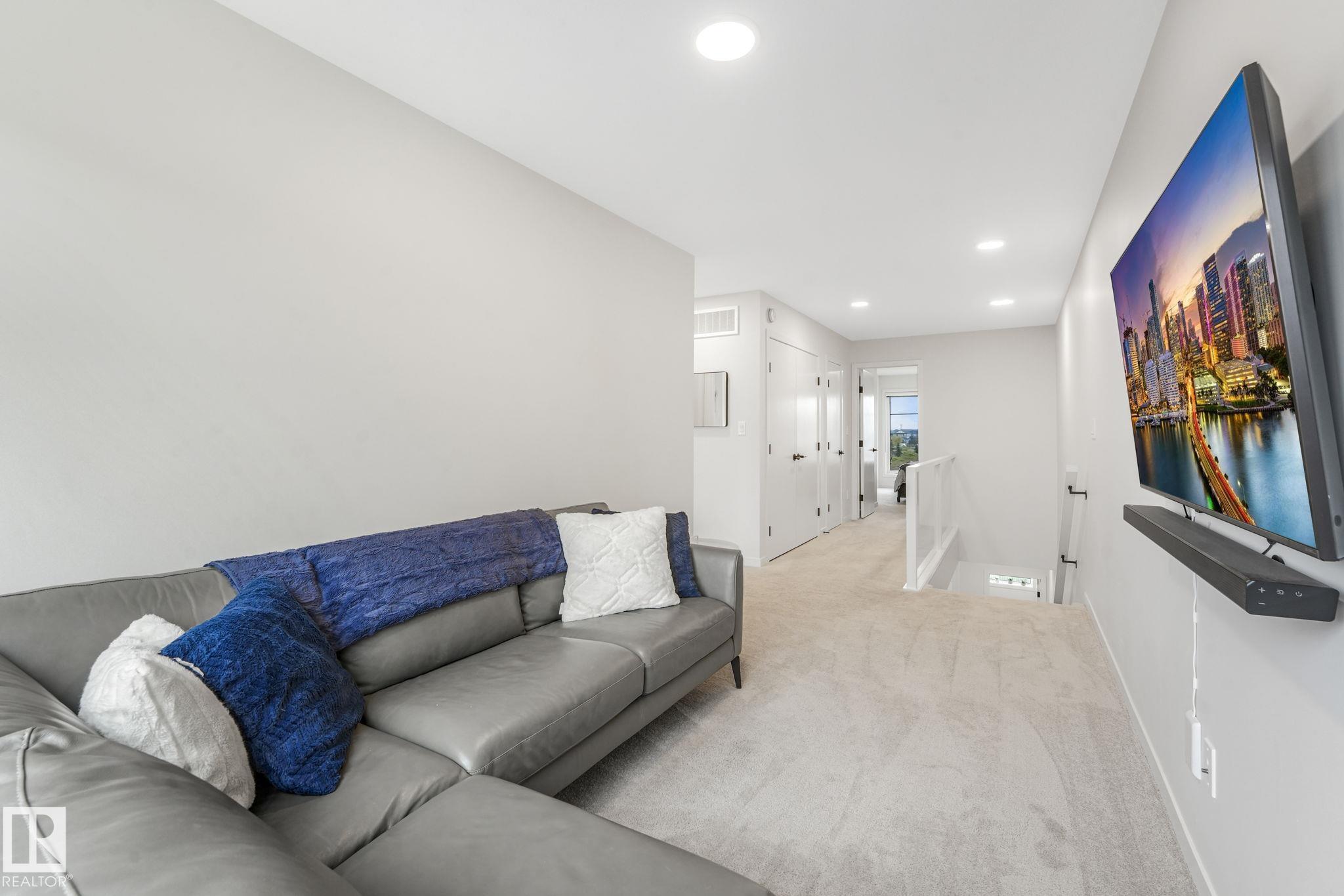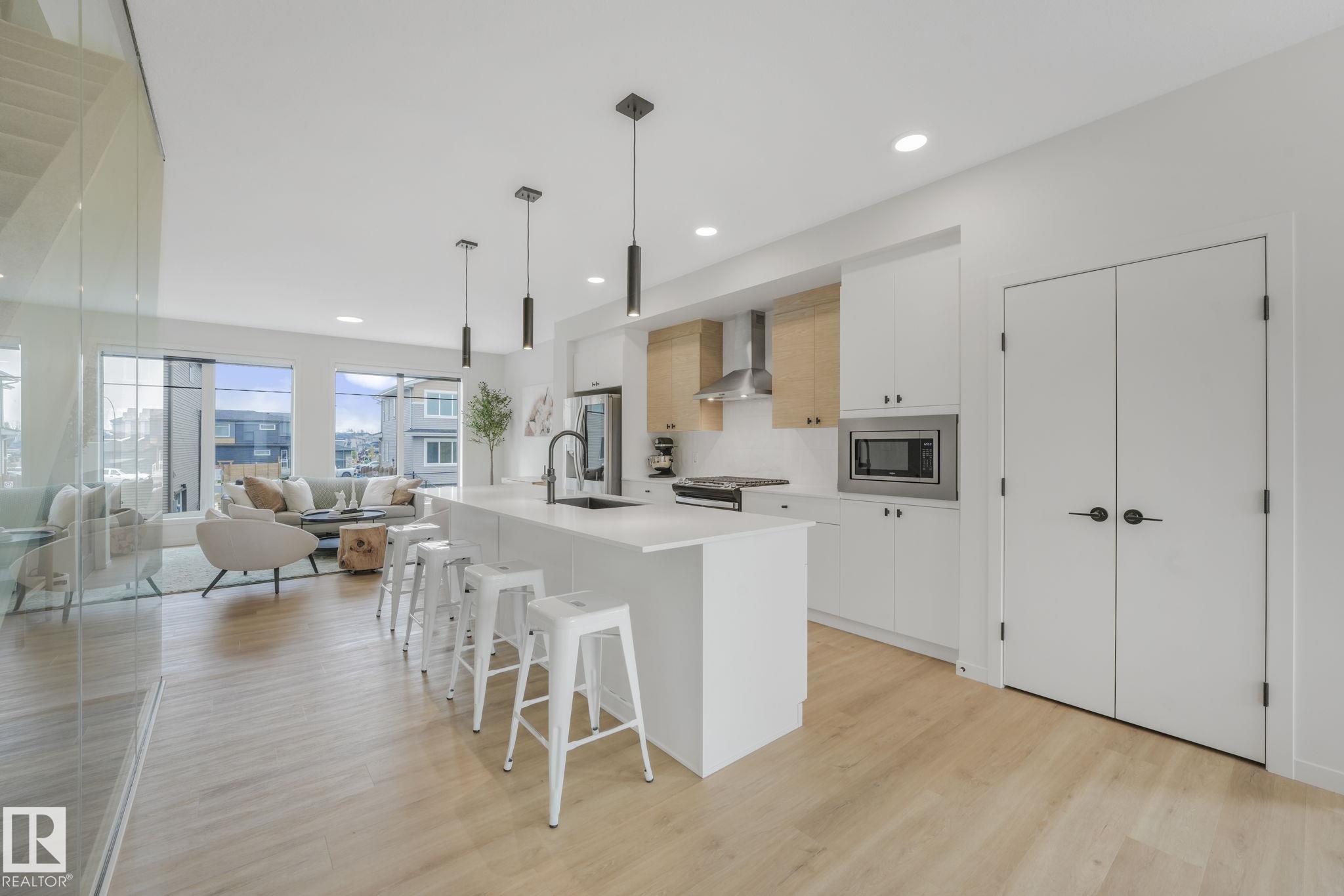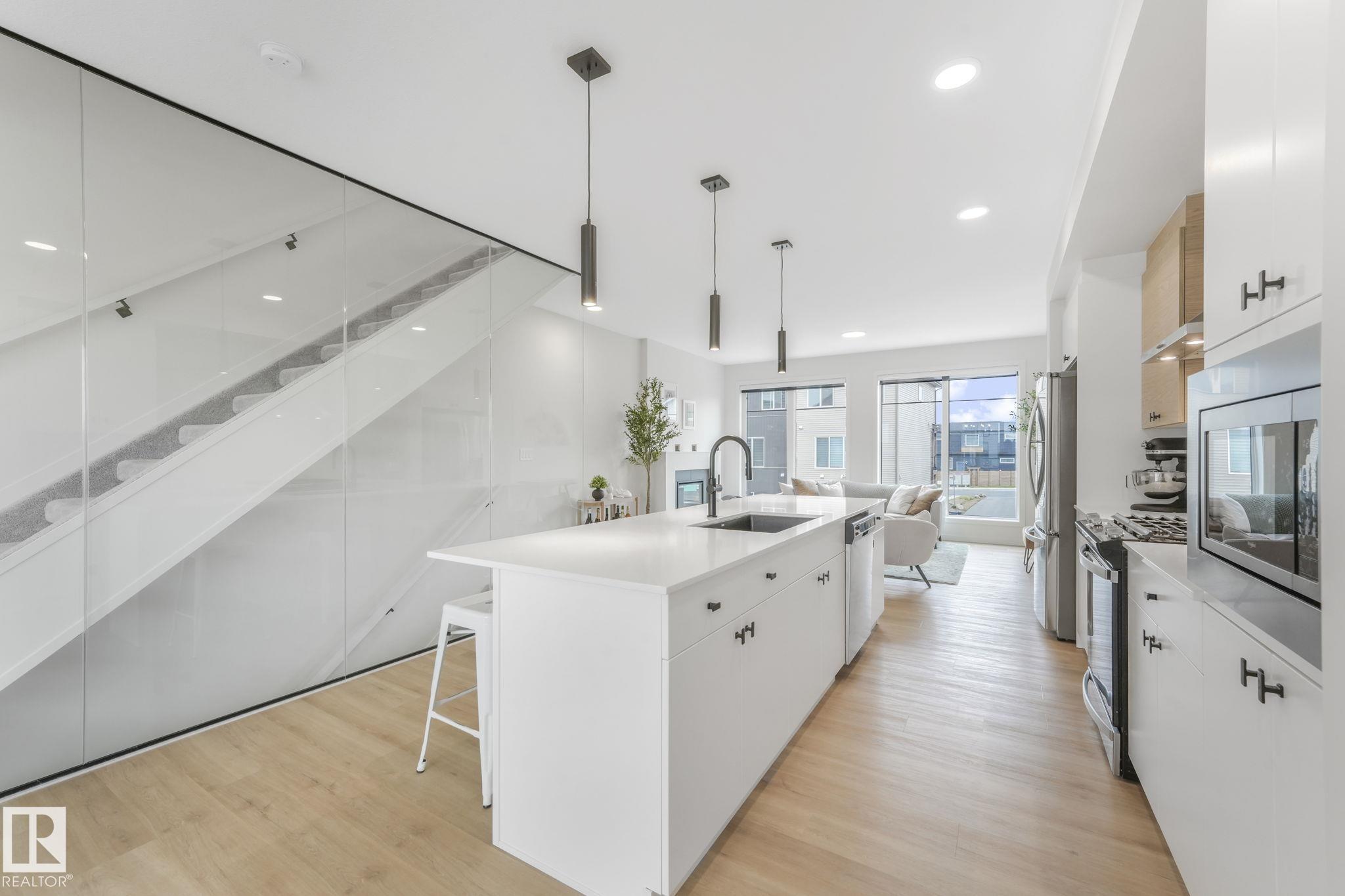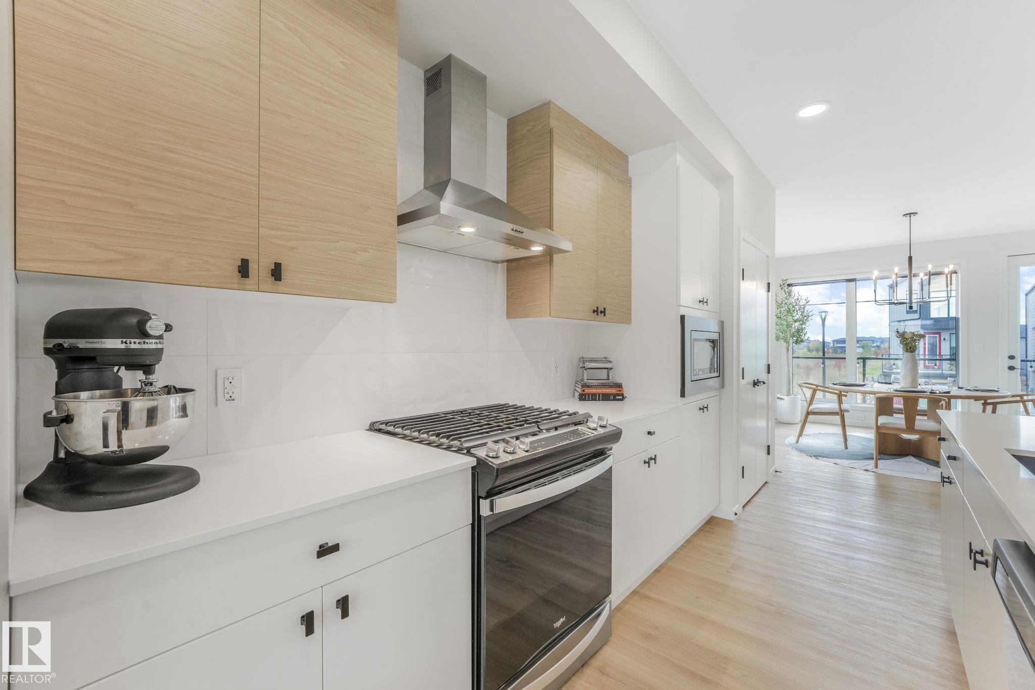 Spectacular property, incredible value! Clean lines, elegant design & at the end of the street. Next to a park with incredible views from dining, primary bed and west facing private patio. 2 beds plus den (or 3rd bedroom), & 3 baths. Cantiro built. This upgraded executive style home is filled with natural light and loaded with upgrades. 9ft ceilings. Gourmet island kitchen with granite counters, gas range, upgraded backsplash, stainless appliances, remote controlled electronic (smart) window blinds, alarm, & more! Primary bedroom with spa-like ensuite, features soaker tub, upright glass shower & walk-in closet. Upper level laundry for added convenience. Heated double car garage with clean epoxy flooring, and EV charger. Central A/C and low maintenance landscaping make this home comfortable and easy to own. Close to schools, and easily accessed. Pride of ownership evident throughout. Gently lived in and meticulously cared-for, non-smoker home (no kids/pets). Ready to welcome you!