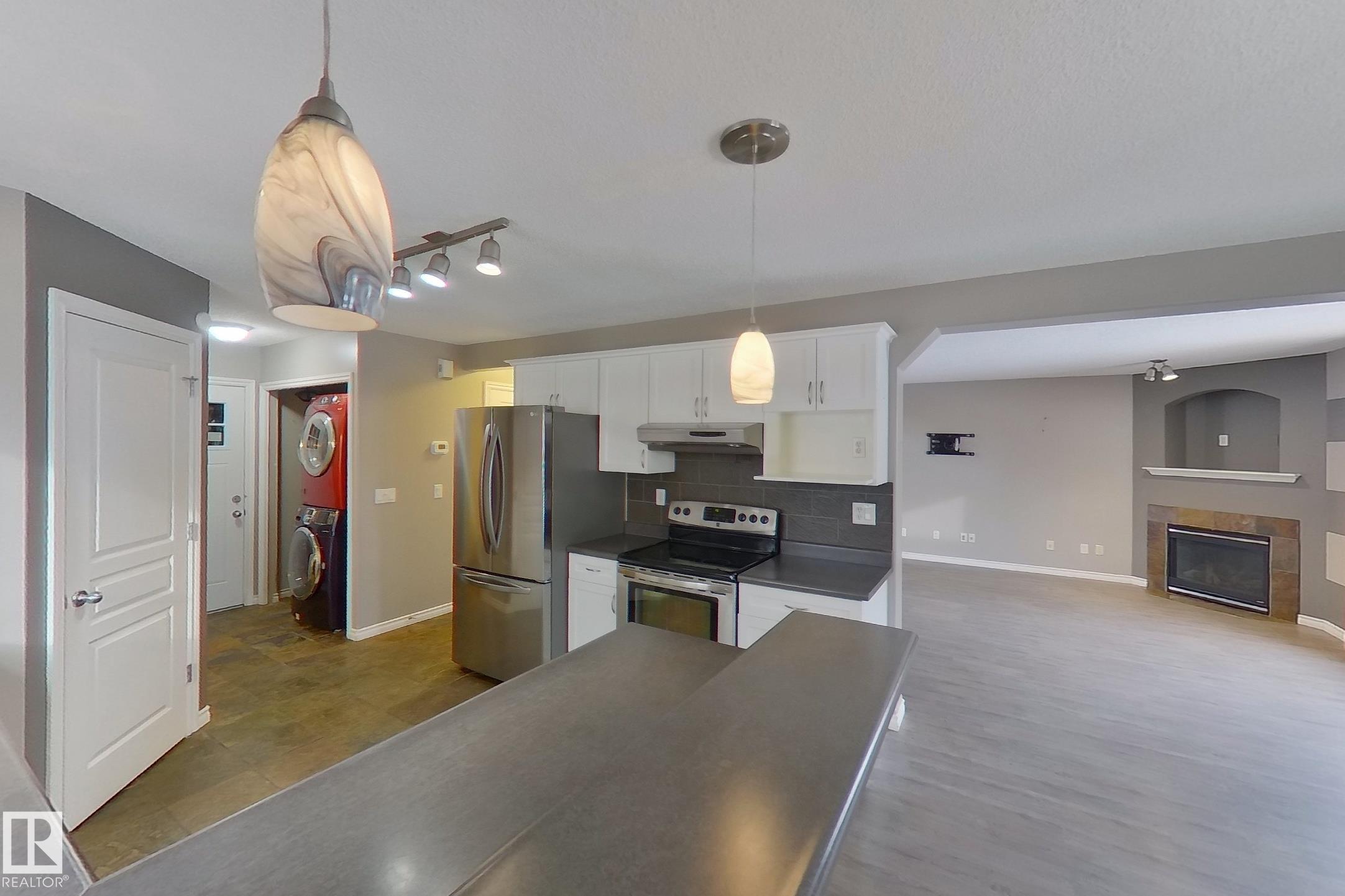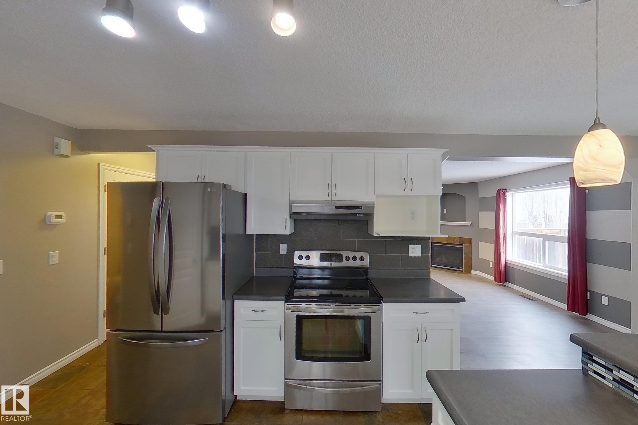Welcome to 156 Lakewood Drive in Spruce Grove, a spacious family home filled with natural light. The vaulted entryway with large windows creates an inviting first impression, leading into the living room featuring a gas fireplace. The kitchen offers ample storage space and functionality for everyday living. This home features four bedrooms and three and a half bathrooms, including a generous primary bedroom with a walk-in closet and ensuite with a walk-in shower. Three bedrooms are located upstairs, along with a full bathroom, while the fully developed basement includes an additional bedroom, a large family room, and another full bathroom. A convenient half bath is located on the main floor. Enjoy the backyard with a large deck and pergola, perfect for outdoor gatherings. A double attached garage completes this property, offering excellent potential in a desirable Spruce Grove neighborhood.