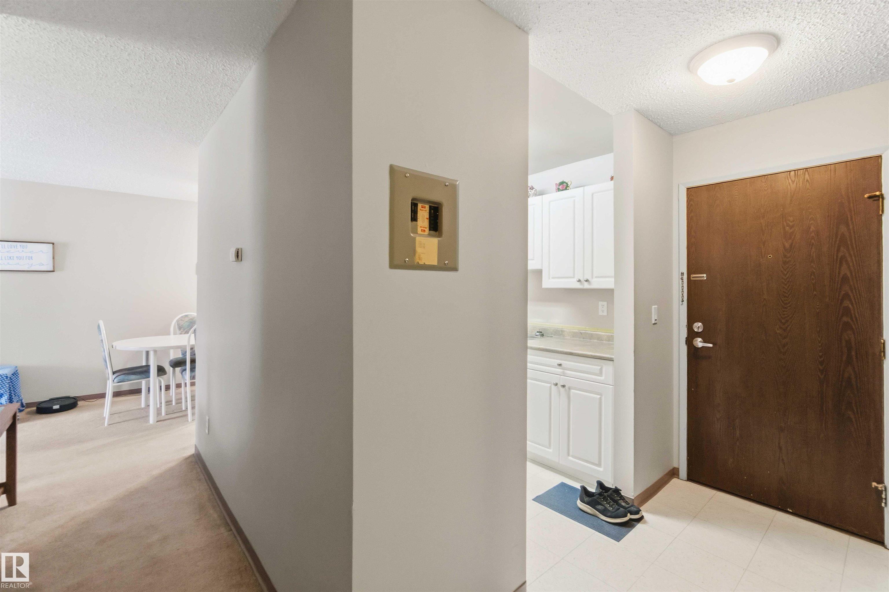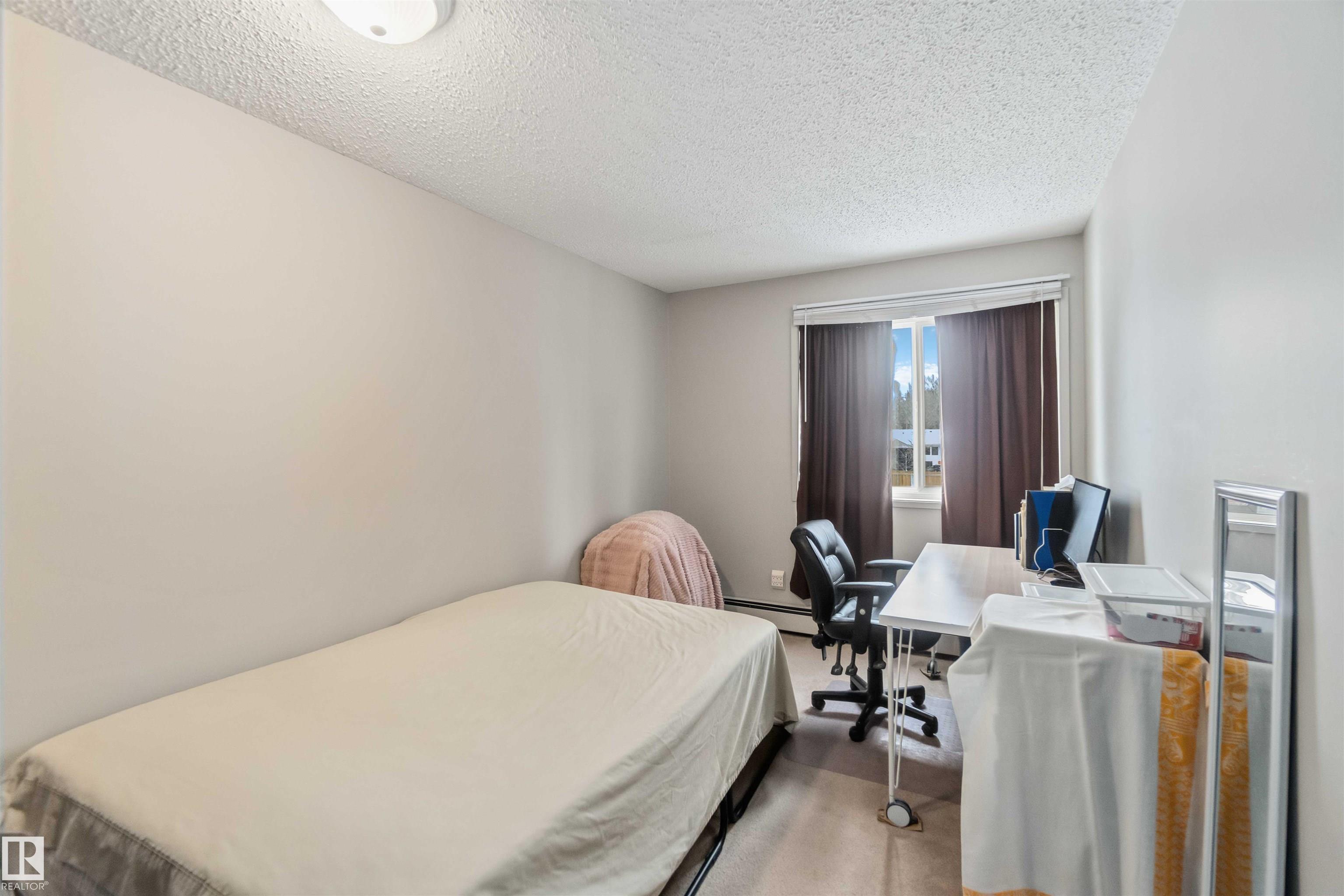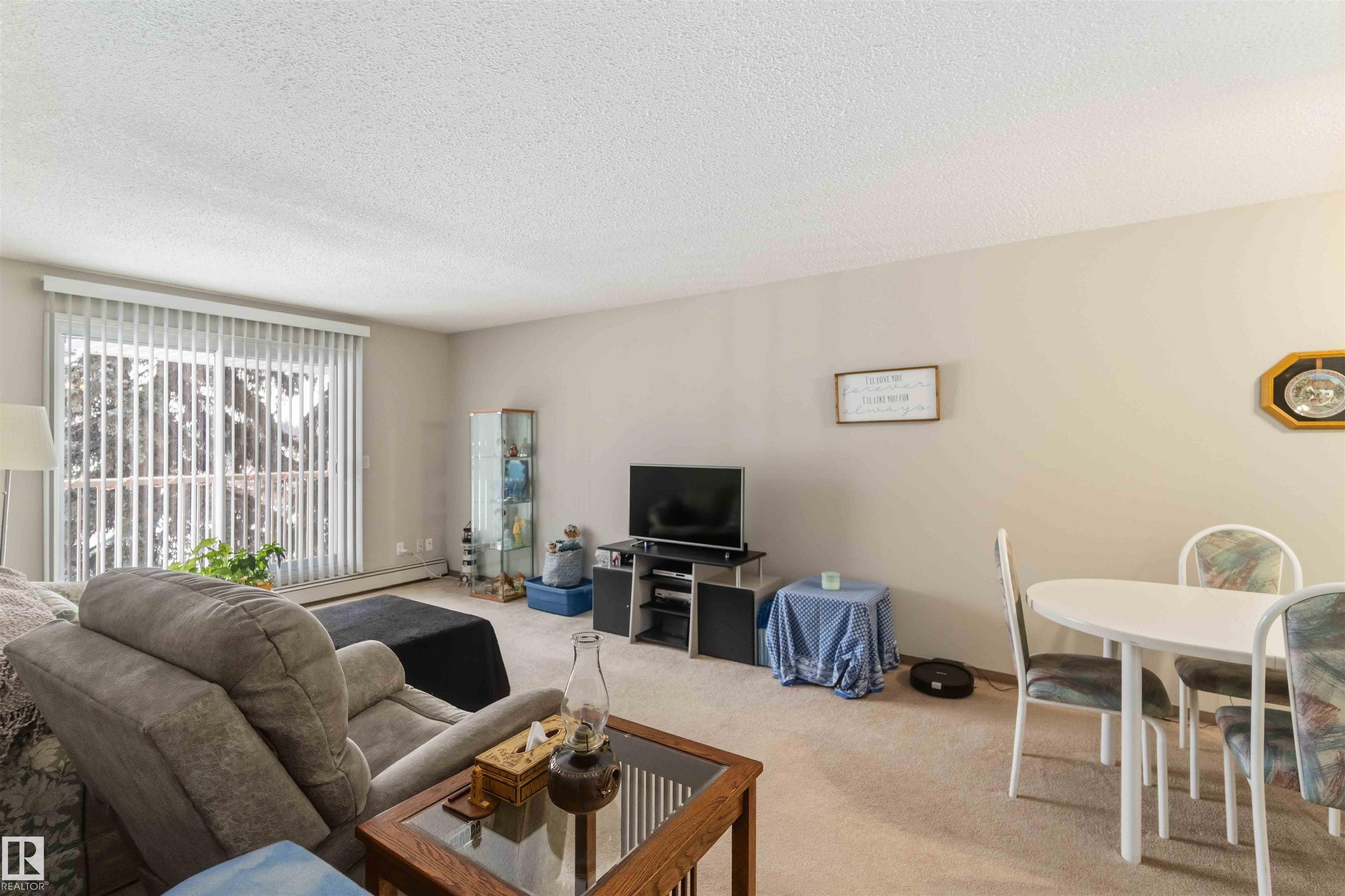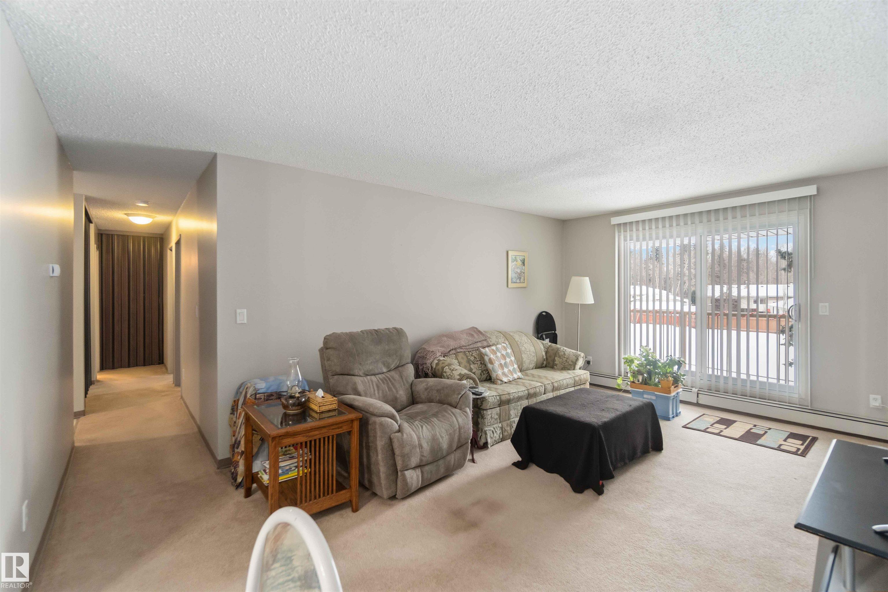 UPGRADED! AMAZING LOCATION! WELCOME TO UNIT 214, IN STONY PLAIN'S MERIDIAN PINES. THIS INCREDIBLE UNIT HAS 844 SQ FEET OF LIVING SPACE, 2 BEDROOMS, 1 FULL BATH, AND FACES EAST (CREEK AND WALKING PATHS). THE KITCHEN HAS IVORY CABINETRY, A WHITE FRIDGE, AND LINO FLOORING. LIVING AREA IS SPACIOUS WITH NEWER TRIM AND CARPET FLOORS. LIVING AREA HAS SLIDING DOOR EXTERIOR DECK ACCESS (EAST FACING). DINING NOOK IS OPEN TO KITCHEN. PRIMARY BEDROOM IS KING SIZED. SECONDARY BEDROOM IS ALSO OVER-SIZED WITH A SLIDING DOOR CLOSET. FULL MAIN BATH HAS BEEN UPGRADED. UNIT COMES WITH 1 ASSIGNED EXTERIOR PARKING SPACE. THE BUILDING HAS BEEN RECENTLY RENOVATED WITH IMPROVEMENTS TO BOTH INTERIOR AND EXTERIOR AREAS. LOCATION IS WALKING DISTANCE TO SCHOOLS, SHOPPING, AND RECREATION. UNIT IS PERFECT FOR A STARTER HOME OR INVESTMENT. THERE IS A MANAGED RENTAL POOL OPTION FOR ALL OWNERS.
