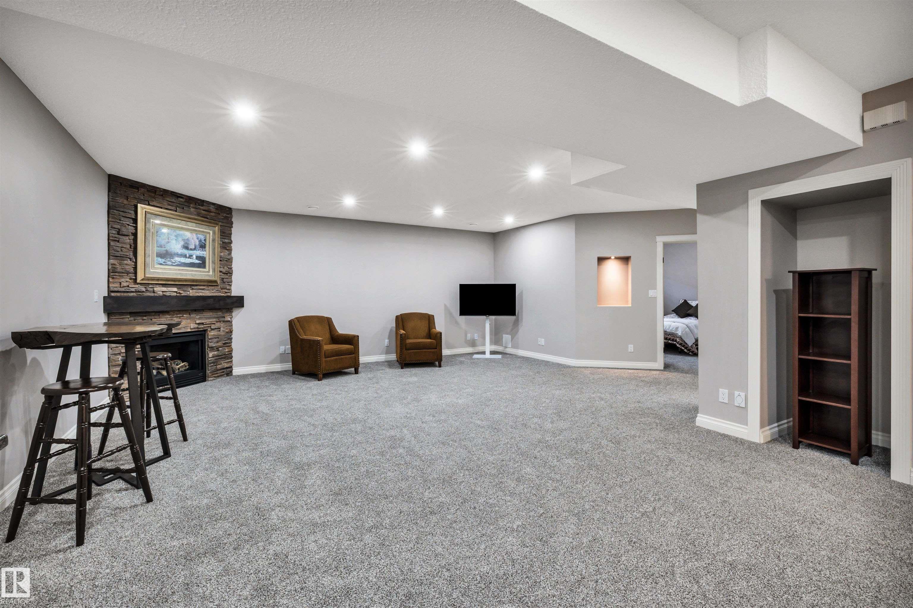 Beautifully upgraded 1435 sq. ft. bungalow half duplex (55+ condo) in prestigious Lacombe Park Estates is move-in ready! The main floor features an open concept plan and has luxury vinyl plank flooring throughout. The kitchen has refinished cabinetry, tile backsplash and newer granite countertops. Spacious living room has a gas f/p and 11' ceilings! Large primary bedroom has a bay window, walk-in closet and a renovated ensuite with a large walk-in shower. Main floor laundry plus spacious office. Maintenance free deck with gas BBQ hookup. Fully finished basement features a large rec room with a wet bar and 2nd gas f/p, 2 more bedrooms and a 4 pce bath. New high quality carpet throughout basement. Newer furnace (2022) & HWT (2020). Immaculately kept, close to walking trails and all amenities!