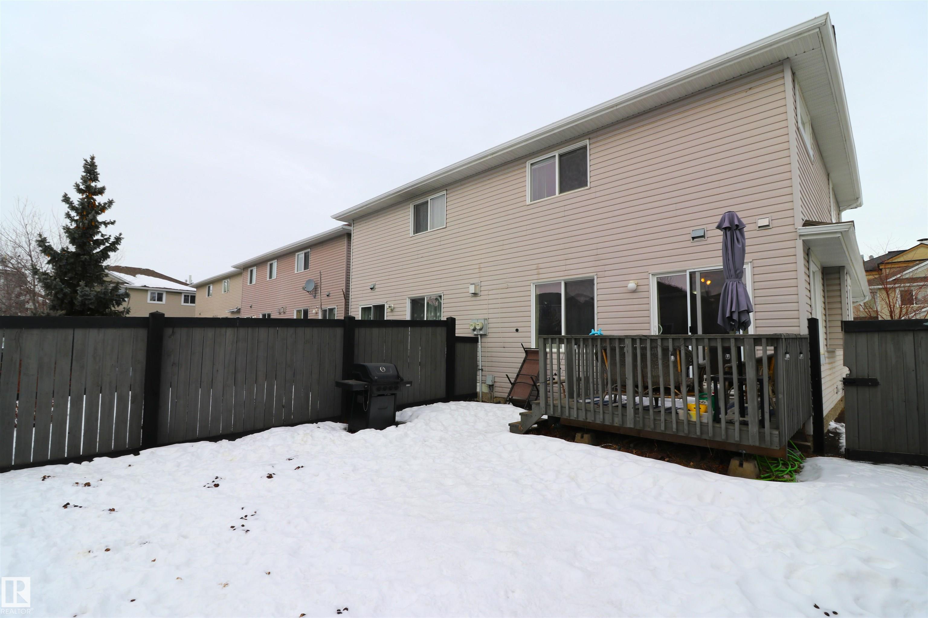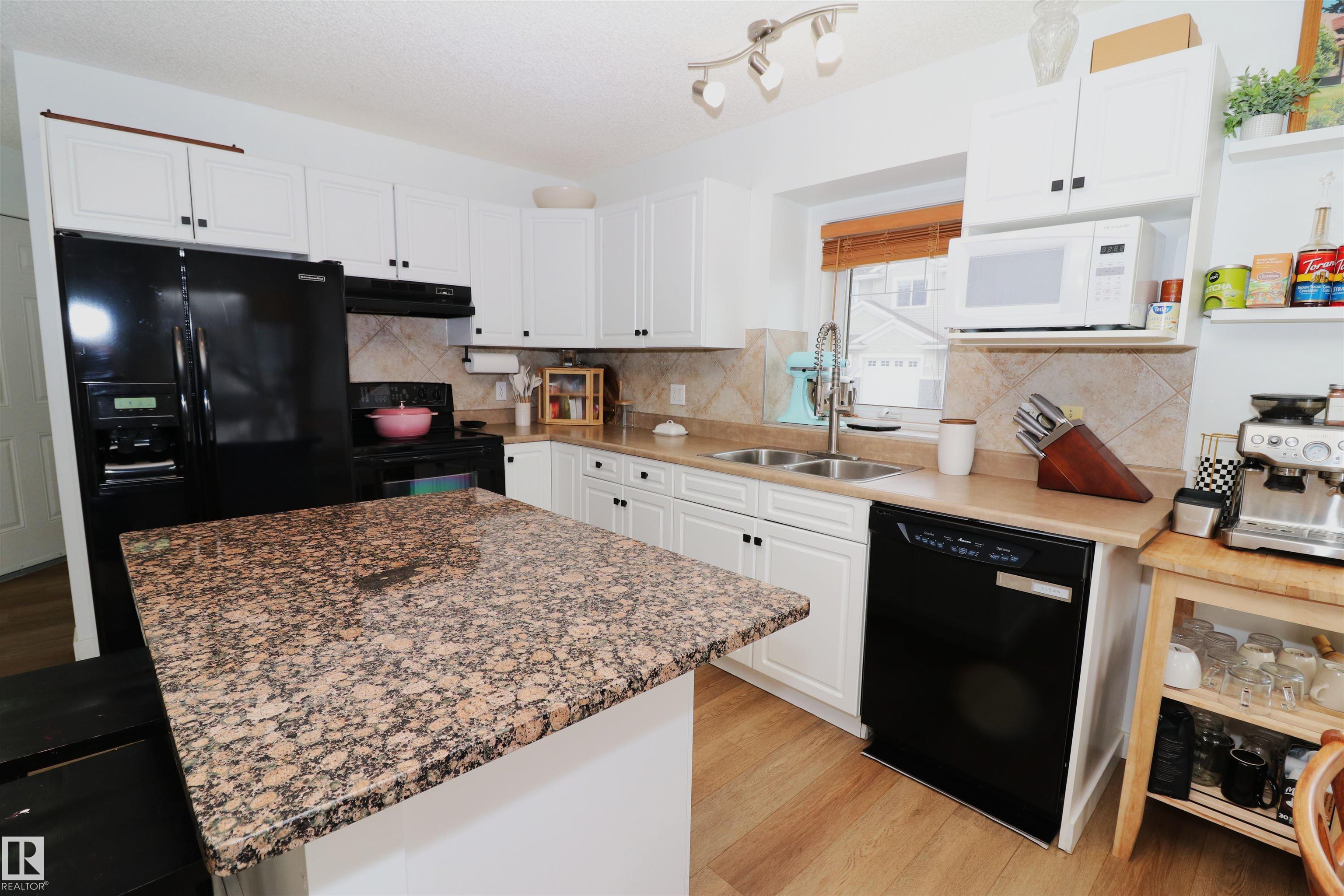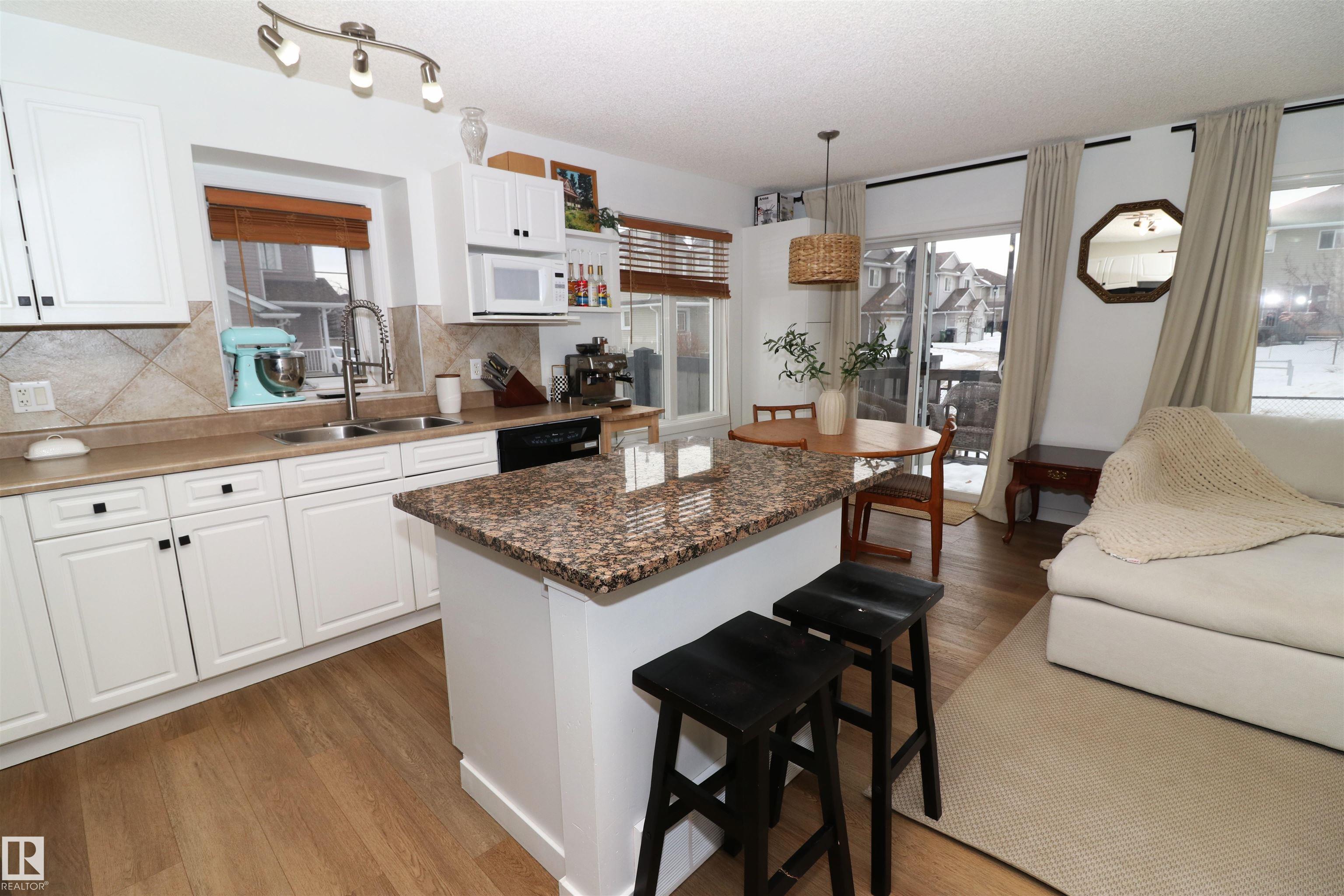Gorgeous updated half duplex backing green space! This beautiful property has so much going for it - new vinyl plank floors main floor & basement, bright white paint showing off the natural light of the many windows throughout. The open concept kitchen has white cabinets with modern black hardware, there is a granite island for extra work space & friends to cheers wine. The large living space isn't limited by a fireplace, so big furniture can fill it out in your layout choice. The dining nook sits in front of the patio door which leads to the deck, south facing yard & view of the greenspace. Upstairs are 2 huge bedrooms - the 16x12 primary with an ensuite and walk-in closet & the 2nd bedroom which is 15x11 has its own walk-in closet as well. There is a 2nd full bath upstairs as well. The finished basement is a great rec space and houses laundry & utilties as well. Single garage attached & driveway space for a 2nd.