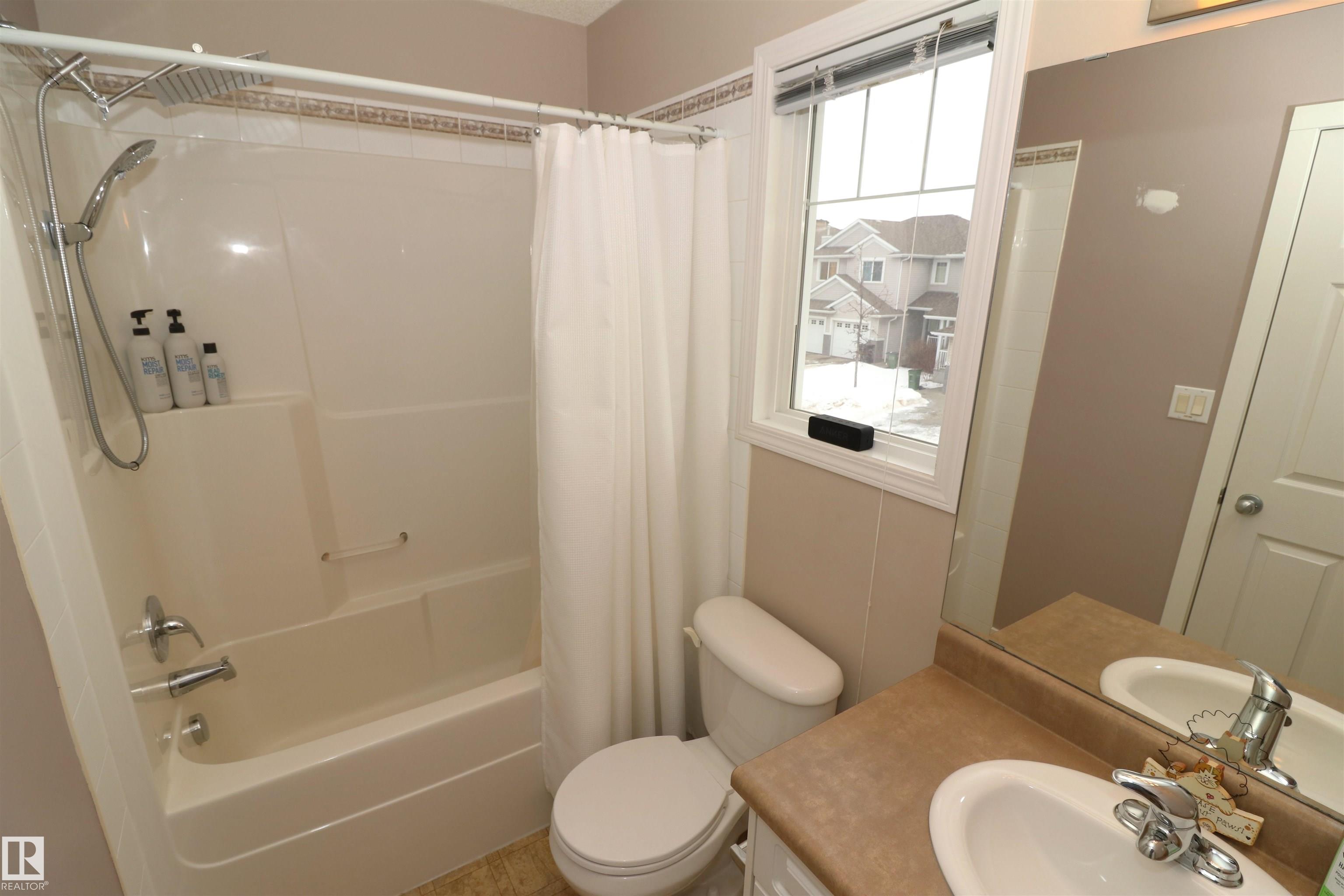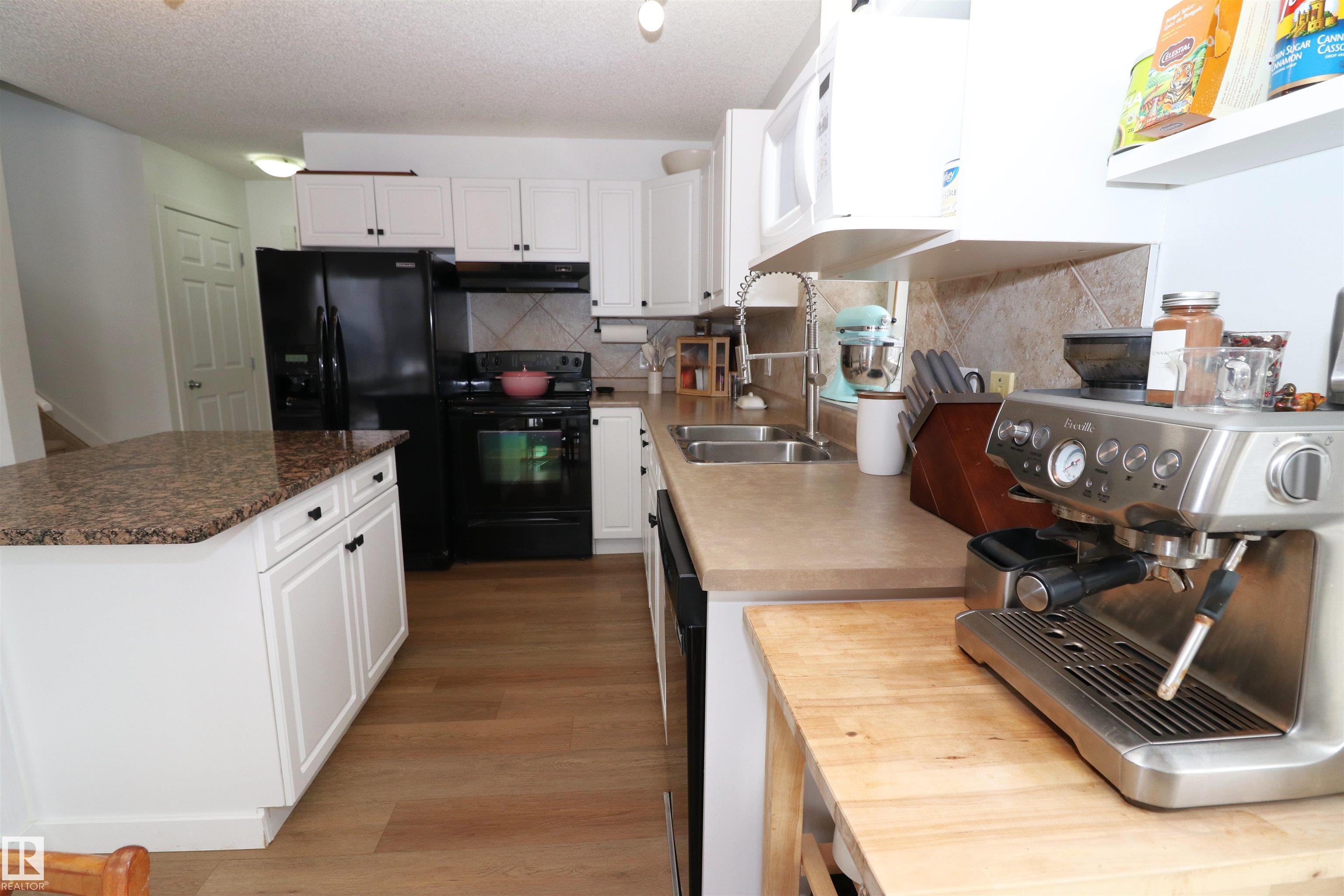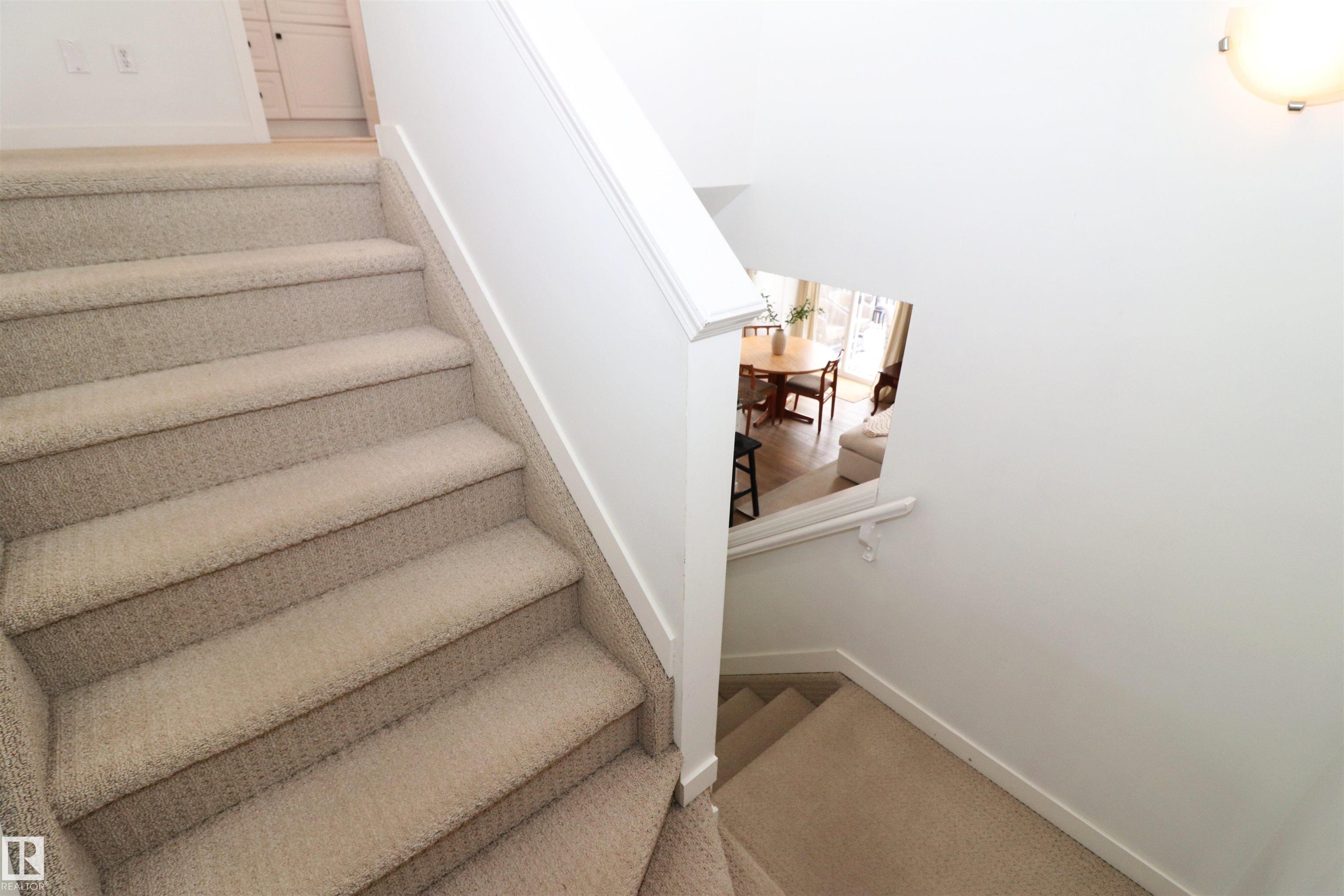 Gorgeous updated half duplex backing green space! This beautiful property has so much going for it - new vinyl plank floors main floor & basement, bright white paint showing off the natural light of the many windows throughout. The open concept kitchen has white cabinets with modern black hardware, there is a granite island for extra work space & friends to cheers wine. The large living space isn't limited by a fireplace, so big furniture can fill it out in your layout choice. The dining nook sits in front of the patio door which leads to the deck, south facing yard & view of the greenspace. Upstairs are 2 huge bedrooms - the 16x12 primary with an ensuite and walk-in closet & the 2nd bedroom which is 15x11 has its own walk-in closet as well. There is a 2nd full bath upstairs as well. The finished basement is a great rec space and houses laundry & utilties as well. Single garage attached & driveway space for a 2nd.