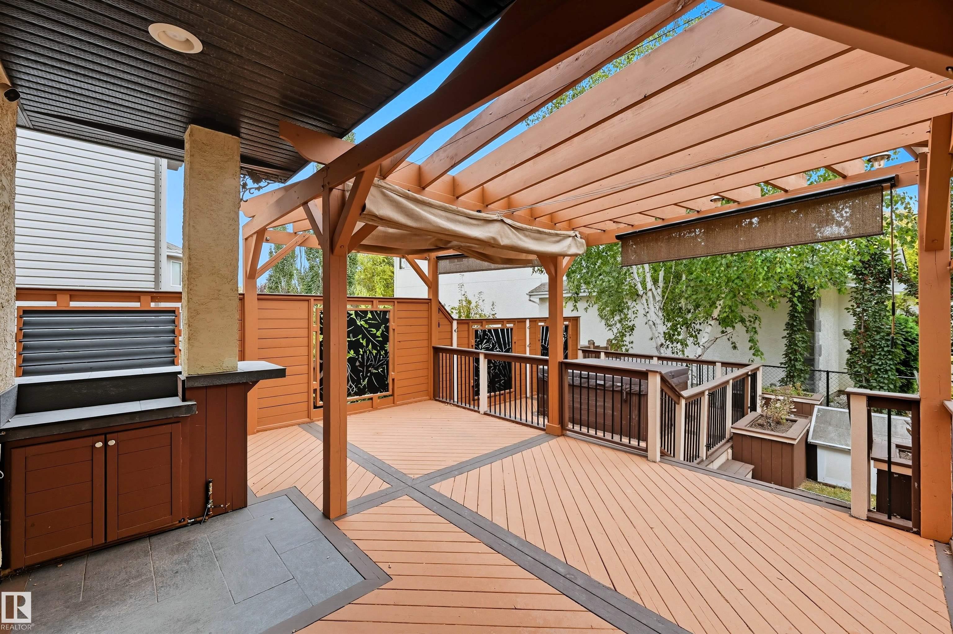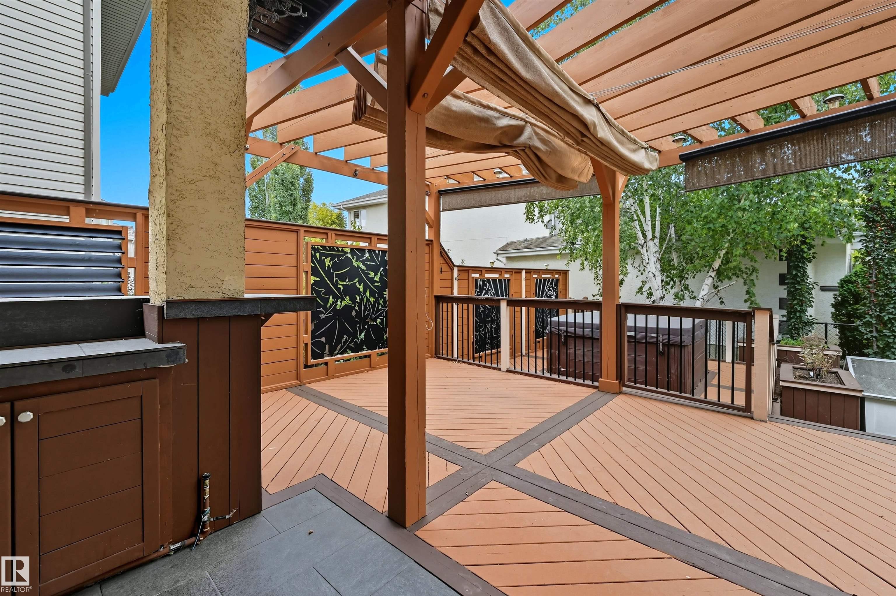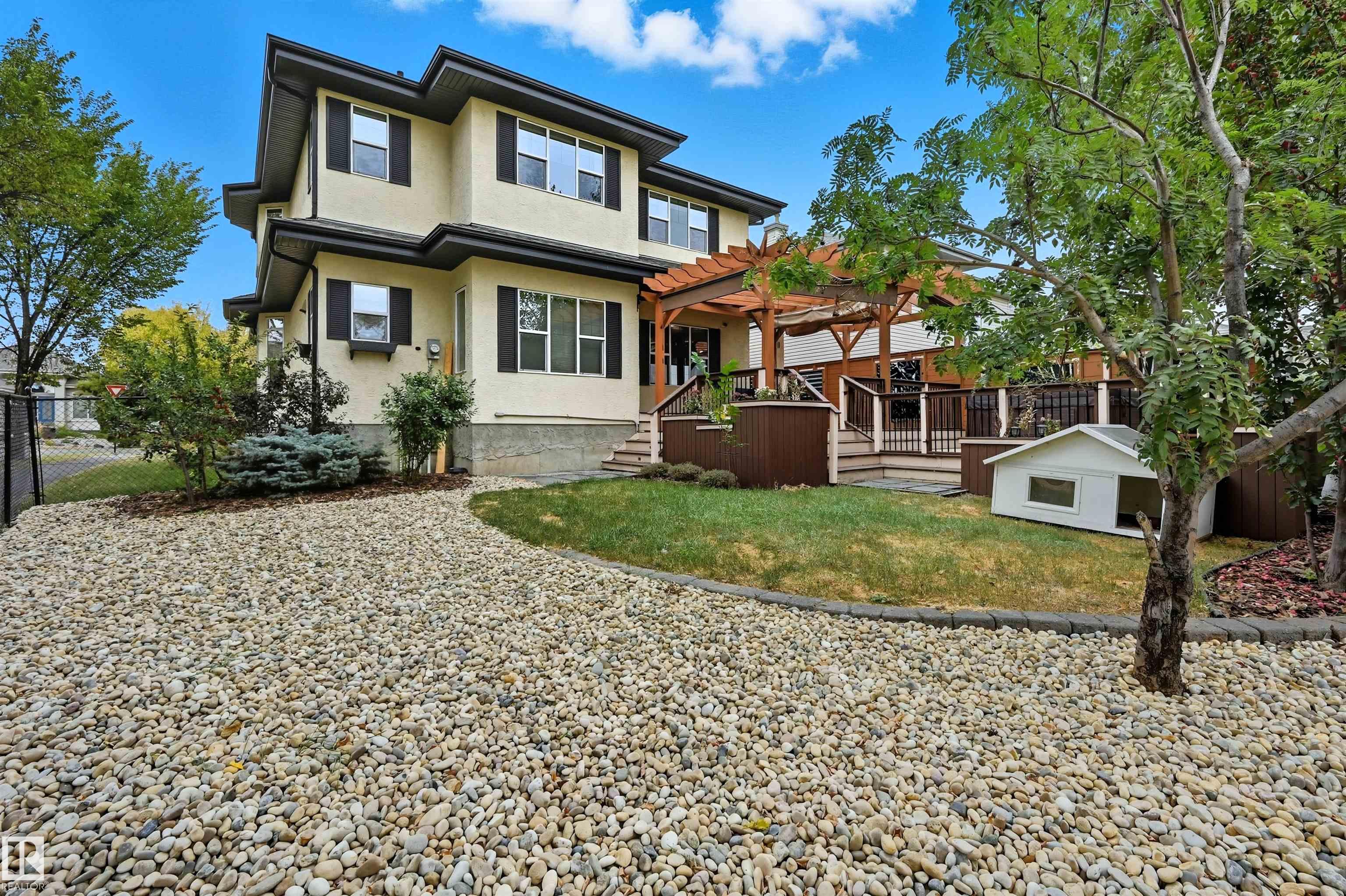 Spacious corner lot nestled in desirable Hodgson across from Hodgson Wetland Park & steps to Whitemud Creek Ravine. Past the cozy porch find a vaulted foyer with plenty of natural light & large office (or bdrm) off entrance. Open concept kitchen w/ stainles steel appliances (Kitchen Aid wall oven/Dacor stove), dining nook & living room w/ gas fireplace. Main level complete w/ 3PC BTHRM, spacious mudrm w/ laundry. Upstairs has a huge bonus room, 2 spare bedrooms & spacious primary retreat w/ ensuite & walk-in closet. Basement finished w/ 4th bdrm, full bthrm, rec space & flex area. This corner lot offers partial park views from the yard + has plenty of deck space to enjoy w/ pergola & hot tub. Features: 9' ceiling, hot water on demand, AC, SIDE ENTRANCE. Great school designations & proximity to Hodgson Park & ravine walking trails. Terwillegar Rec Centre, transit & easy access to major arteries. Plus shopping & dining at nearby neighborhood squares!