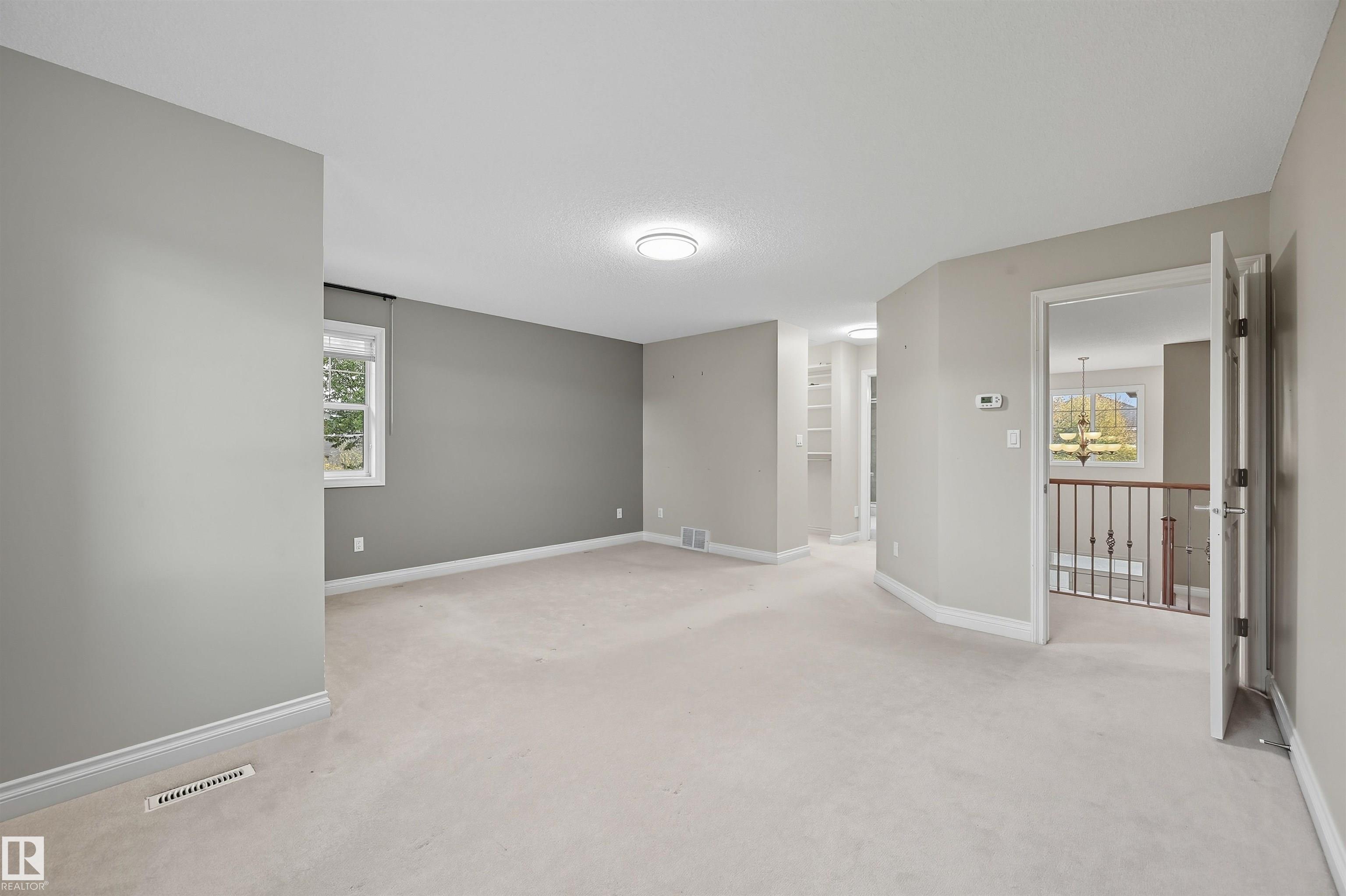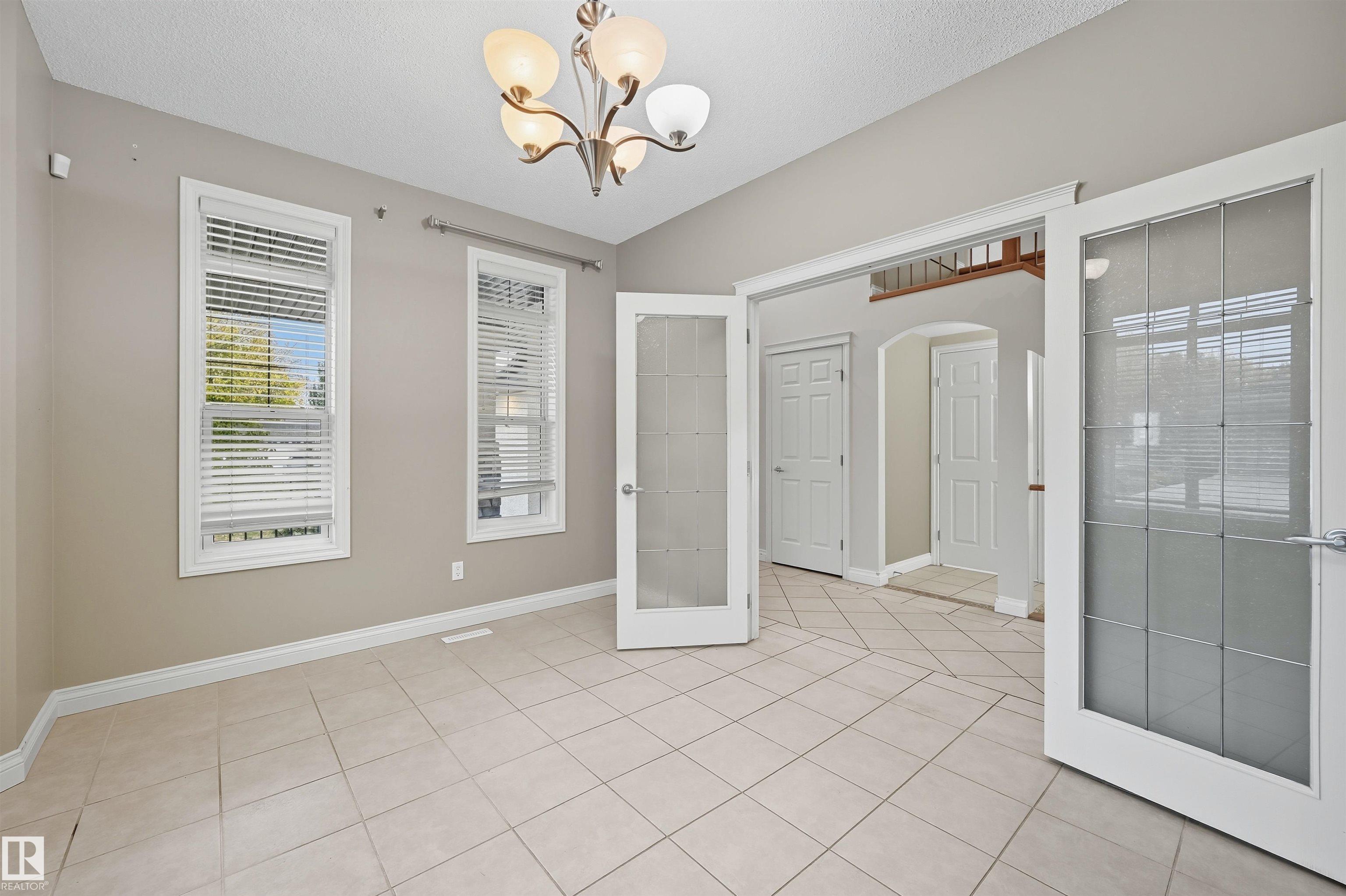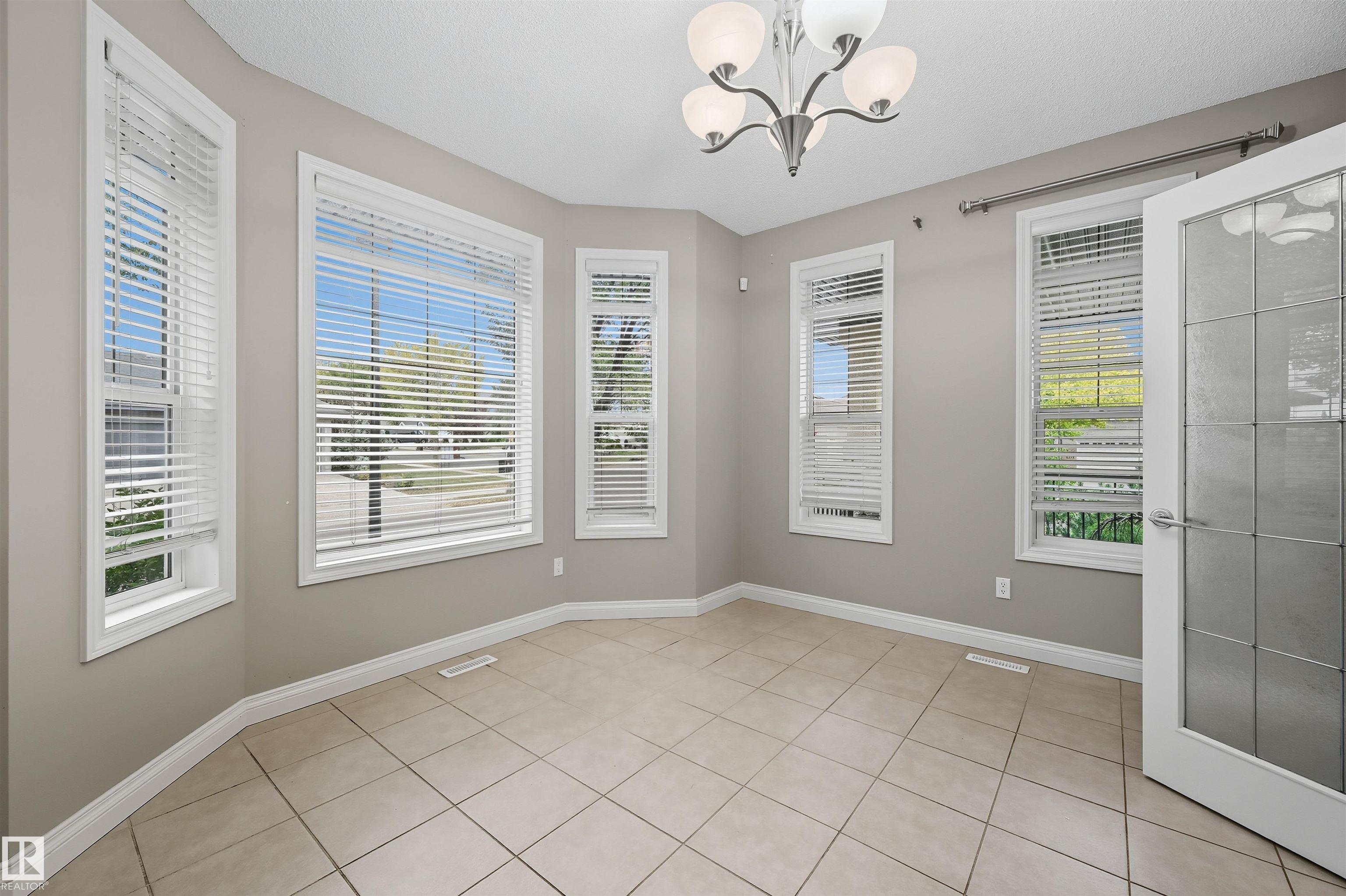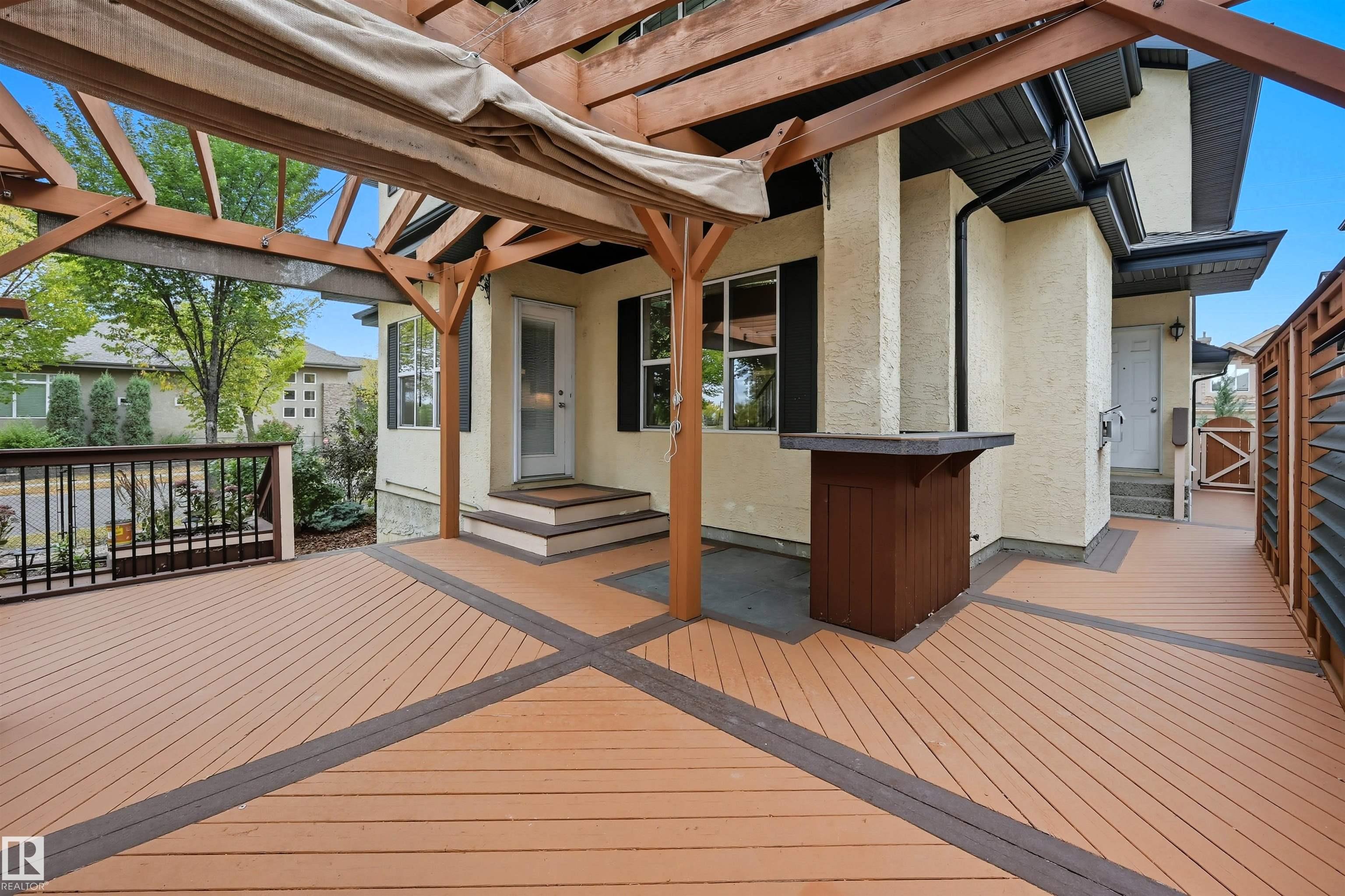 Spacious corner lot nestled in desirable Hodgson across from Hodgson Wetland Park & steps to Whitemud Creek Ravine. Past the cozy porch find a vaulted foyer with plenty of natural light & large office (or bdrm) off entrance. Open concept kitchen w/ stainles steel appliances (Kitchen Aid wall oven/Dacor stove), dining nook & living room w/ gas fireplace. Main level complete w/ 3PC BTHRM, spacious mudrm w/ laundry. Upstairs has a huge bonus room, 2 spare bedrooms & spacious primary retreat w/ ensuite & walk-in closet. Basement finished w/ 4th bdrm, full bthrm, rec space & flex area. This corner lot offers partial park views from the yard + has plenty of deck space to enjoy w/ pergola & hot tub. Features: 9' ceiling, hot water on demand, AC, SIDE ENTRANCE. Great school designations & proximity to Hodgson Park & ravine walking trails. Terwillegar Rec Centre, transit & easy access to major arteries. Plus shopping & dining at nearby neighborhood squares!