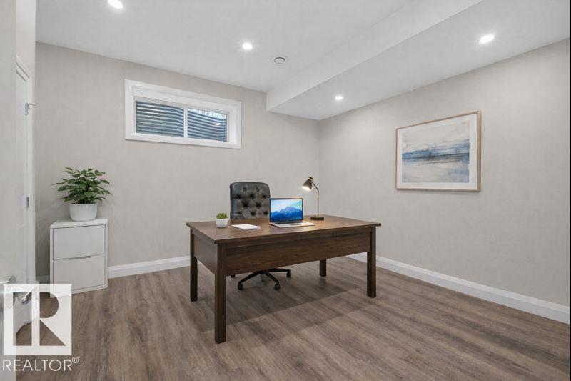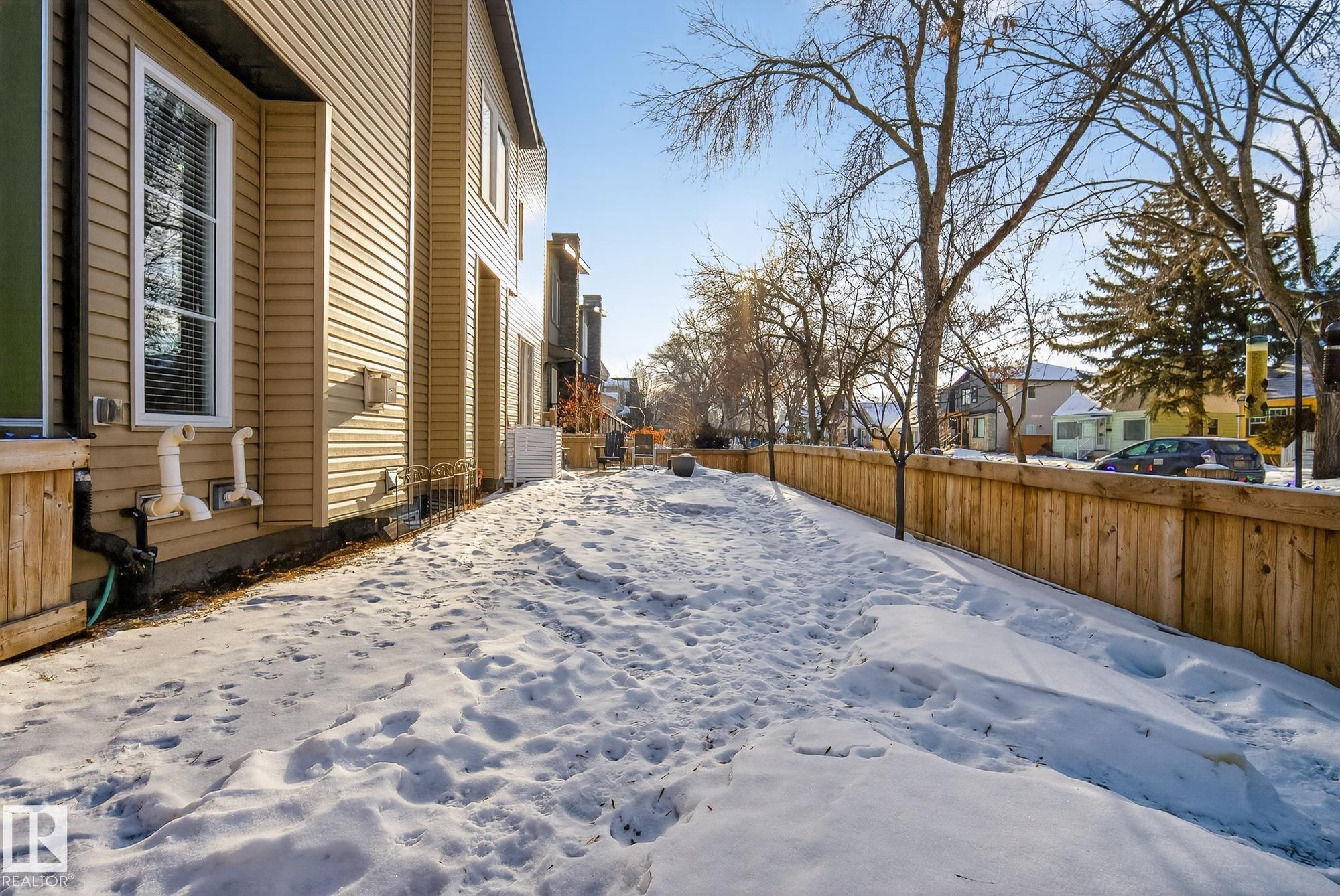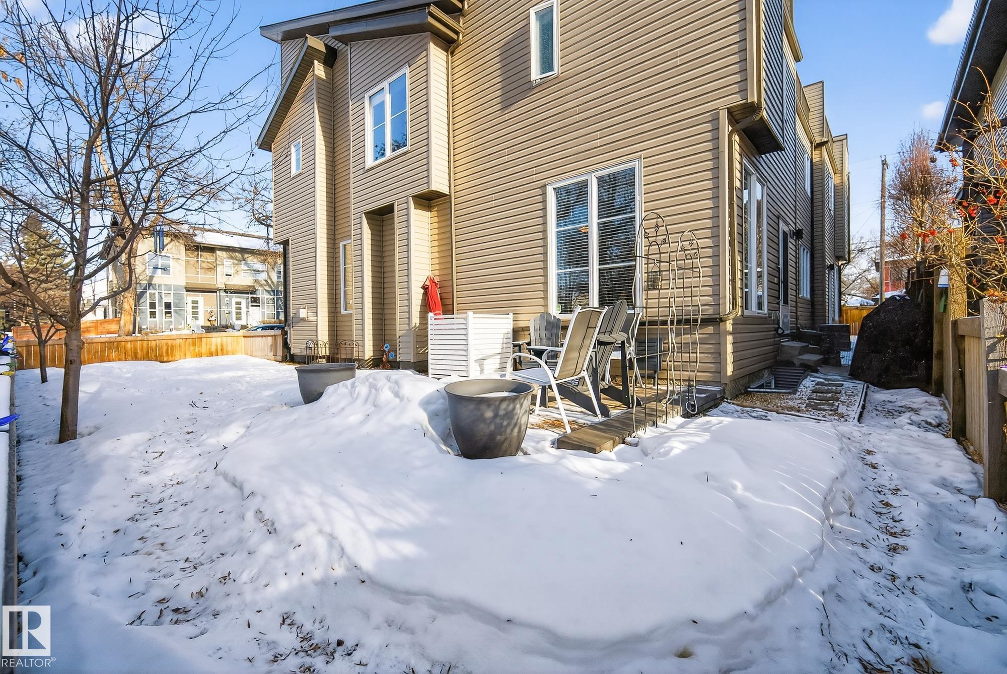 Stylish 2015-built corner unit of triplex in sought-after Bonnie Doon- just steps to Mill Creek Ravine?s scenic walking & biking trails. This bright 3-bedroom home offers an open-concept main floor w/chef-inspired kitchen featuring abundant cabinetry, generous counter space & a large island- perfect for gathering. The spacious dining area fits a full family table, while the inviting living room is anchored by a cozy gas fireplace. Upstairs you?ll find 3 good-sized bedrooms including a spacious primary retreat with a beautiful 3pc ensuite & upgraded closet by California Closets. A upstairs laundry completes the 2nd floor. ROOF TOP PATIO is your private oasis after a busy day or a place for gardening. Downstairs has 9ft ceilings & is fully finished (2020) with rumpus room, storage, 4pc bath & flex room. CENTRAL AC for warm summer days! Outside, you will love the sunny yard with an exclusive use patio overlooking the tree lined streets. Easy access to the single detached garage. Welcome home!