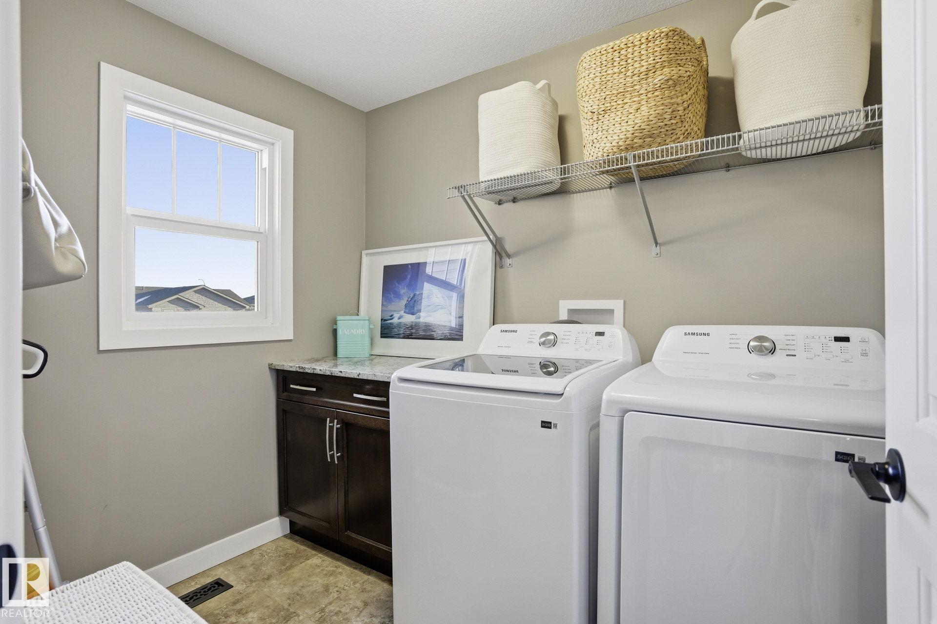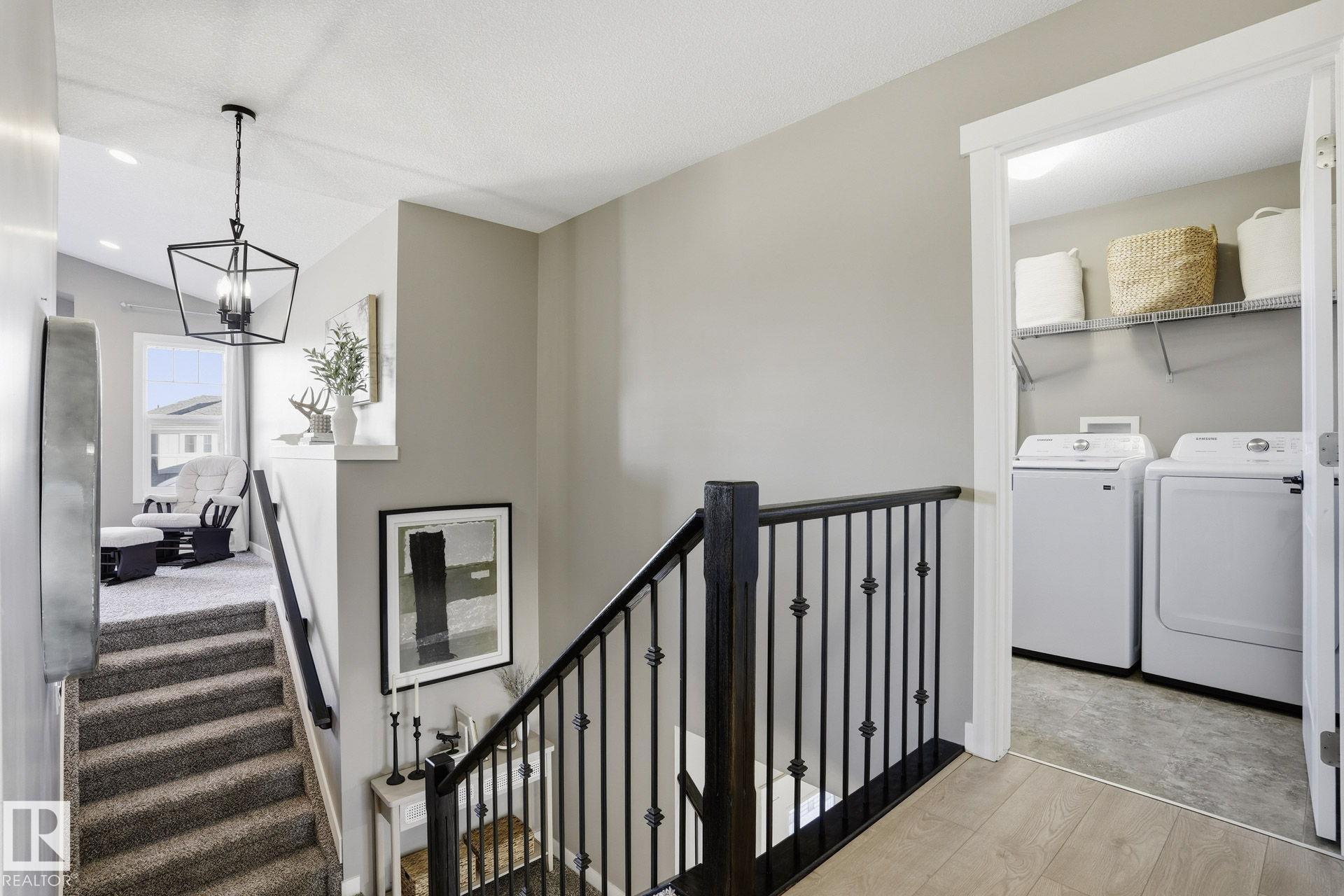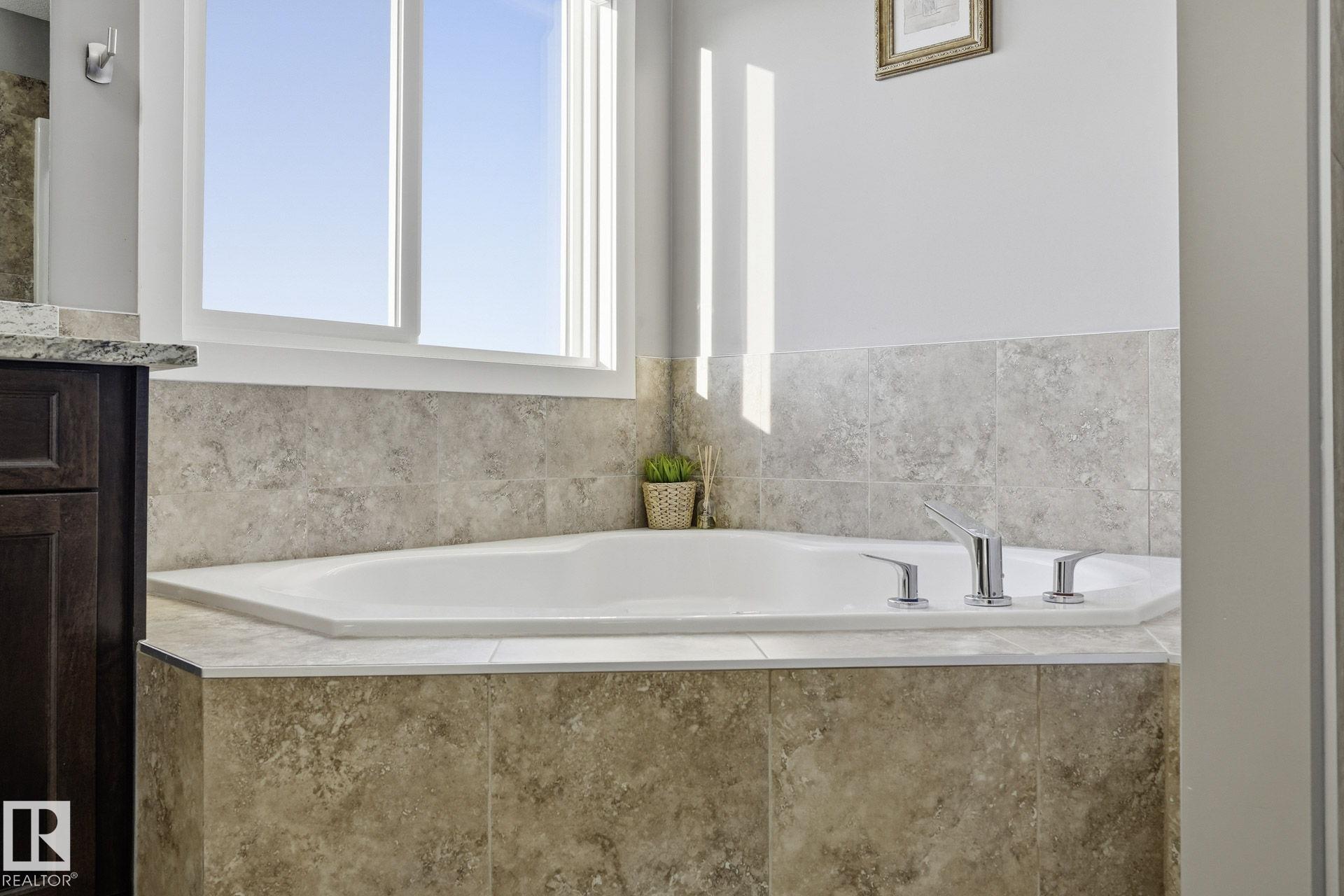 Very seldom do homes like this resale in this area that back onto the GREEN SPACE & POND w/ WALKING TRAILS. Welcome to this beautiful 2 sty home perfect for your family. Over 2000 ft.˛ boasts plenty of room for everyone. On the Top Floor, there's a BONUS ROOM w/ a vaulted ceiling, a Full Sized Laundry Room, 3 bedrooms & a full bath. The Primary Bedroom is inviting & comes w/ a 5 piece en suite; + it has a wonderful West Facing View. On the main floor; there's an open concept kitchen + Walk Through Pantry, a very spacious living room & dining area. Also a lovely half bath on the main floor. The Heated OVERSIZED Double Car Garage (22'x25') & a 23' W x 28"L driveway can accommodate 3 cars / RV PARKING; + the Garage Door is BRAND NEW! PLUS AC!!! The Massive Back Deck faces West, perfect for evening sun & + a large backyard w/ a gate to the walking trail. This is a must see property. The basement is undeveloped & the LOT is big at 4,932 Sq Ft.