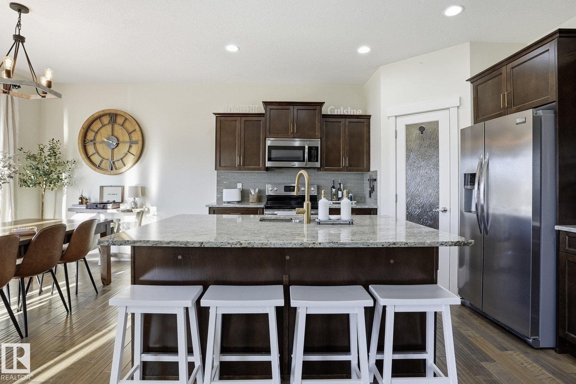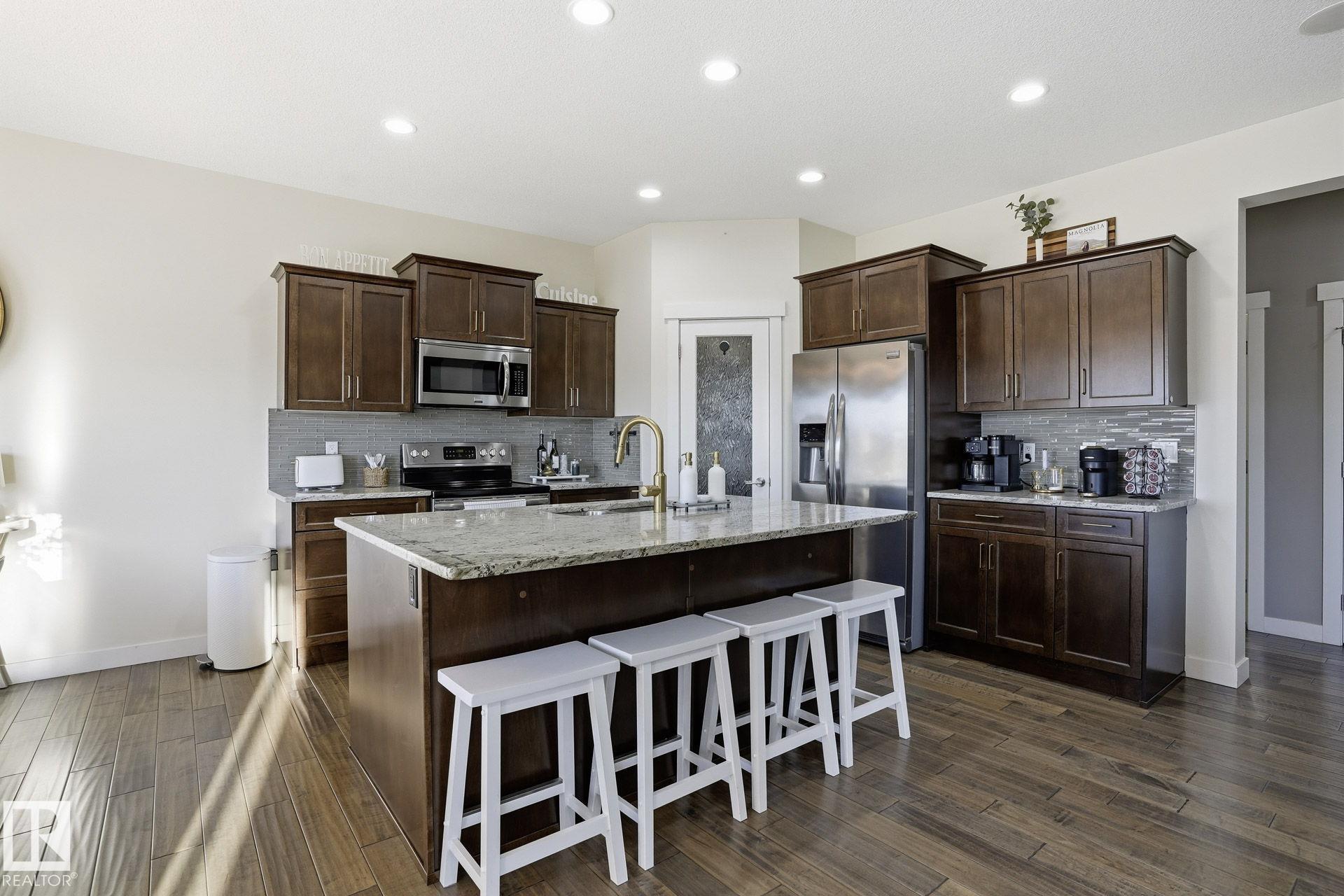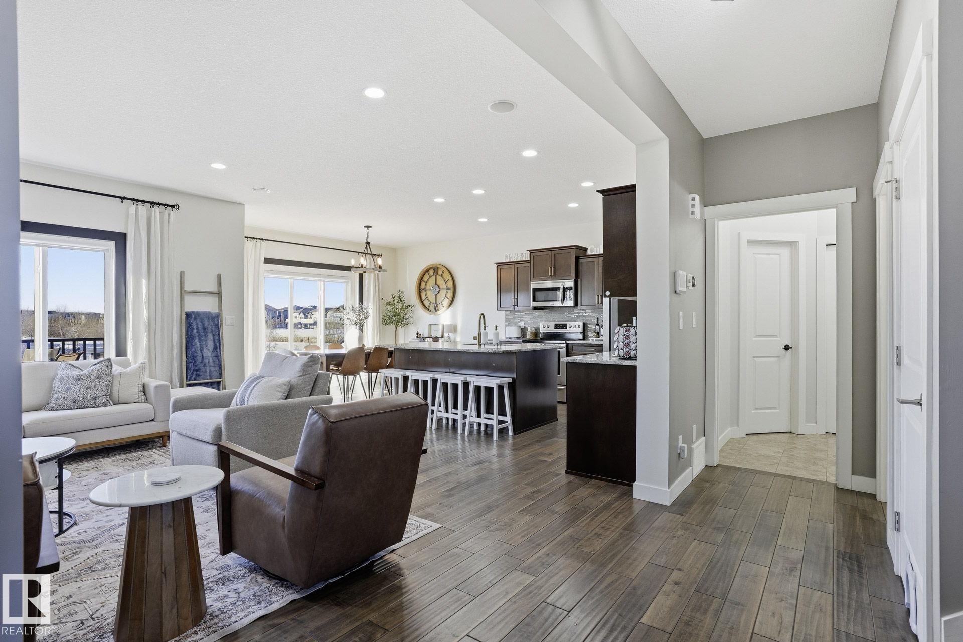 Very seldom do homes like this resale in this area that back onto the GREEN SPACE & POND w/ WALKING TRAILS. Welcome to this beautiful 2 sty home perfect for your family. Over 2000 ft.˛ boasts plenty of room for everyone. On the Top Floor, there's a BONUS ROOM w/ a vaulted ceiling, a Full Sized Laundry Room, 3 bedrooms & a full bath. The Primary Bedroom is inviting & comes w/ a 5 piece en suite; + it has a wonderful West Facing View. On the main floor; there's an open concept kitchen + Walk Through Pantry, a very spacious living room & dining area. Also a lovely half bath on the main floor. The Heated OVERSIZED Double Car Garage (22'x25') & a 23' W x 28"L driveway can accommodate 3 cars / RV PARKING; + the Garage Door is BRAND NEW! PLUS AC!!! The Massive Back Deck faces West, perfect for evening sun & + a large backyard w/ a gate to the walking trail. This is a must see property. The basement is undeveloped & the LOT is big at 4,932 Sq Ft.