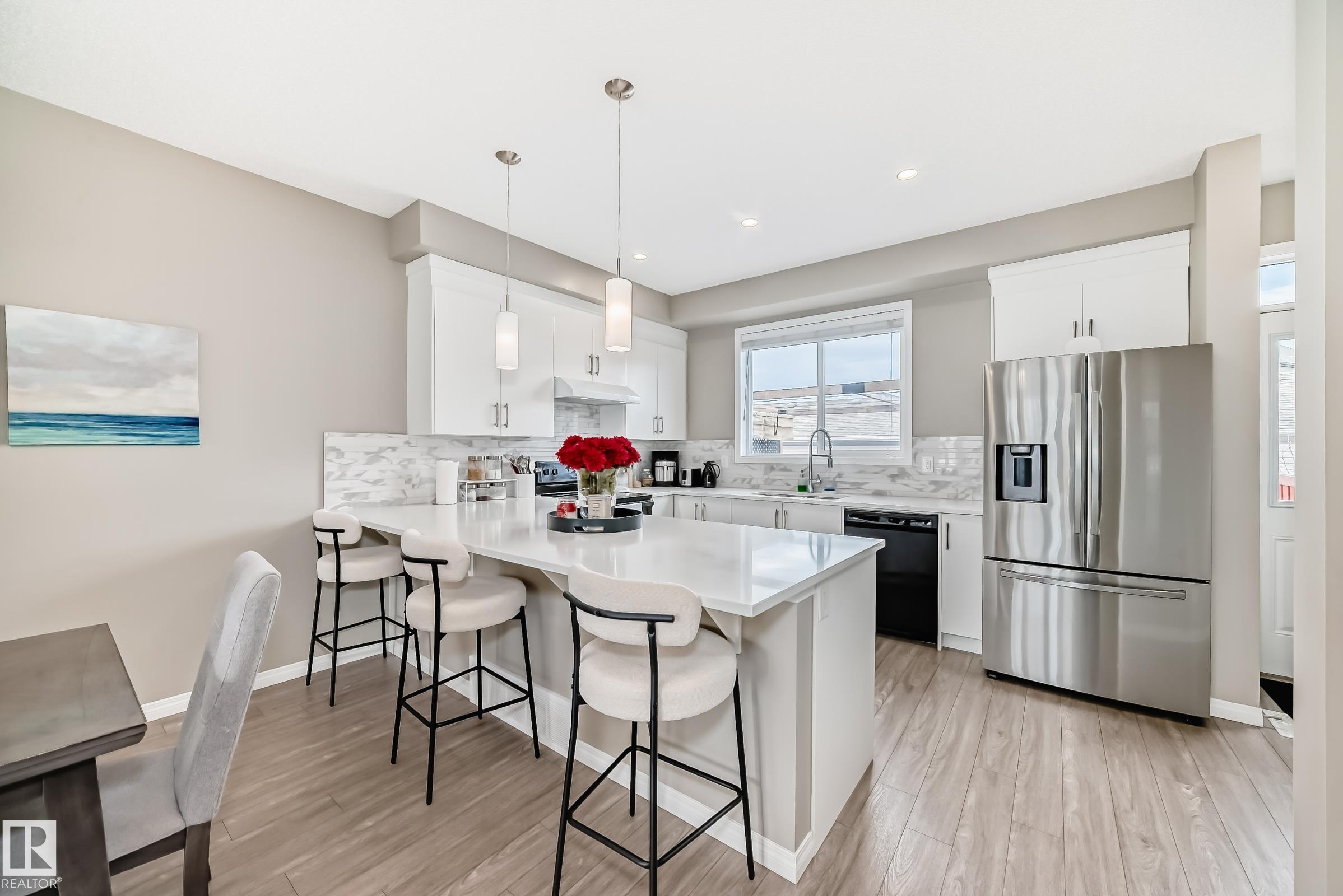 Step into style and value in one of Edmonton's hottest communities. This bright and beautifully finished 3 bedroom 2.5 bath home in Chappelle checks all the boxes with ZERO CONDO FEES. Enjoy an open concept main floor with 9 ft ceilings and a kitchen that is built to impress. You will find luxury vinyl plank flooring and quartz countertops throughout the home for a clean modern feel. Upstairs offers a spacious primary suite with walk in closet and private ensuite plus two more well sized bedrooms. Out back, relax under your retractable awning on a sunny deck and enjoy the convenience of a full double detached garage. Located near schools, shopping, parks, and everyday amenities. This stand out home is a must see.