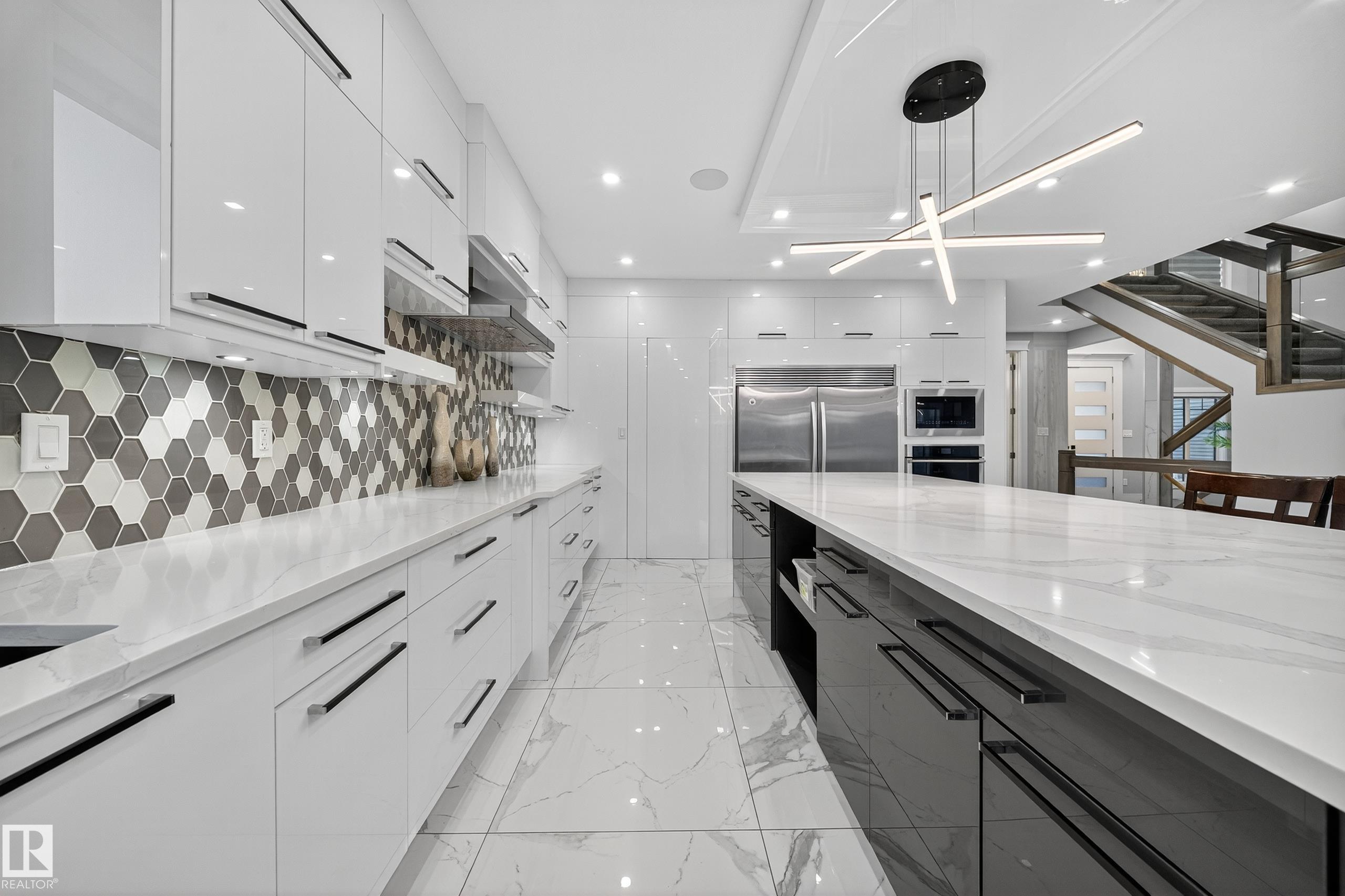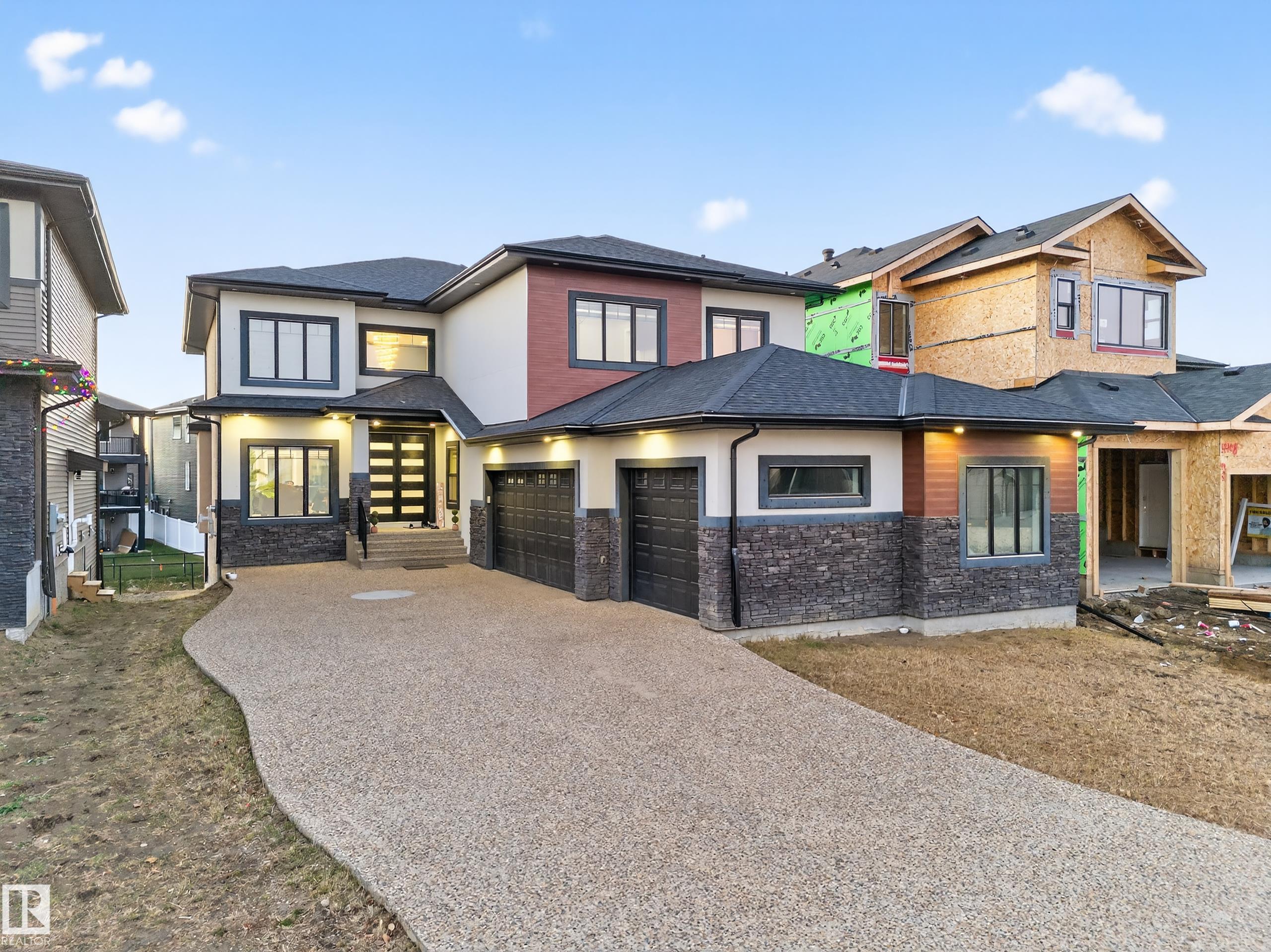 Experience modern luxury and versatility in this immaculate 3300+ SqFt walkout home. Located in a quiet cul-de-sac, it features an open-to-above design, chef's kitchen, spice kitchen, two balconies, and two master suites (four full baths total). The walkout basement provides fantastic potential for two separate legal suites. Includes a triple-car garage and ample parking on a decorative concrete-chipped driveway. High-end finishes and excellent location near schools and shopping.