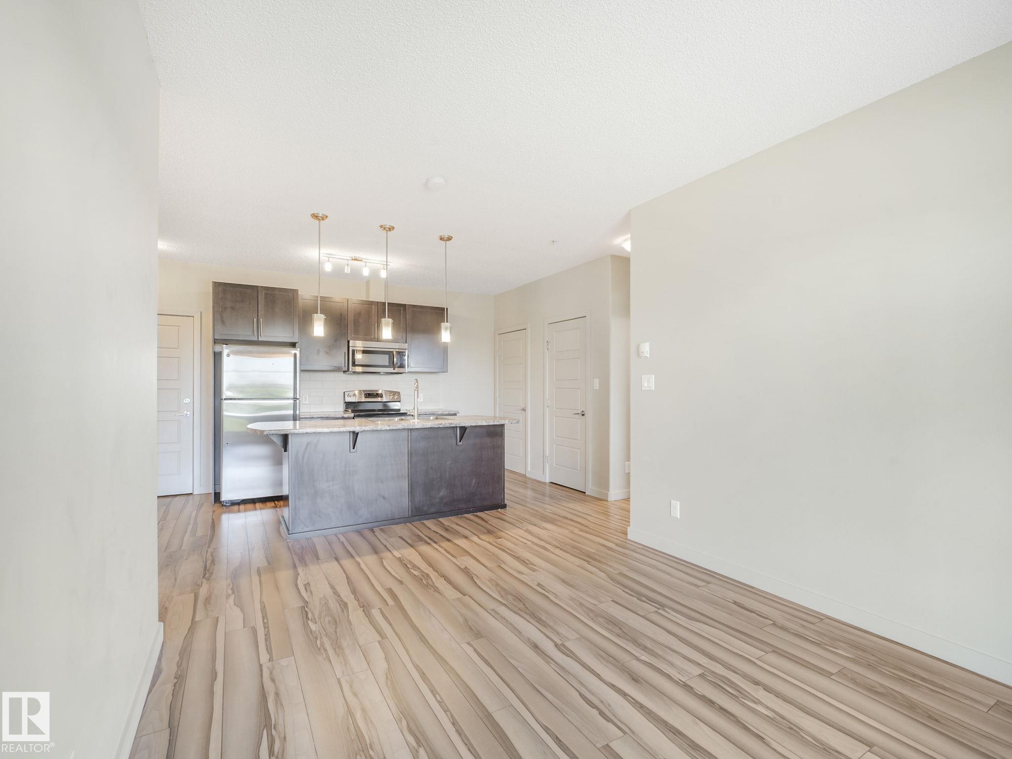 Your Home2Love in Allard is ready for you! This bright and spacious 2 bedroom, 2 bathroom condo offers the perfect combination of comfort and convenience. The open-concept design is highlighted by 9 ft ceilings, large windows, and modern finishes throughout. You?ll love the convenience of in-suite laundry, 2 parking stalls (1 underground & 1 right next to the front entrance), and low condo fees in this pet-friendly building. The well-appointed kitchen flows seamlessly into the living and dining areas, creating the perfect space for entertaining. The primary suite features a walk-through double closet and private ensuite, while the second bedroom and full bath are ideal for guests, roommates, or a home office. Building amenities include a fitness room and a social lounge with billiards table, giving you extra space to relax or connect with friends. Situated in a highly desirable location, you?re just minutes from schools, shopping centres, Blackmud Creek Ravine, and quick access to the Anthony Henday.