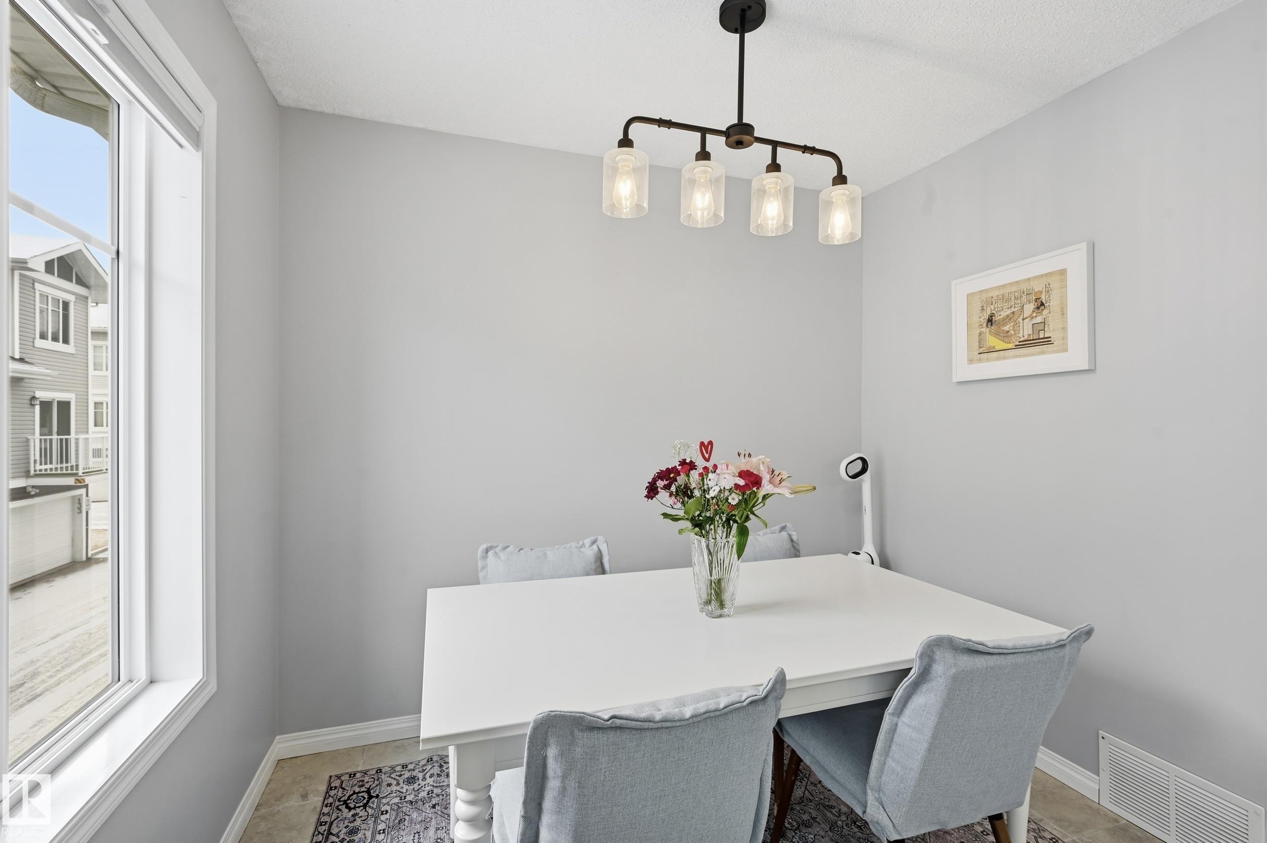 LOW CONDO FEE & DOUBLE ATTACHED GARAGE! Nestled in desirable Chappelle Gardens, this beautiful 3 bedroom and 2.5 bathroom townhome is in SHOWHOME CONDITION offering both style and convenience. Open concept main floor welcomes you with 9ft ceiling and large windows throughout. You will enjoy the spacious living area that flows effortlessly into the beautifully designed kitchen complete with NEW light fixtures, NEWER stainless steel appliances & ample counter space. Spacious dining area, FULLY REMODELLED half bath & large patio complete the main floor. Retreat to the upper level where the primary bedroom offers a private 3 piece ensuite with large closet, two additional bedrooms & 4 piece bathroom. Enjoy your laundry on the 2nd level with garage access, and additional storage. PET FRIENDLY complex with easy access to a wealth of amenities, including parks, ponds, rec centre, shopping, restaurants, & schools. Minutes off the Henday & close to Edmonton International airport. Shows 10/10!