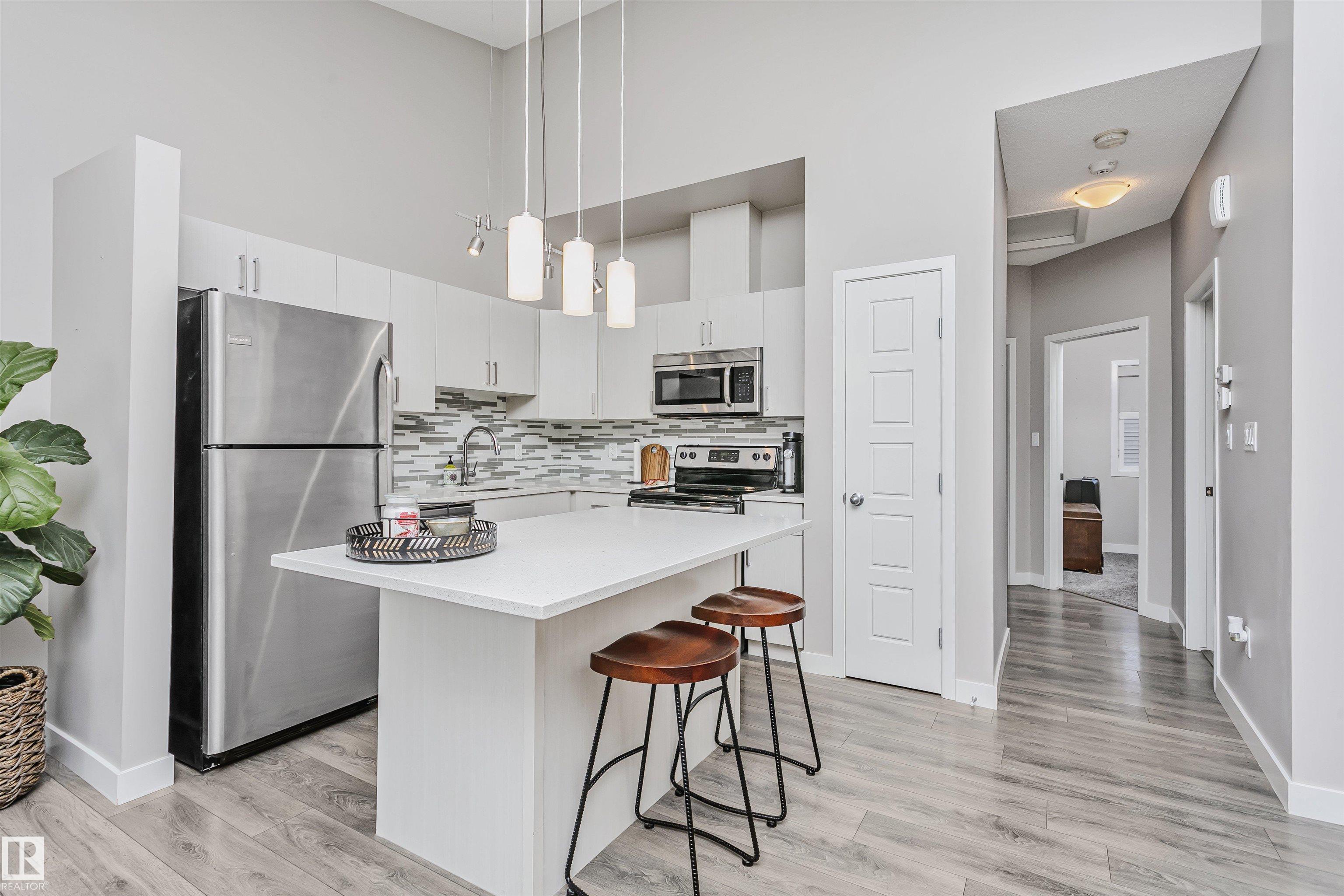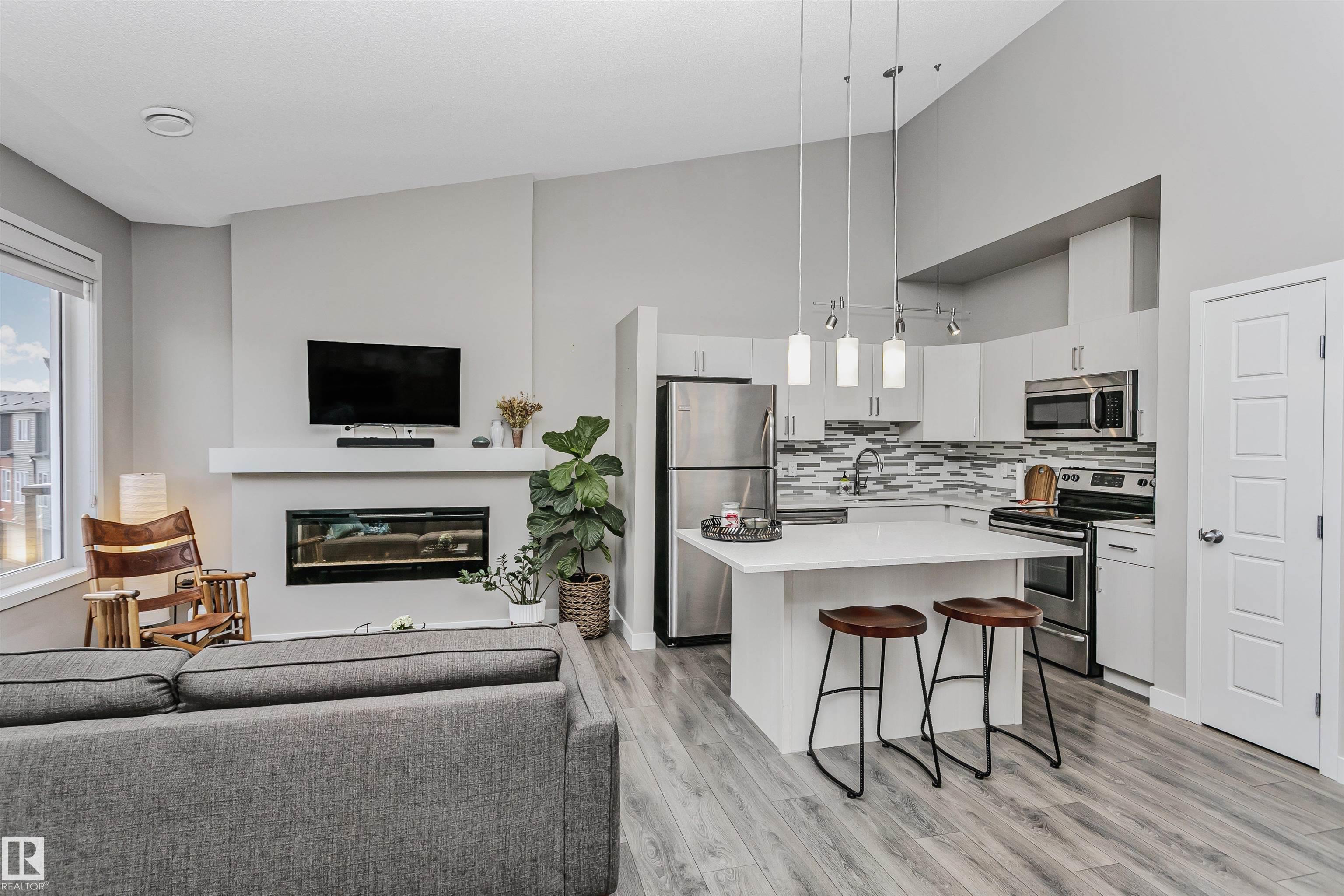 Welcome to this beautifully designed modern bungalow townhouse in the highly desirable community of Paisley. Offering style, comfort & convenience, this inviting 2-bedroom home is perfect for first-time buyers, downsizers or savvy investors. Step inside to discover a stunning kitchen featuring granite countertops, a spacious island with breakfast bar, sleek stainless steel appliances, & a timeless tile backsplash. The open-concept layout flows effortlessly into the bright living room, where a cozy electric fireplace creates the perfect ambiance for relaxing evenings or entertaining guests. Enjoy your morning coffee or host summer gatherings on your private deck overlooking a fully landscaped courtyard. ?The Canvas? is nestled in an incredible neighbourhood surrounded by scenic walking paths, serene water features, ravine views & expansive green spaces. Best of all, enjoy the benefit of NO HOA FEES. For golf enthusiasts, Jagare Ridge Golf Course is just steps away! Welcome Home!