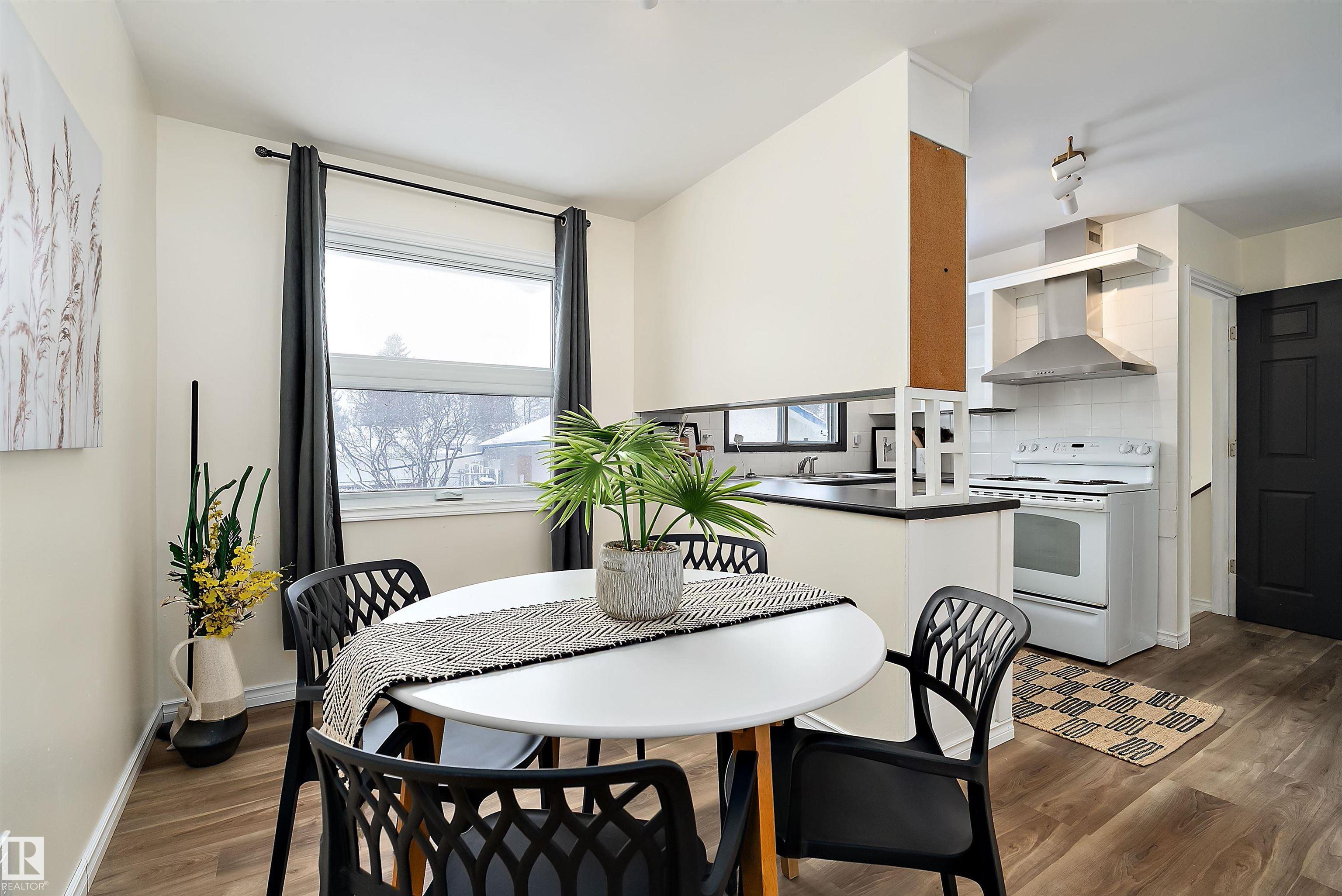 Welcome to this clean, move-in ready 4-bedroom bungalow in established Rundle Heights ? steps from the North Saskatchewan River Valley and the vibrant Rundle Park area. The main floor offers 3 bedrooms, 2 full baths and a bright open living/dining layout anchored by a functional kitchen designed for everyday comfort and connection. The finished basement adds exceptional flexibility with a spacious rec room, 4th bedroom, full bath, second kitchen and separate entrance ? ideal for extended family, shared living or future income potential. Outside, enjoy a double detached garage and a fenced yard with space to relax, garden or host gatherings. Located directly across from St. Jerome Catholic School and close to additional schools, greenspace, trails, recreation and key commuter routes, this home delivers practical layout, lifestyle access and long-term value in one of northeast Edmonton?s most established neighbourhood settings.