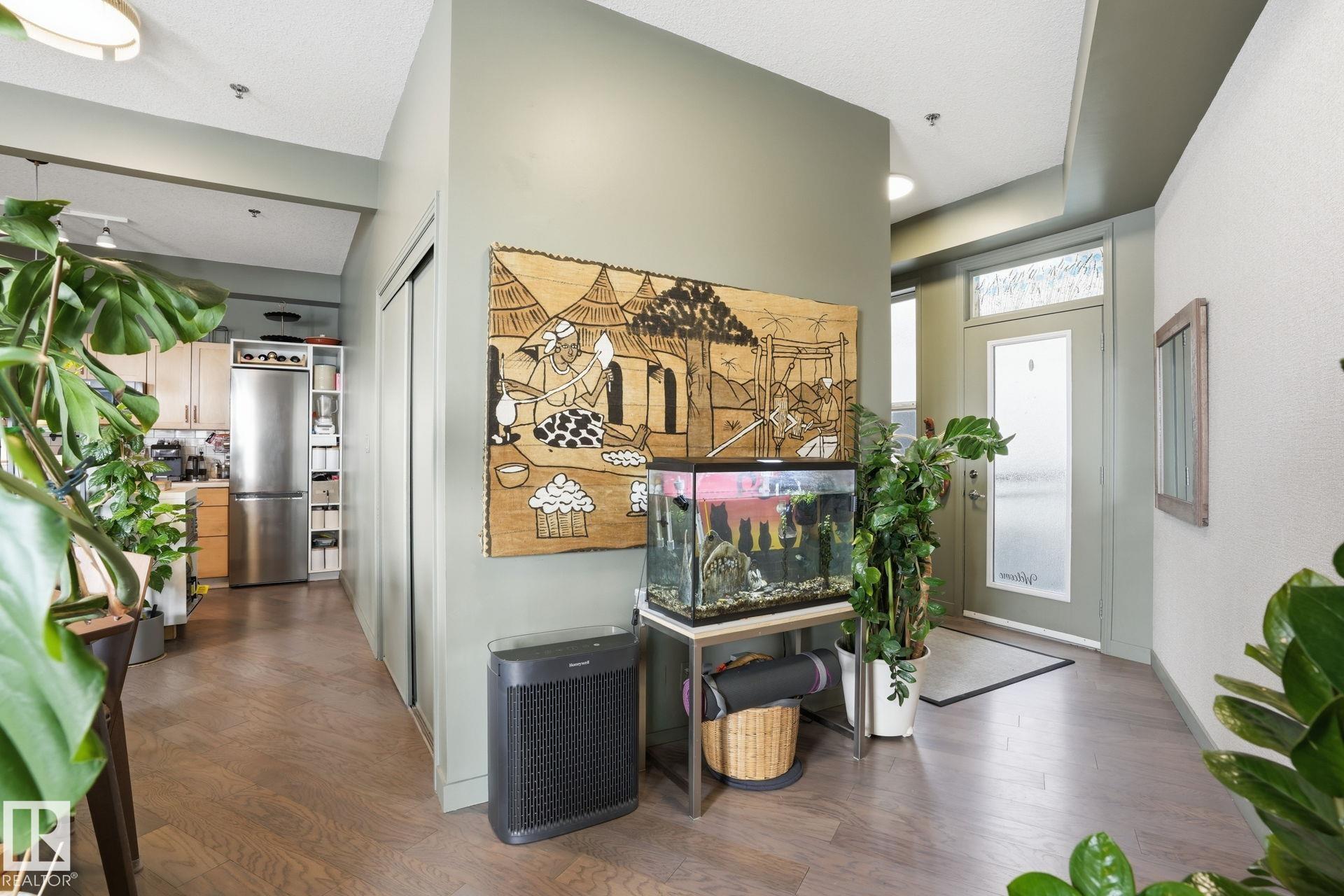 Enjoy this beautifully renovated condo in desirable South Edmonton, ideally located just off Calgary Trail and minutes to the Whitemud Drive for effortless commuting. Situated close to Southgate Centre, you?ll enjoy unbeatable access to shopping, restaurants, grocery stores, and every amenity you could need. Step inside to a stunning open concept layout filled with a ton of natural light. The bright and inviting living space features a custom built electric fireplace, creating the perfect focal point for relaxing or entertaining. The fully updated kitchen boasts new countertops, and stainless steel appliances. Engineered hardwood flooring flows seamlessly throughout the entire unit, adding warmth and elegance. The fully renovated bathroom showcases ceramic tile, a sleek single-sink vanity, a smart toilet, and an impressive rainfall shower with tile surround your own private spa experience at home. Enjoy your spacious south facing balcony along with a separate utility/storage room. Move in ready!