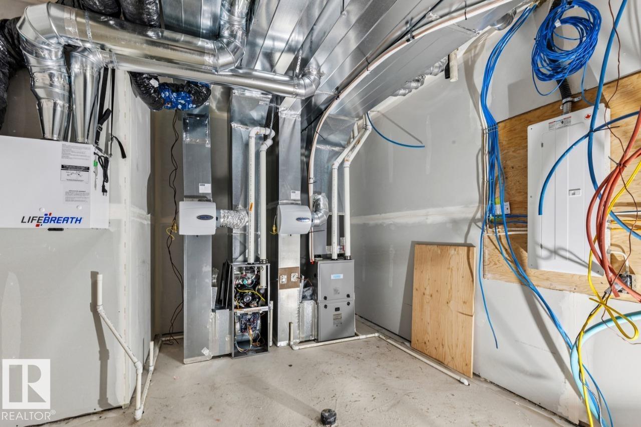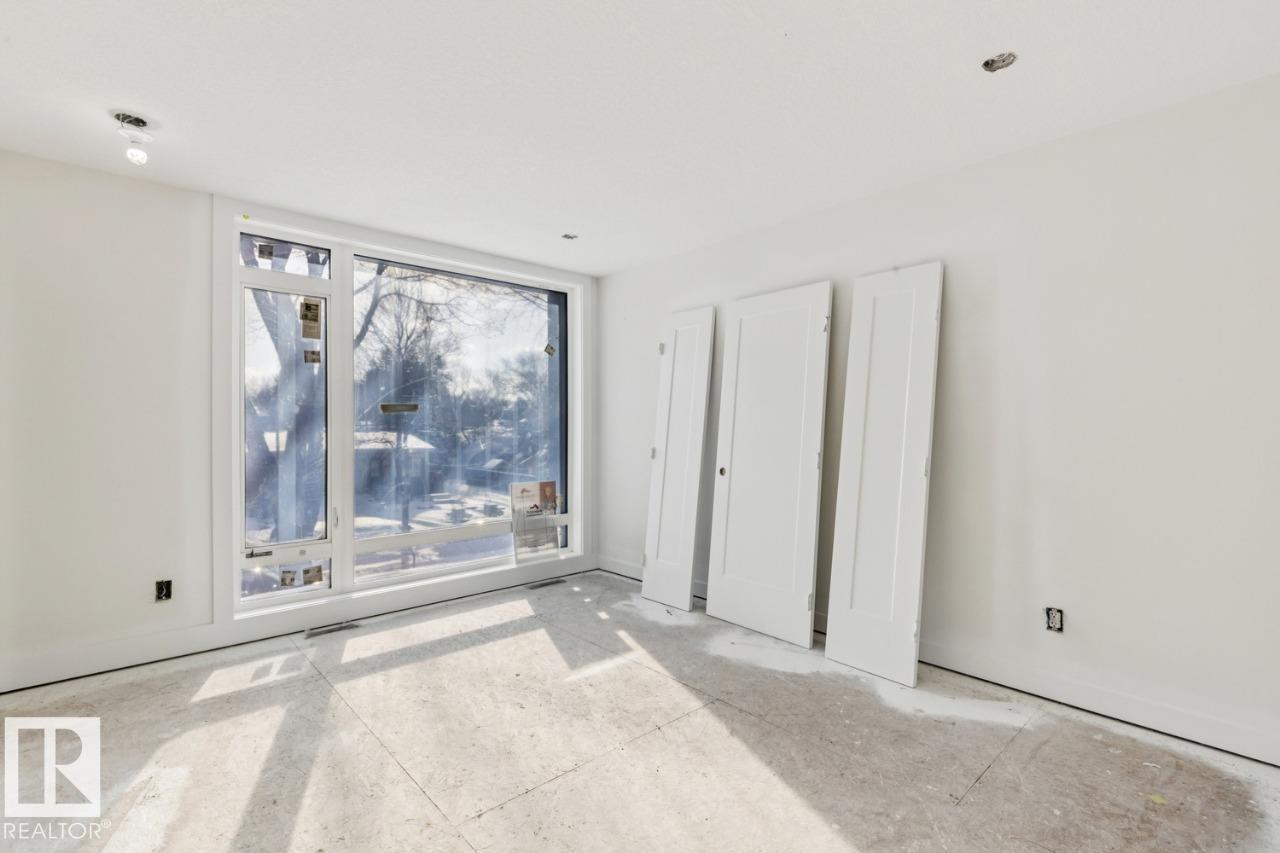 Thoughtfully designed one of a kind luxurious home in a highly desirable neighbourhood. Premium materials with meticulous construction, this unique two and a half storey home has been crafted with energy efficiency and the future in mind. Main floor features a Den/Office, half bathroom, and a custom kitchen with cabinetry designed for built in appliances. Second floor offers a primary bedroom with a luxurious ensuite and a large walk in closet with custom built-ins. Two additional bedrooms with walk in closets, a five piece main bathroom, large laundry room with cabinets with a sink. Fall in love with the third floor cathedral ceiling family room with access to your large Rooftop Patio with Downtown Skyline views. A half bathroom completes the third level. Basement is partially finished and roughed in for potential future development including a second furnace and HVAC, mechanical room drywalled, Framing and Plumbing drainage complete. Tankless water heater, 200A elect. service, landscaping and A.C incld.