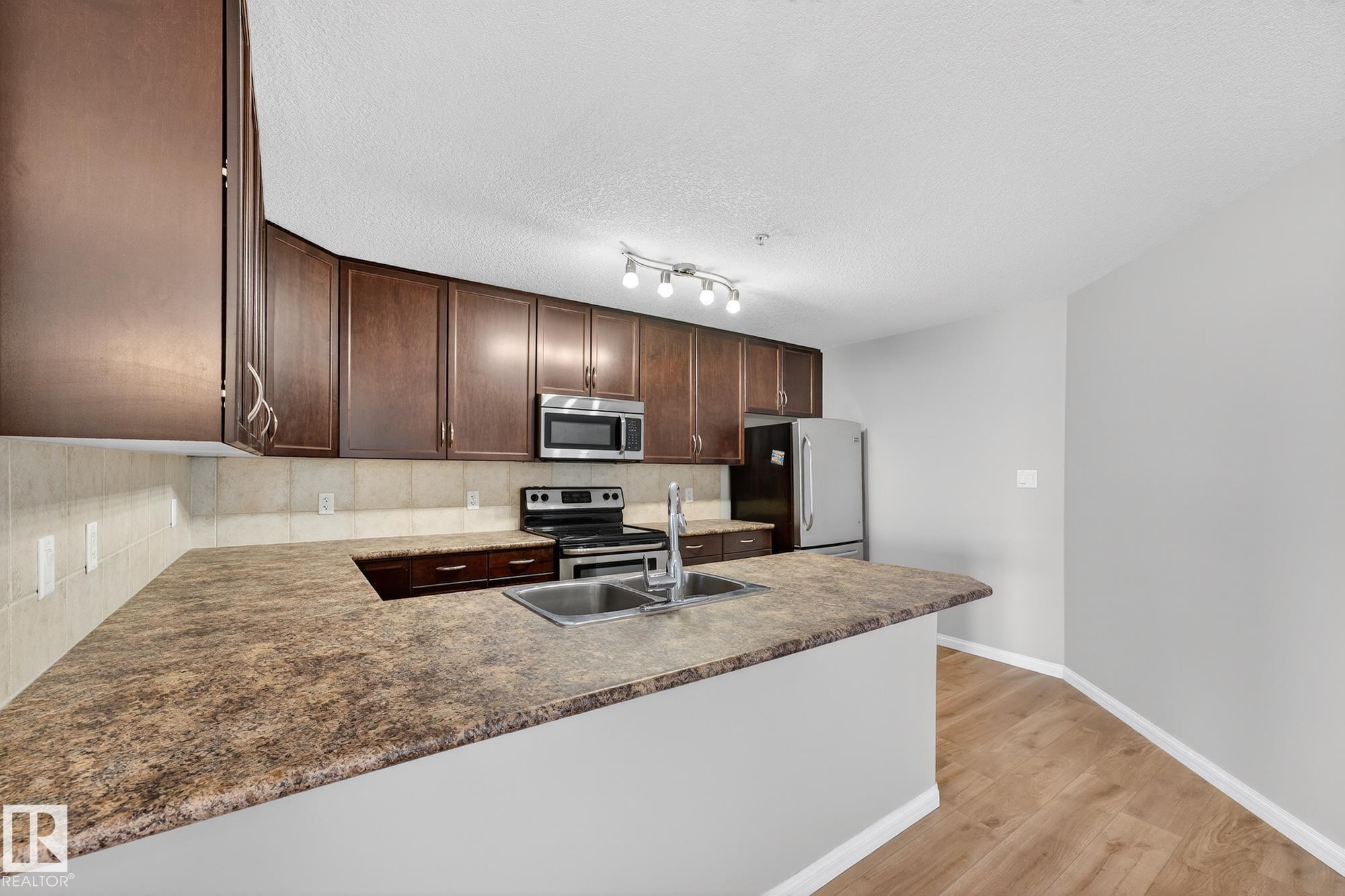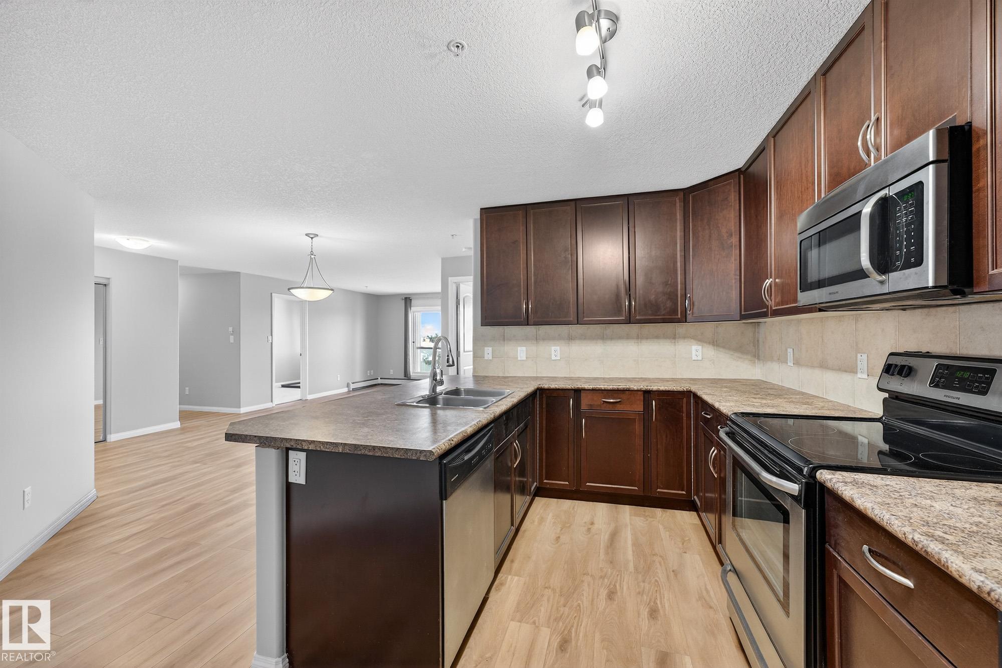 Welcome to Ospin Terrace! This impressive 3rd-floor condo offers over 1,216 sq. ft. of living space, making it one of the largest units in the building. Recently renovated with brand-new flooring and a fresh coat of paint throughout, this home is truly move-in ready. The open-concept layout features a large kitchen with an eating bar that flows into a bright and spacious living area, perfect for entertaining. The primary bedroom includes a walk-through closet and its own private ensuite. Enjoy the convenience of in-suite laundry with extra storage, a private balcony, and an assigned underground heated parking stall. Residents also have access to the building's fitness centre and social room. Located in the heart of South Terwillegar, you are minutes away from the Currents of Windermere, Terwillegar Rec Centre, and great schools, with quick access to the Anthony Henday and Whitemud Drive. Whether you are looking for more space or a maintenance-free lifestyle, this updated SW Edmonton home is a must-see!