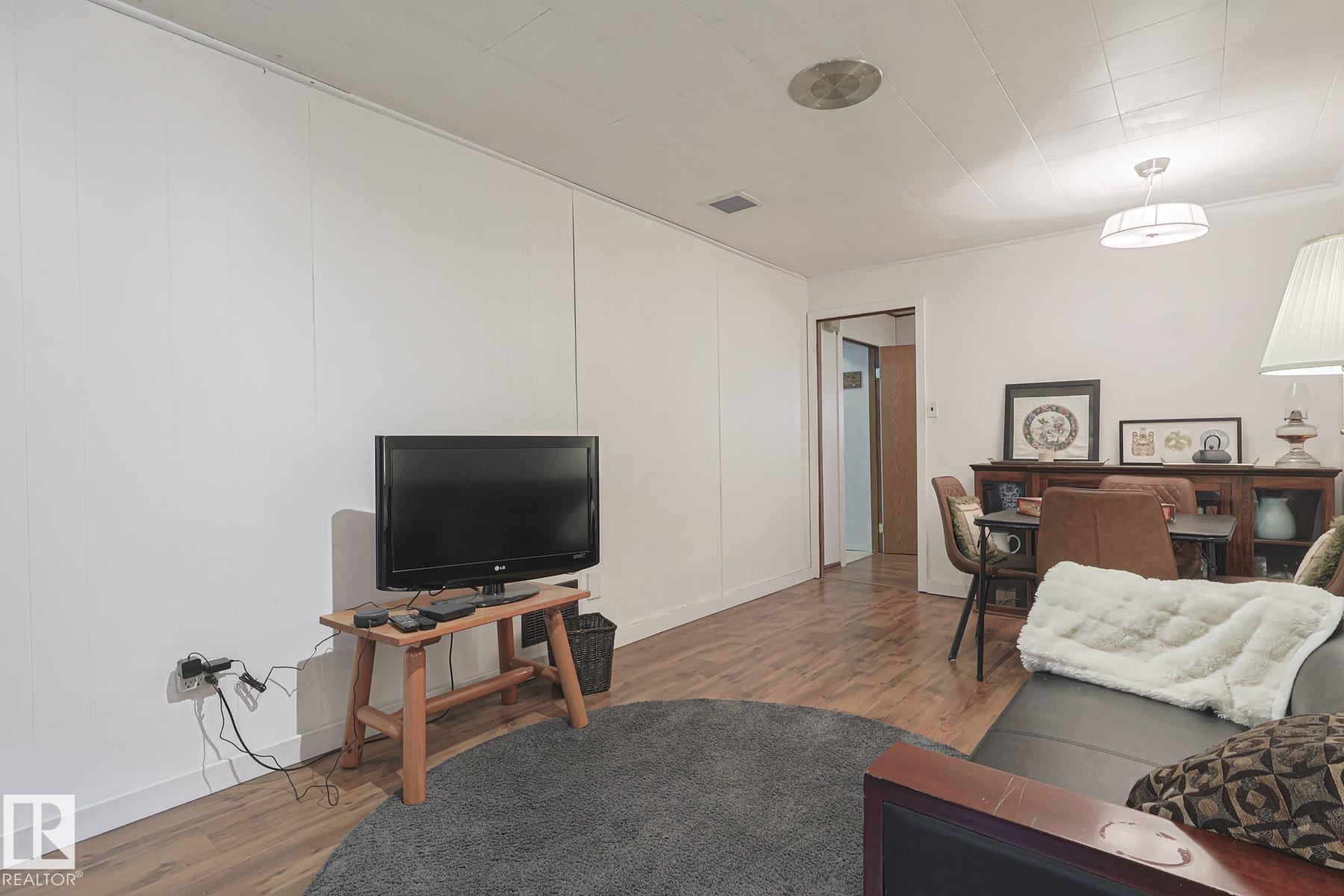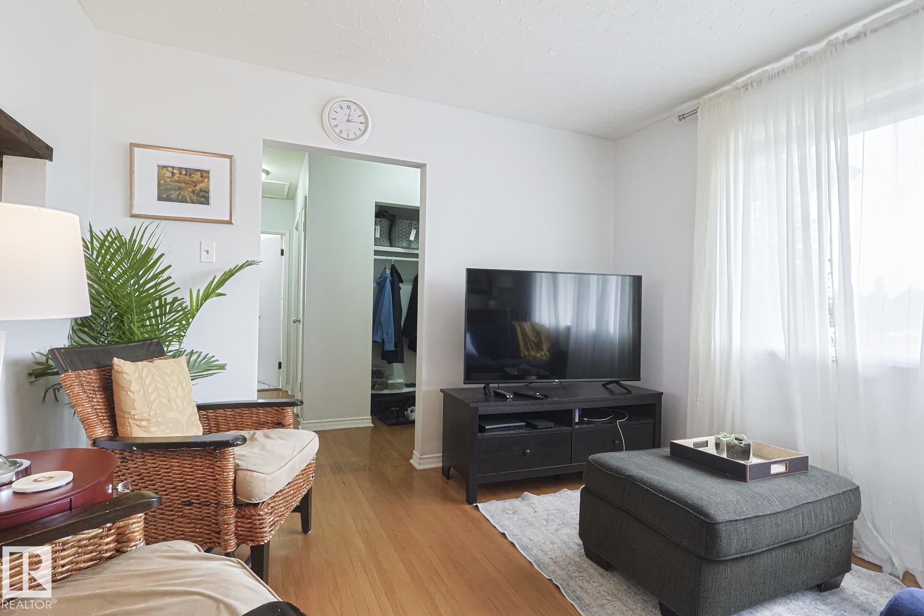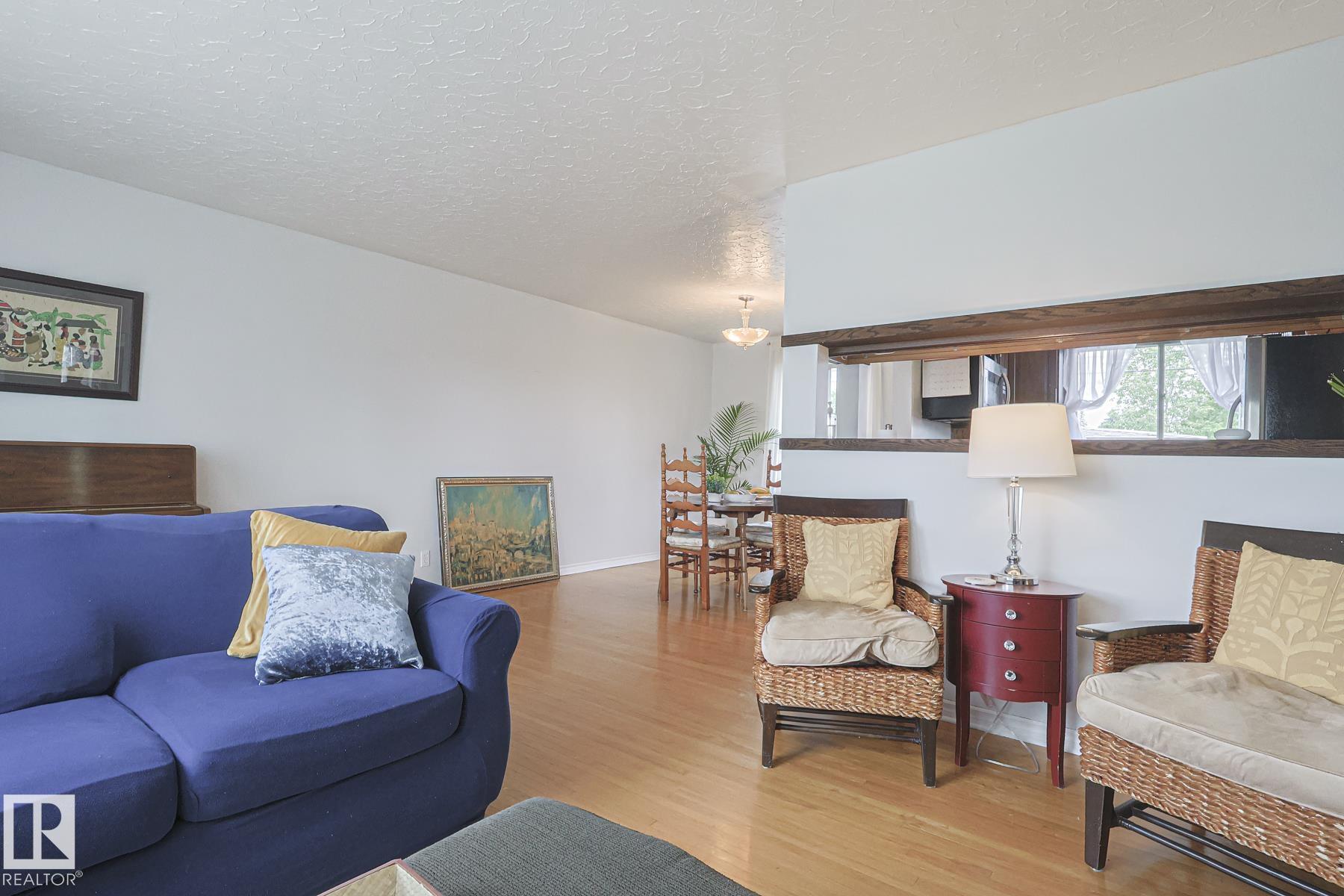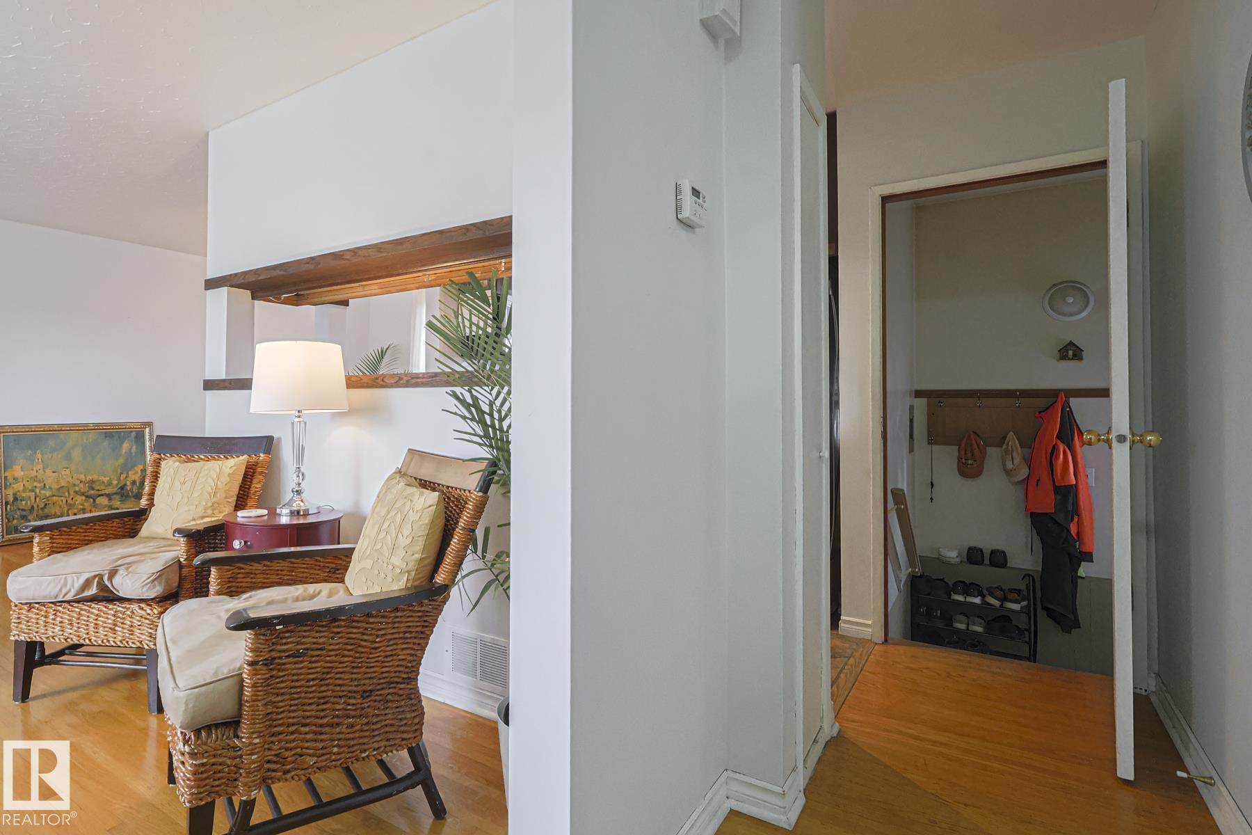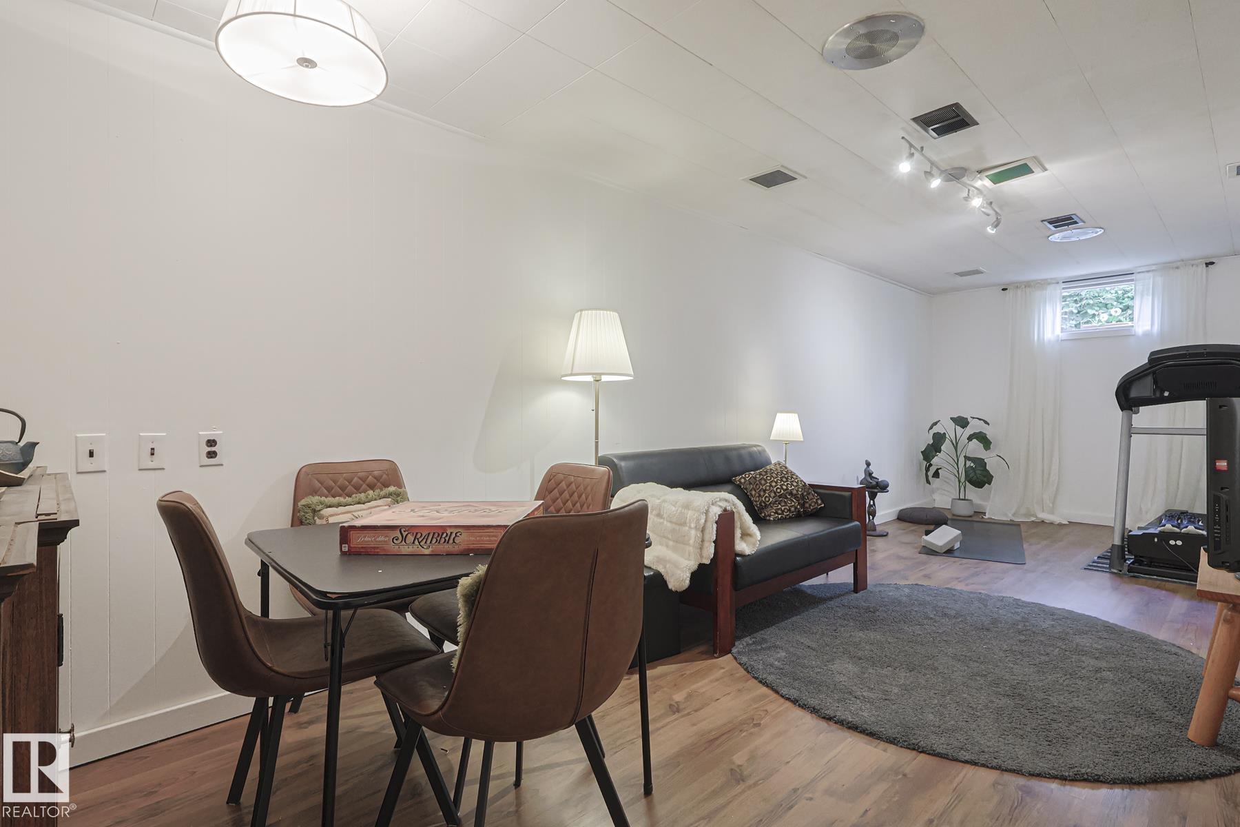 This gem has so much to offer; new SEWER LINE, SHINGLES, EAVES, SOFFITS (house & garage), HWT, CENTRAL AIR CONDITIONING and a FULLY RENOVATED MAIN FLOOR BATHROOM. Inside you will find the ORIGINAL HARDWOOD FLOORING throughout most of the MAIN FLOOR. ORIGINAL STUCCO CEILINGS in the LIVING and DINING ROOMS as well. The KITCHEN has been RENOVATED with SS Appliances. The main floor is complete with a PRIMARY BEDROOM and SECOND BEDROOM. The LOWER LEVEL has a spacious FAMILY/FLEX ROOM. A FULL BATHROOM, THIRD BEDROOM and a KITCHENETTE AREA, plus STORAGE, and LAUNDRY. OUTSIDE you will enjoy a fully LANDSCAPED BACKYARD with perennial garden, fruit trees/bushes and roses. PLENTY of green space for your needs. A LARGE DECK AREA for DINING plus a LOUNGING AREA. There is an ADDITIONAL PARKING SPACE beside DOUBLE GARAGE. Easy access to PUBLIC TRANSIT, SHOPPING, RIVERVALLEY TRAILS, HENDAY, SCHOOLS and HARDISTY REC CENTRE.