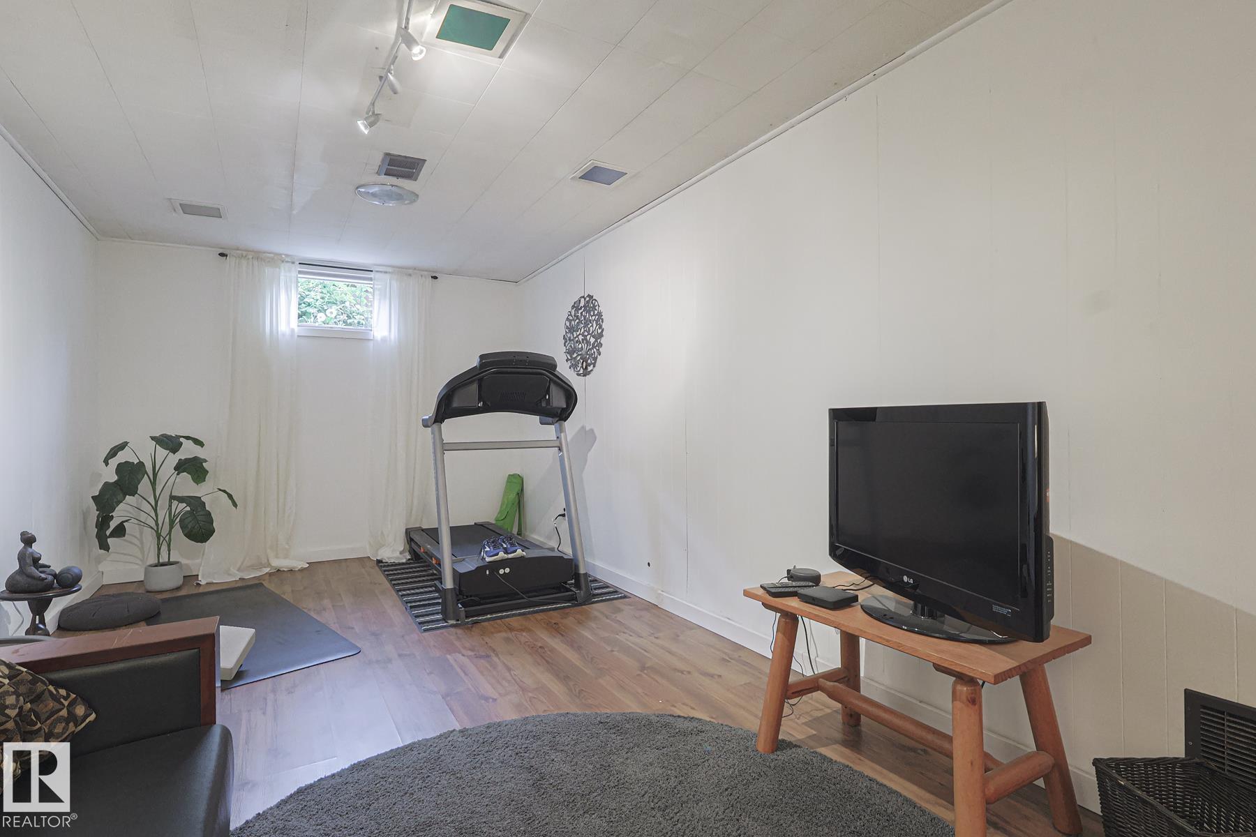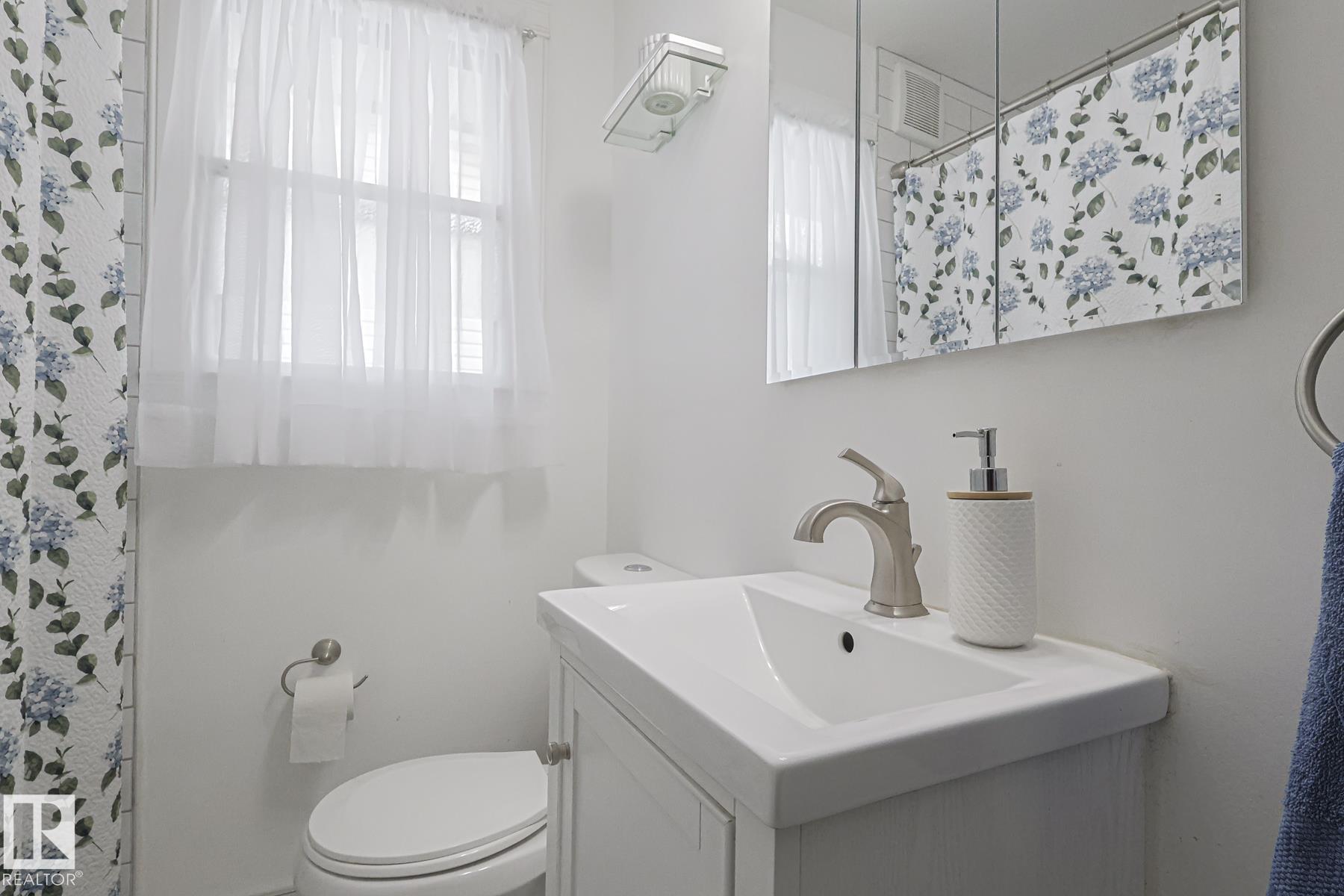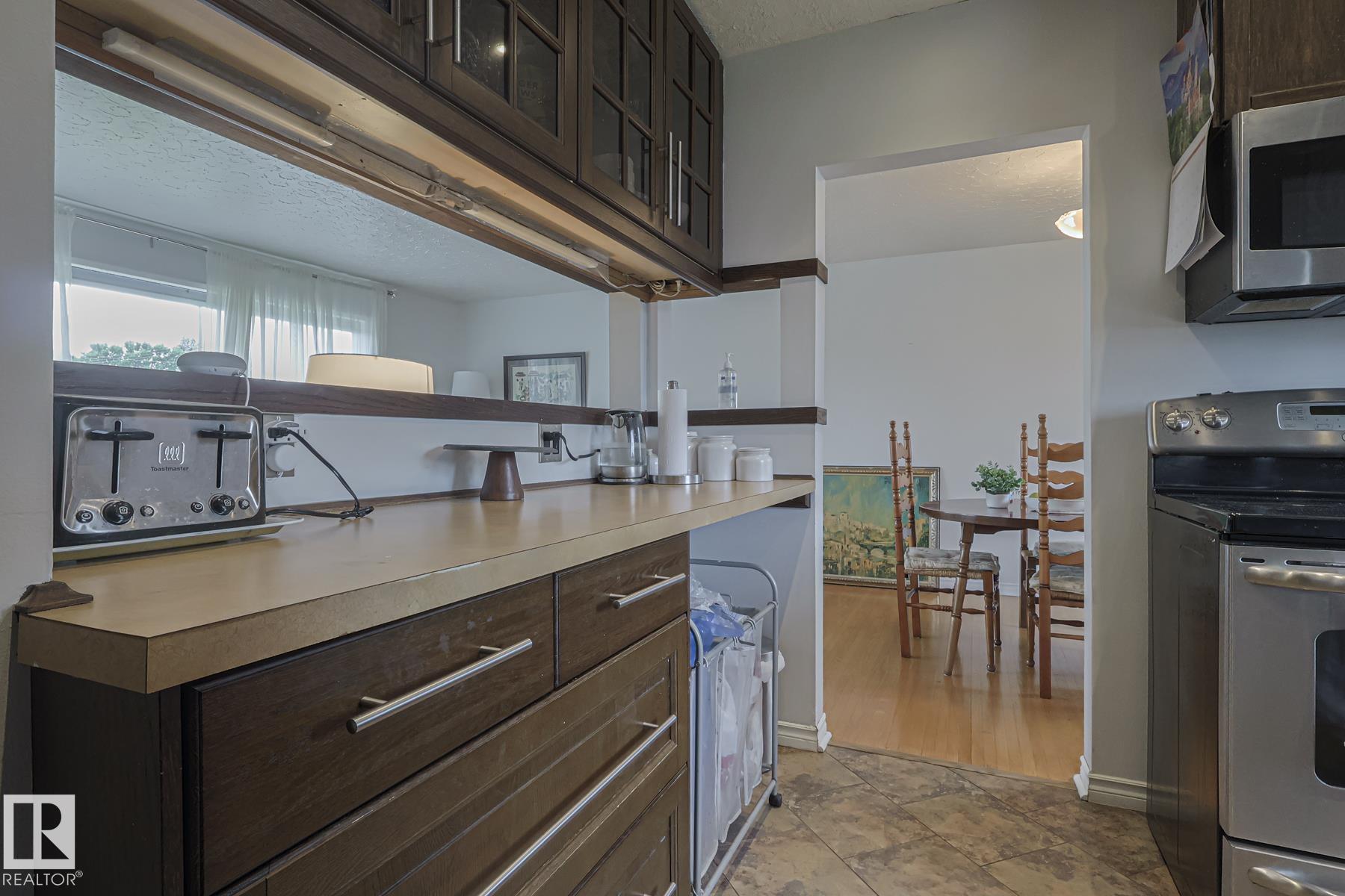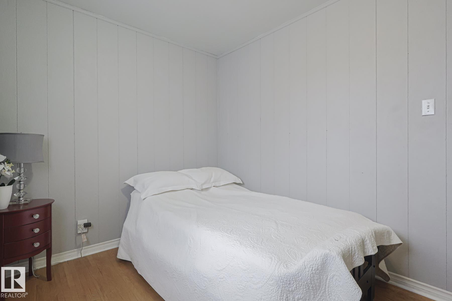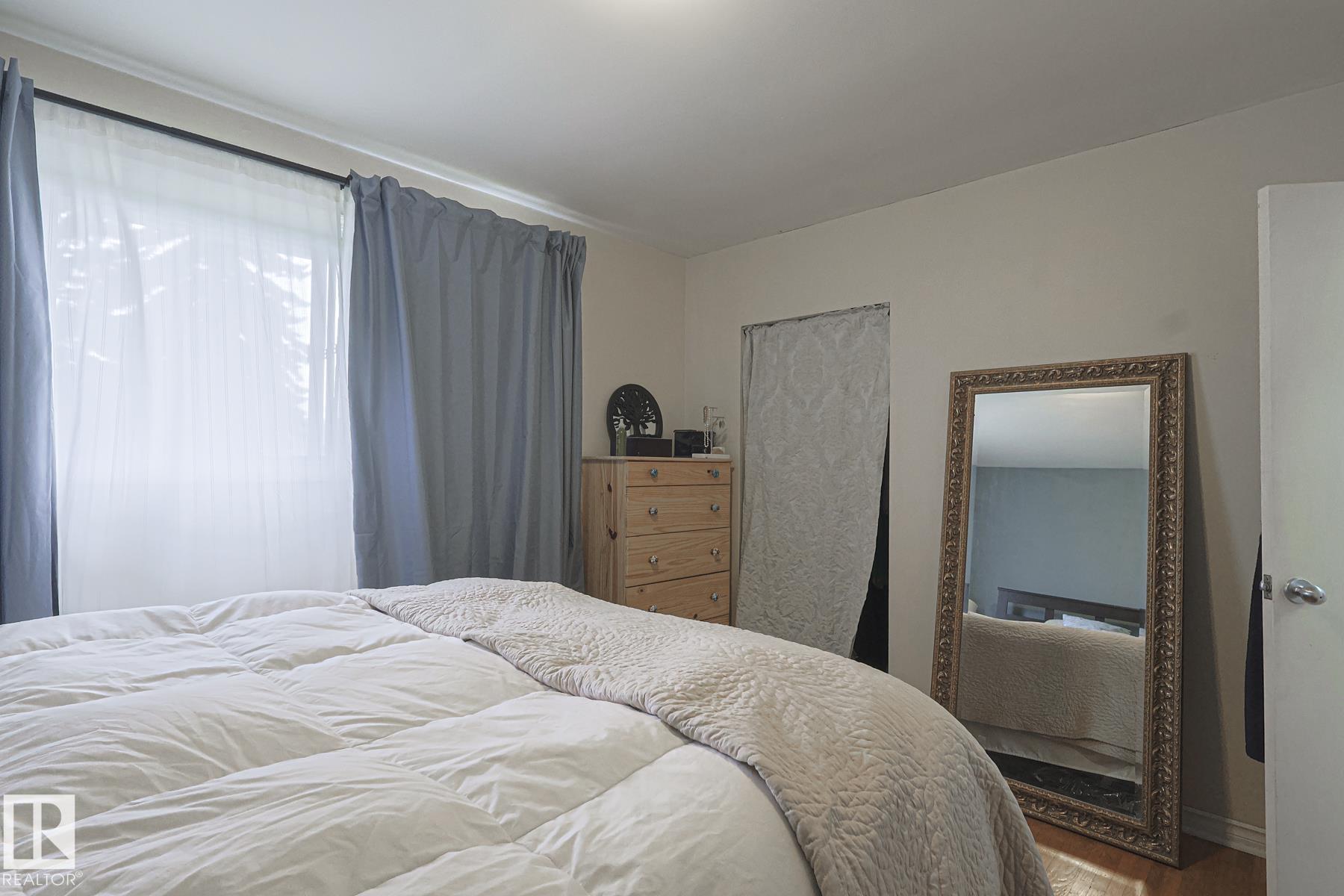 This gem has so much to offer; new SEWER LINE, SHINGLES, EAVES, SOFFITS (house & garage), HWT, CENTRAL AIR CONDITIONING and a FULLY RENOVATED MAIN FLOOR BATHROOM. Inside you will find the ORIGINAL HARDWOOD FLOORING throughout most of the MAIN FLOOR. ORIGINAL STUCCO CEILINGS in the LIVING and DINING ROOMS as well. The KITCHEN has been RENOVATED with SS Appliances. The main floor is complete with a PRIMARY BEDROOM and SECOND BEDROOM. The LOWER LEVEL has a spacious FAMILY/FLEX ROOM. A FULL BATHROOM, THIRD BEDROOM and a KITCHENETTE AREA, plus STORAGE, and LAUNDRY. OUTSIDE you will enjoy a fully LANDSCAPED BACKYARD with perennial garden, fruit trees/bushes and roses. PLENTY of green space for your needs. A LARGE DECK AREA for DINING plus a LOUNGING AREA. There is an ADDITIONAL PARKING SPACE beside DOUBLE GARAGE. Easy access to PUBLIC TRANSIT, SHOPPING, RIVERVALLEY TRAILS, HENDAY, SCHOOLS and HARDISTY REC CENTRE.