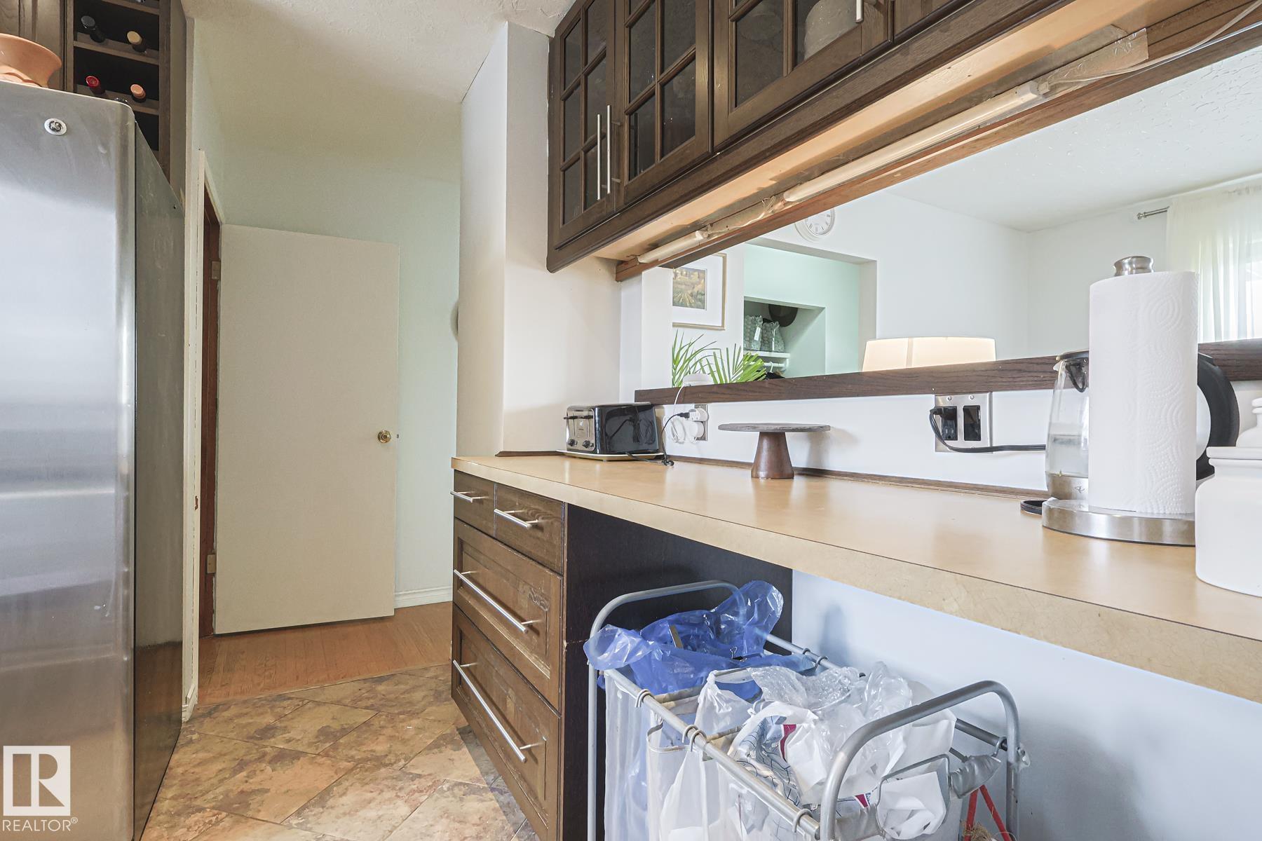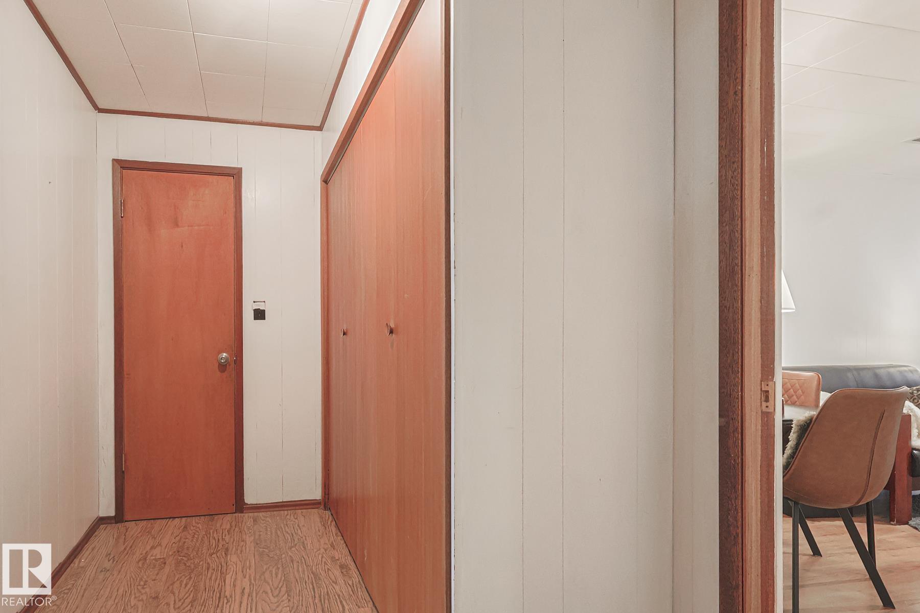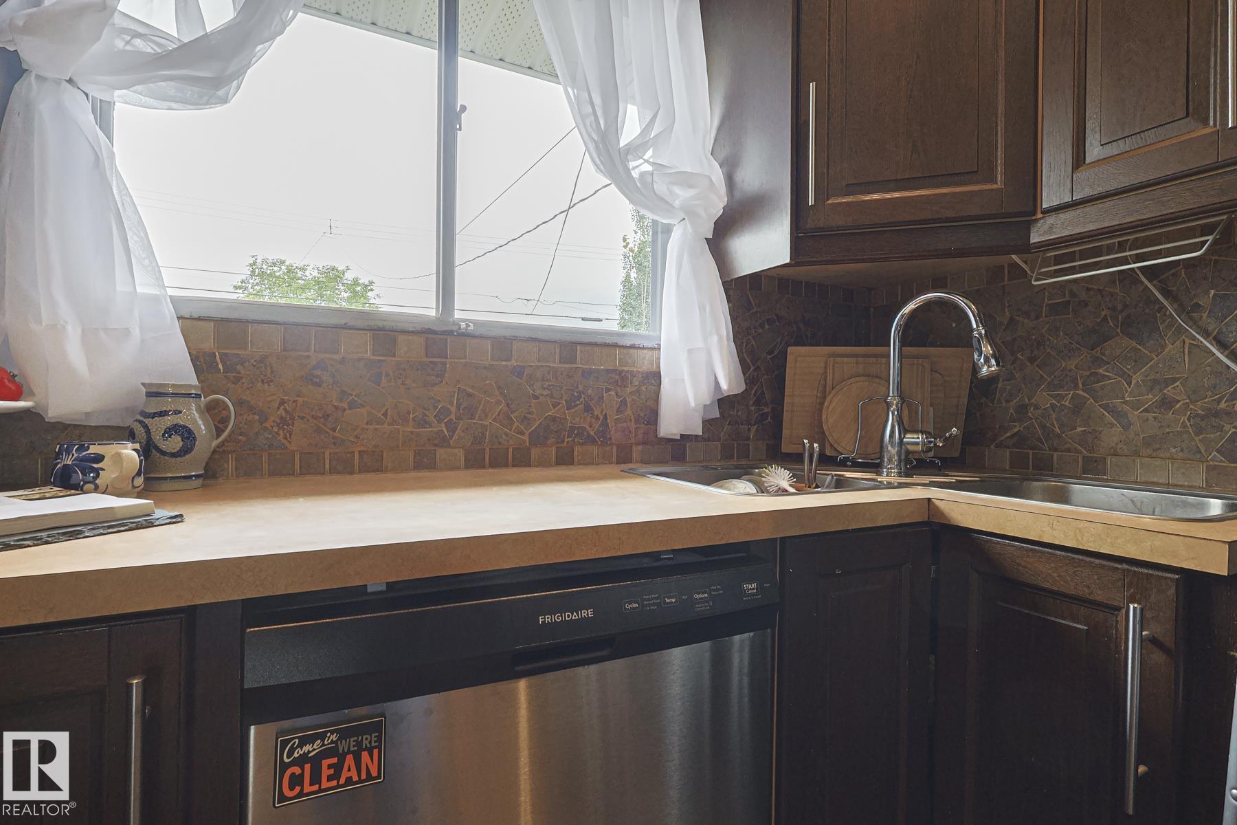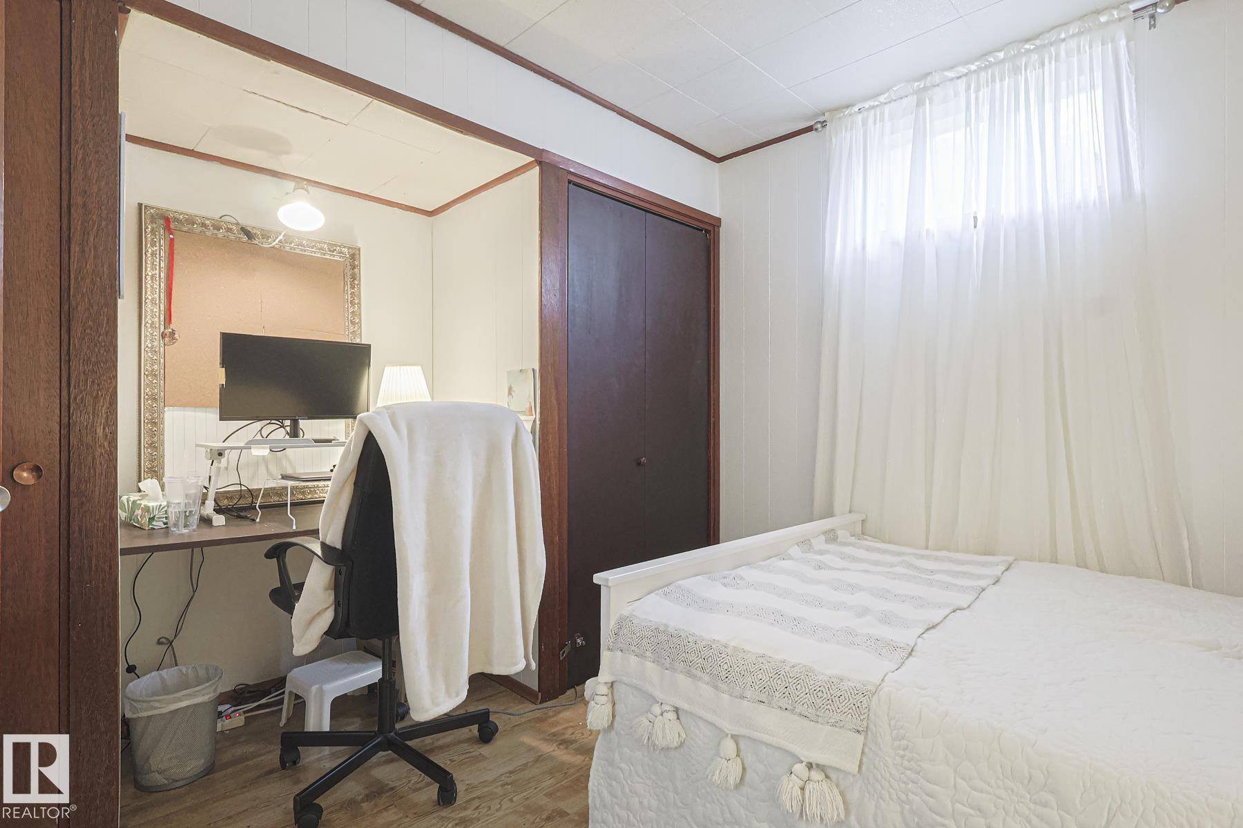 This gem has so much to offer; new SEWER LINE, SHINGLES, EAVES, SOFFITS (house & garage), HWT, CENTRAL AIR CONDITIONING and a FULLY RENOVATED MAIN FLOOR BATHROOM. Inside you will find the ORIGINAL HARDWOOD FLOORING throughout most of the MAIN FLOOR. ORIGINAL STUCCO CEILINGS in the LIVING and DINING ROOMS as well. The KITCHEN has been RENOVATED with SS Appliances. The main floor is complete with a PRIMARY BEDROOM and SECOND BEDROOM. The LOWER LEVEL has a spacious FAMILY/FLEX ROOM. A FULL BATHROOM, THIRD BEDROOM and a KITCHENETTE AREA, plus STORAGE, and LAUNDRY. OUTSIDE you will enjoy a fully LANDSCAPED BACKYARD with perennial garden, fruit trees/bushes and roses. PLENTY of green space for your needs. A LARGE DECK AREA for DINING plus a LOUNGING AREA. There is an ADDITIONAL PARKING SPACE beside DOUBLE GARAGE. Easy access to PUBLIC TRANSIT, SHOPPING, RIVERVALLEY TRAILS, HENDAY, SCHOOLS and HARDISTY REC CENTRE.
