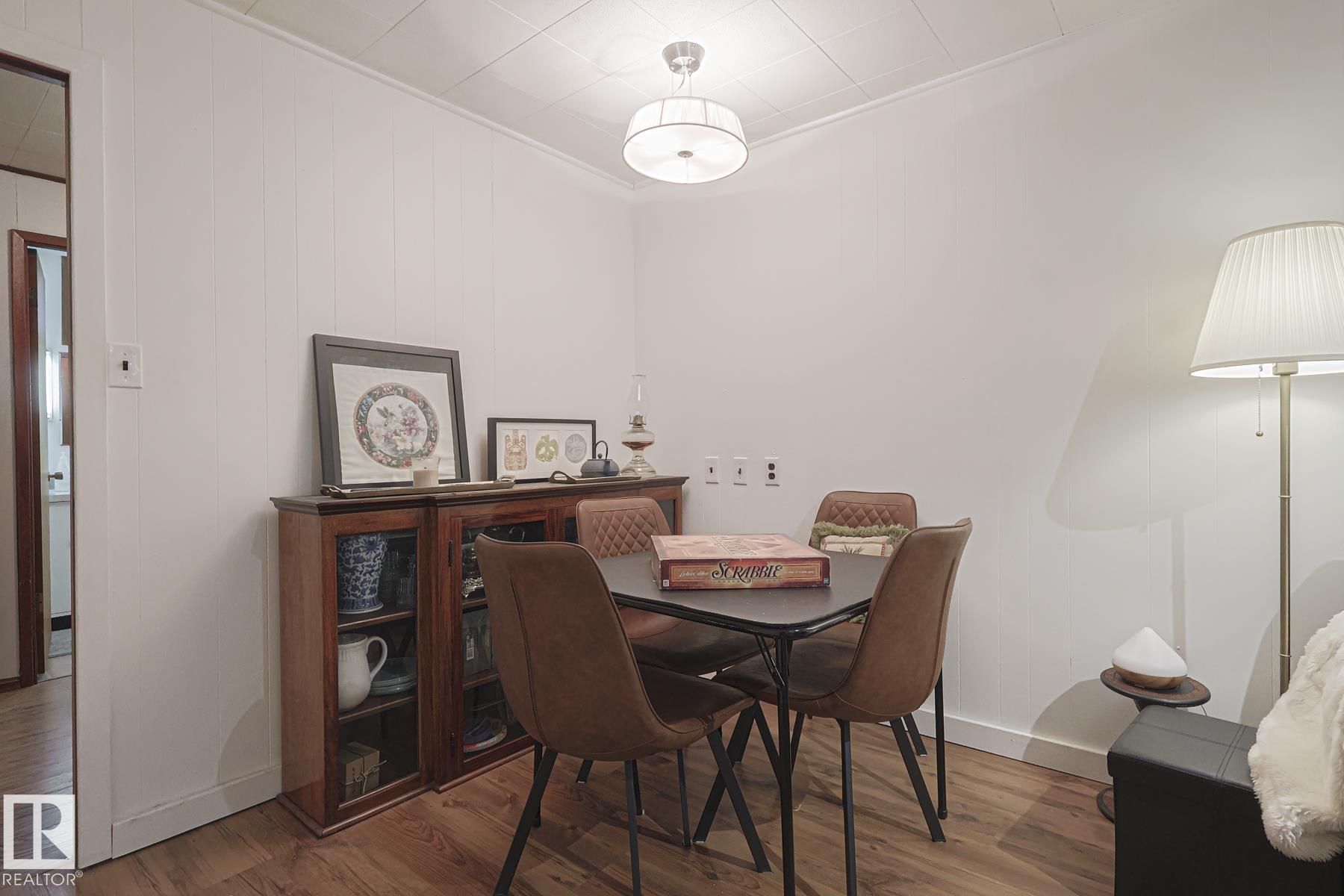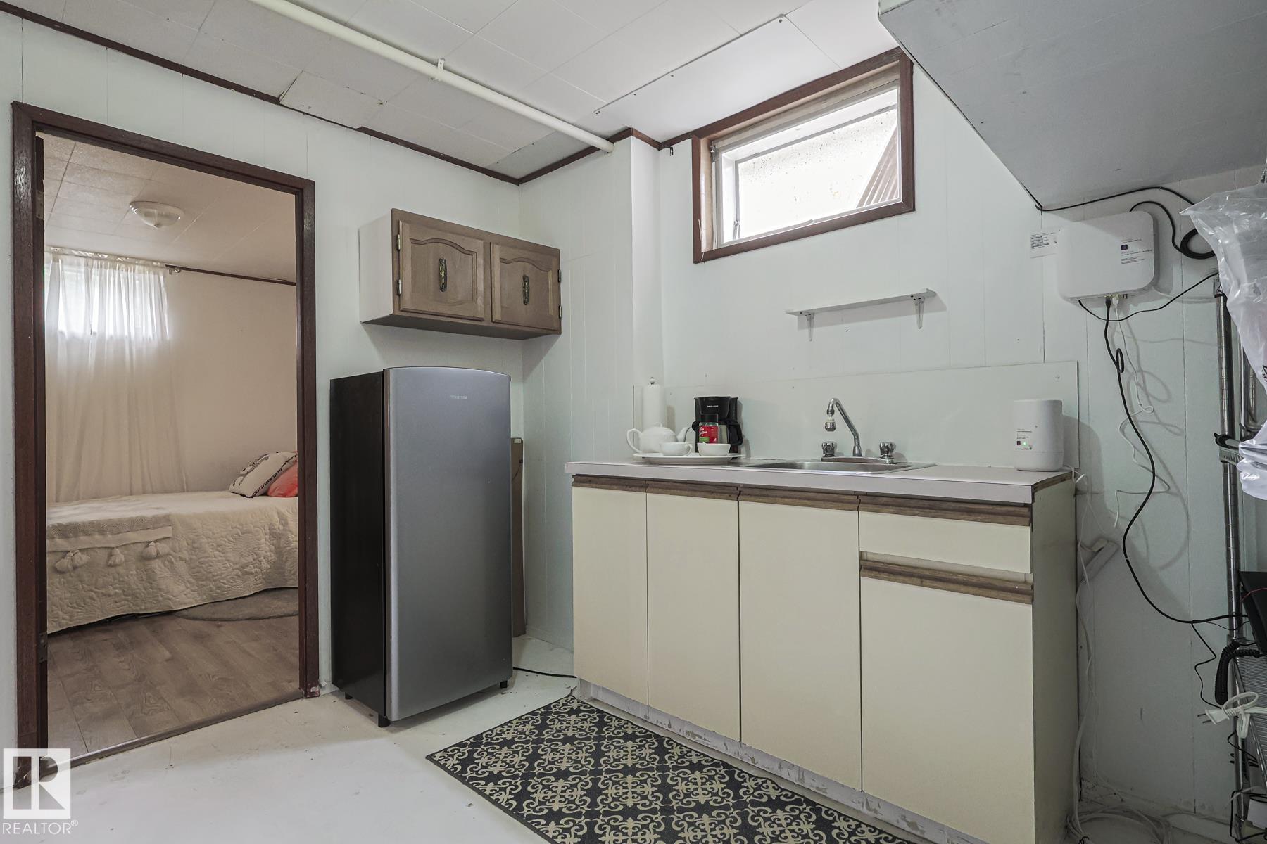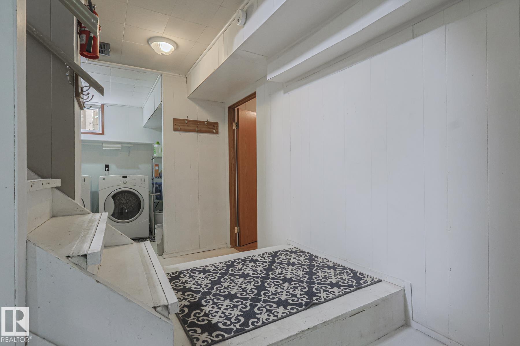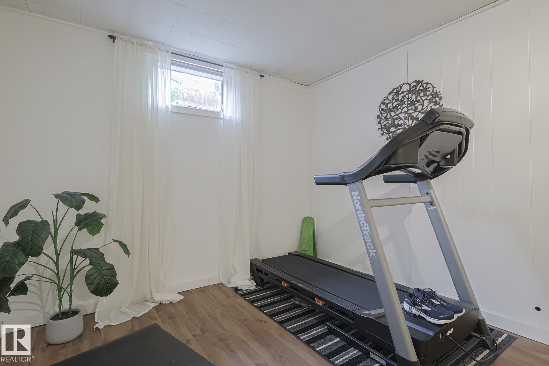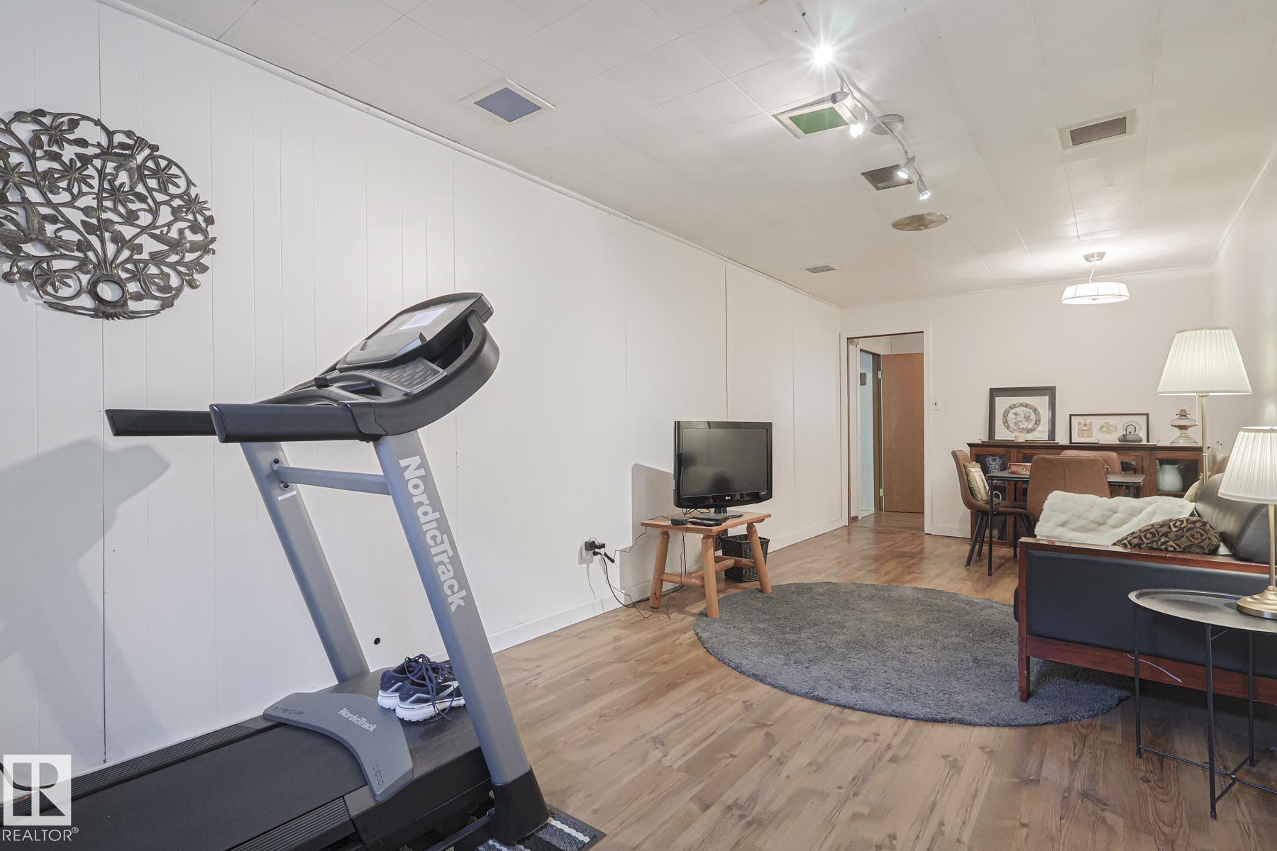 This gem has so much to offer; new SEWER LINE, SHINGLES, EAVES, SOFFITS (house & garage), HWT, CENTRAL AIR CONDITIONING and a FULLY RENOVATED MAIN FLOOR BATHROOM. Inside you will find the ORIGINAL HARDWOOD FLOORING throughout most of the MAIN FLOOR. ORIGINAL STUCCO CEILINGS in the LIVING and DINING ROOMS as well. The KITCHEN has been RENOVATED with SS Appliances. The main floor is complete with a PRIMARY BEDROOM and SECOND BEDROOM. The LOWER LEVEL has a spacious FAMILY/FLEX ROOM. A FULL BATHROOM, THIRD BEDROOM and a KITCHENETTE AREA, plus STORAGE, and LAUNDRY. OUTSIDE you will enjoy a fully LANDSCAPED BACKYARD with perennial garden, fruit trees/bushes and roses. PLENTY of green space for your needs. A LARGE DECK AREA for DINING plus a LOUNGING AREA. There is an ADDITIONAL PARKING SPACE beside DOUBLE GARAGE. Easy access to PUBLIC TRANSIT, SHOPPING, RIVERVALLEY TRAILS, HENDAY, SCHOOLS and HARDISTY REC CENTRE.