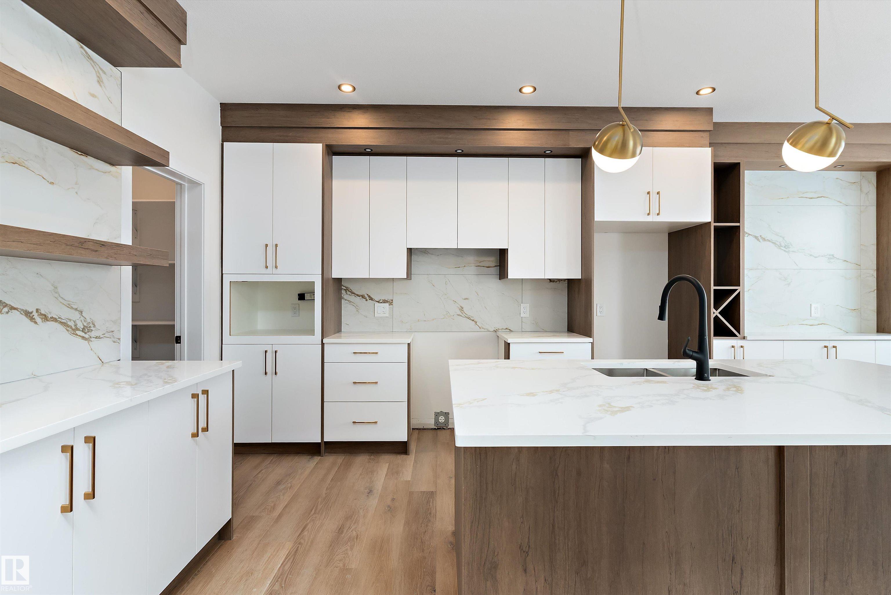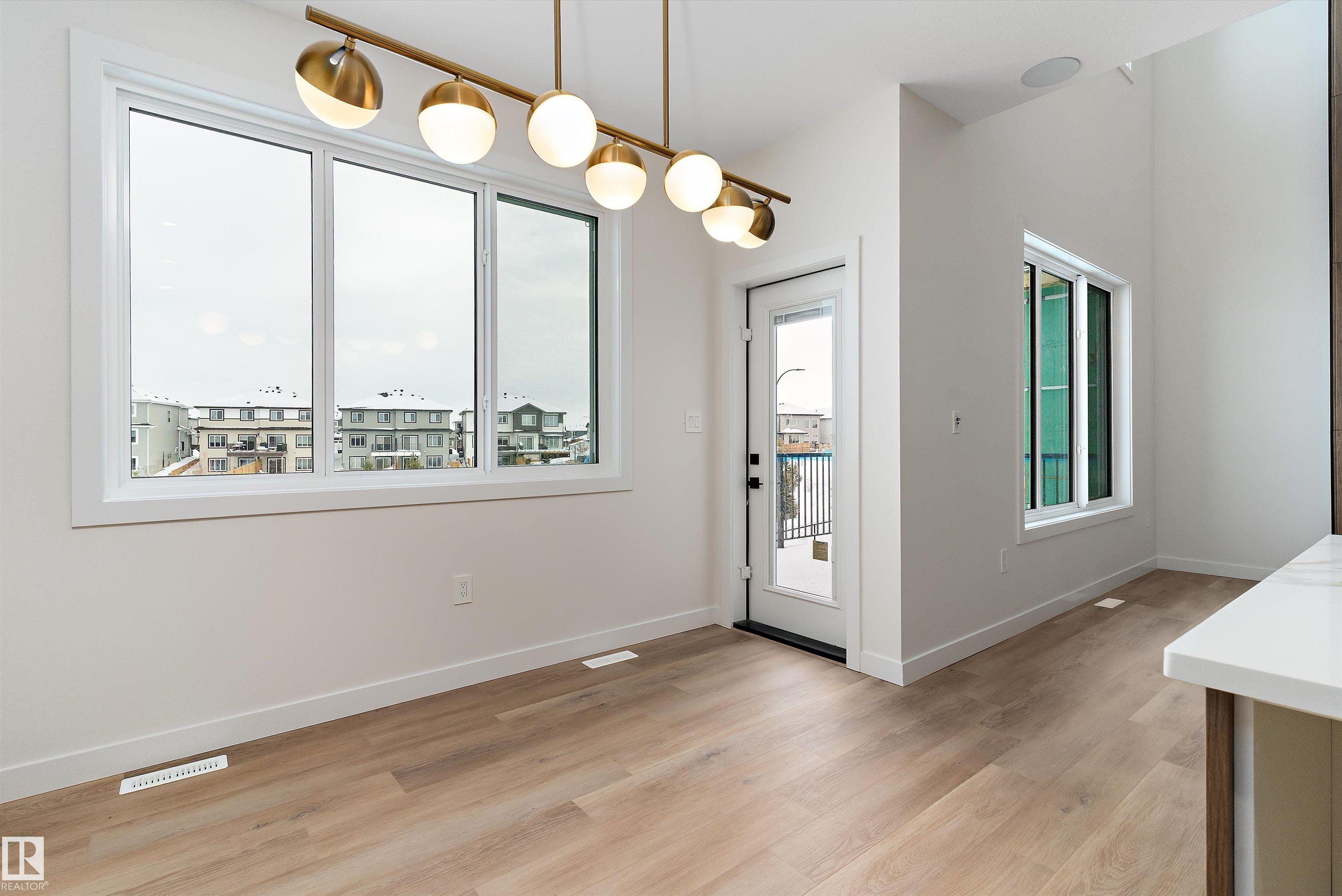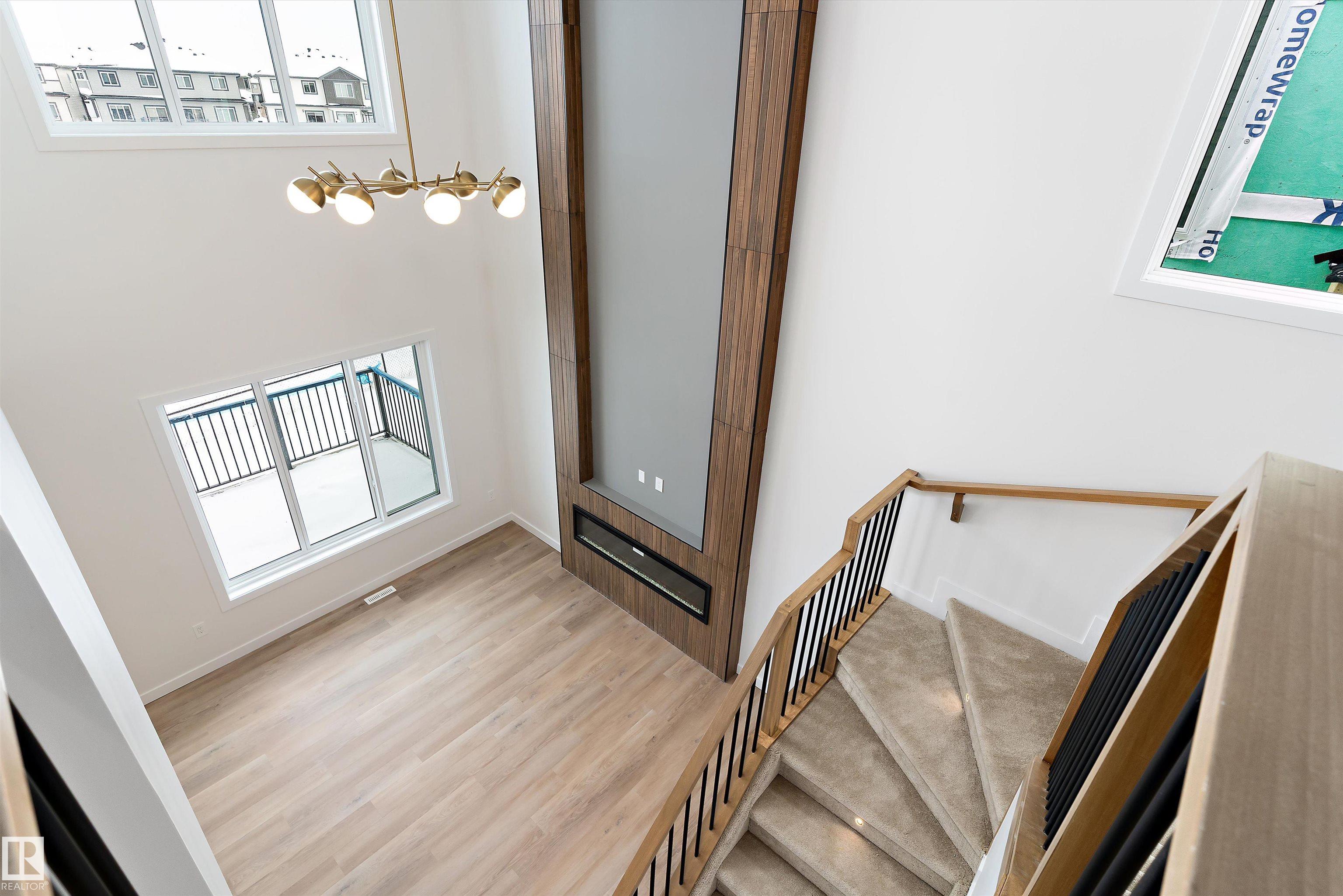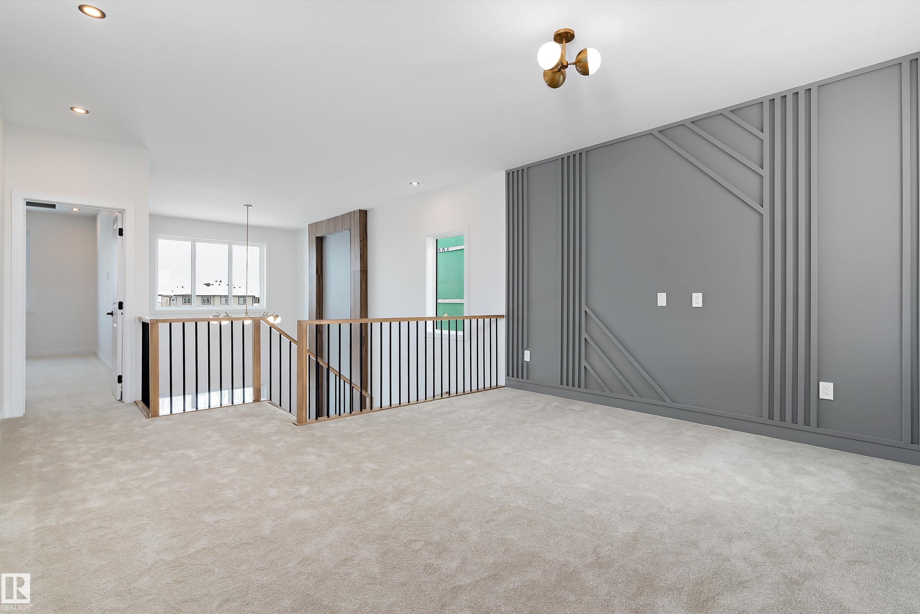 This stunning walkout home backing onto pond/greenspace in Jesperdale offers 2,340 sq. ft., 4 bedrooms, 3 full bathrooms, a bonus room, and 9-ft ceilings on all three levels. The main floor features luxury vinyl plank flooring, a versatile bedroom/den, and a spacious family room with an impressive 18-ft ceiling and grand fireplace. The modern kitchen is ideal for cooking and entertaining, featuring high-end cabinetry, quartz countertops, a large island, and a walk-in pantry. A bright dining area filled with natural light is perfect for gatherings, while a full bathroom completes this level. Upstairs, the primary suite includes a 5-piece ensuite and a spacious walk-in closet, along with two additional bedrooms, a full bathroom, a laundry room, and a bonus room with a work desk area. The unfinished walkout basement offers a separate entrance and rough-in for a bathroom, providing endless customization possibilities. This exceptional home is a must-see and could be the one you?ve been waiting to call HOME.