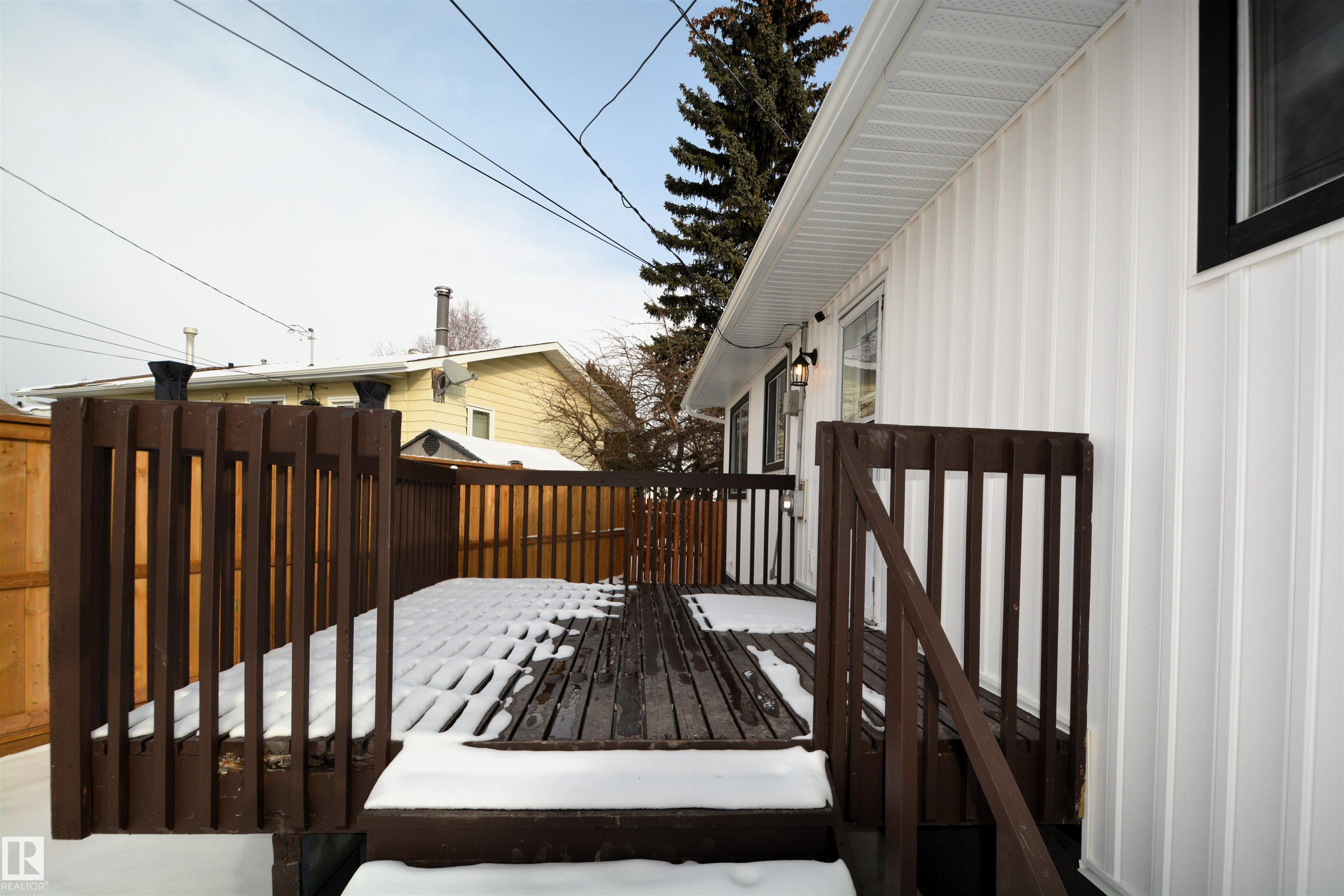 Stunning Renovated 4 Bedroom 2 Bathroom Family Home Located on a Low Traffic, Extremely Quiet Street. This 1071 Sq. Ft. Bungalow Features: Bright Kitchen W/Plenty Of Cabinets & Counter Space, Newer SS Appliances, Lg Dining Rm, Living Rm W/Huge Picture Window & Door Access to New Huge Front Deck, & Plenty of Windows For Natural Lighting. Developed Basement: Lg Family Rm W/Inviting Brick Wood Burning Fireplace W/Wood Storage, Lg 4th Bedroom, 3 pc Bathroom, Huge Laundry/Storage Rm W/Built in Shelving & Cold Rm. Upgraded Throughout, Including: Beautifully Renovated Bathrooms, Paint, Flooring, Light Fixtures, Siding, Facia, Eavestroughs, Ventilation, New Front Deck, Plumbing, Electrical, & More! Fenced Private Park Like Backyard W/Mature Trees, Fire Pit, Flowerbeds, Perennials, Storage Shed, Alley Access, Lg Parking Area, RV Parking, Huge New Front Deck & Cozy Back Deck to Entertain Guests. Plenty of Room in This Huge Yard to Build the Perfect Man Cave. Great Location Close to Schools, Parks, & Walking Trails.