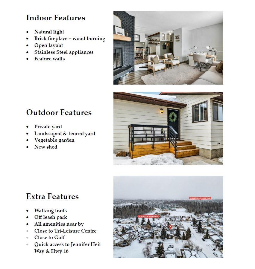 Welcome to this well-maintained 3-bdrm, 3-bath bungalow nestled in a quiet cul-de-sac, offering 1,220 sq ft of comfortable main floor living. The sunken living room w/ a charming corner brick fireplace & bright south-facing windows is highlighted by a lovely feature wall. A spacious dining area overlooks the living room, creating an easy, open flow for everyday living & entertaining. The updated kitchen offers generous counter space; S.S. appliances & windows above sink for natural light. With a feature wall, the primary bdrm includes a walk-in closet & private 3-pce ensuite. With 2 more bedrooms & 4-pce bath, the main level stands out. The bsmt provides still more living space: lrg family rm, 3-pce bath, playroom, den & storage. Outside, enjoy established landscaping, fully fenced back yard w/ apple trees, fire pit, shed & garden as well as a front drive w/ parking pad. Great family home or for someone seeking single-level living. Walking trails, schools, shopping, & Tri Leisure Centre are all close by.