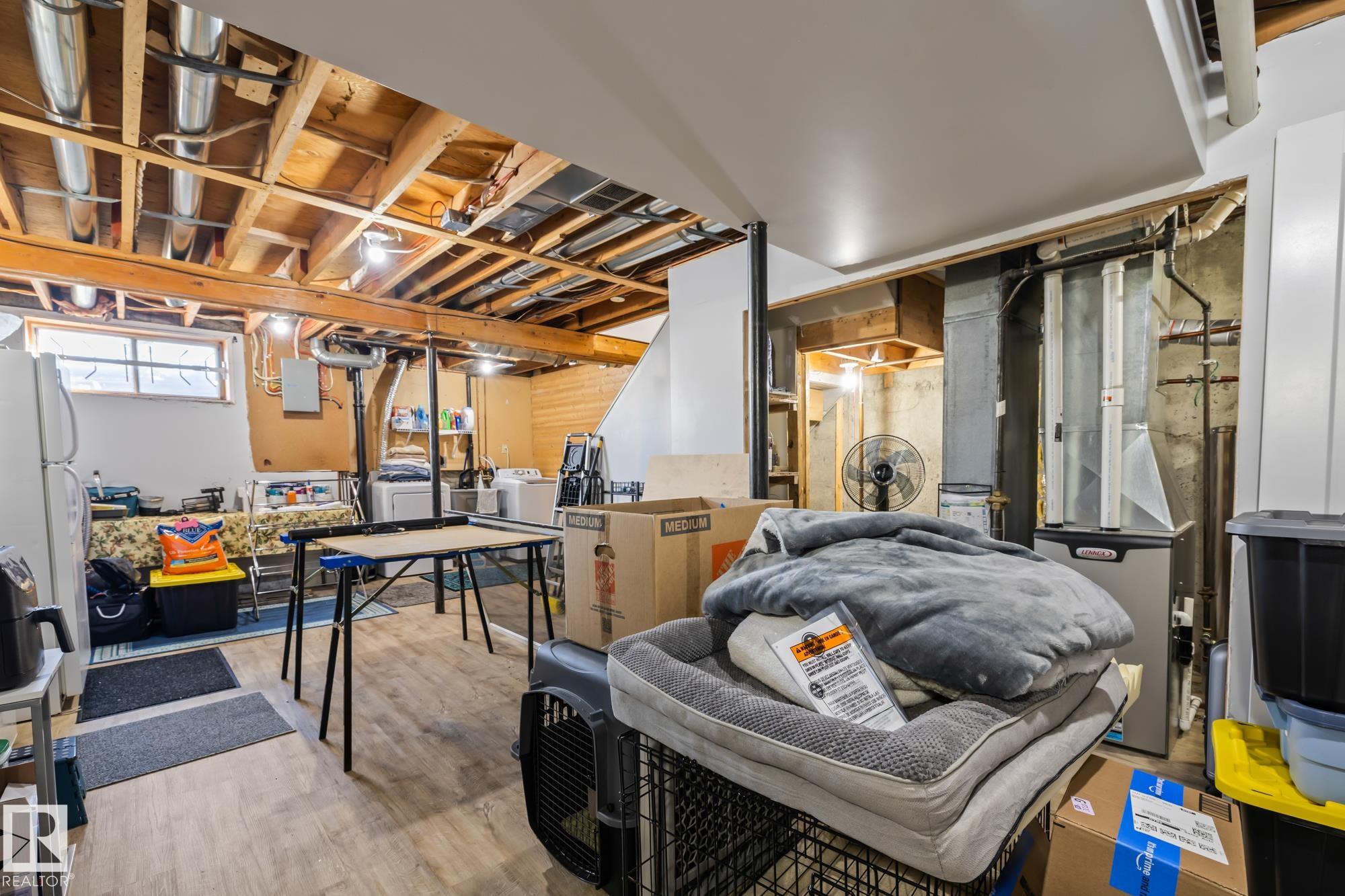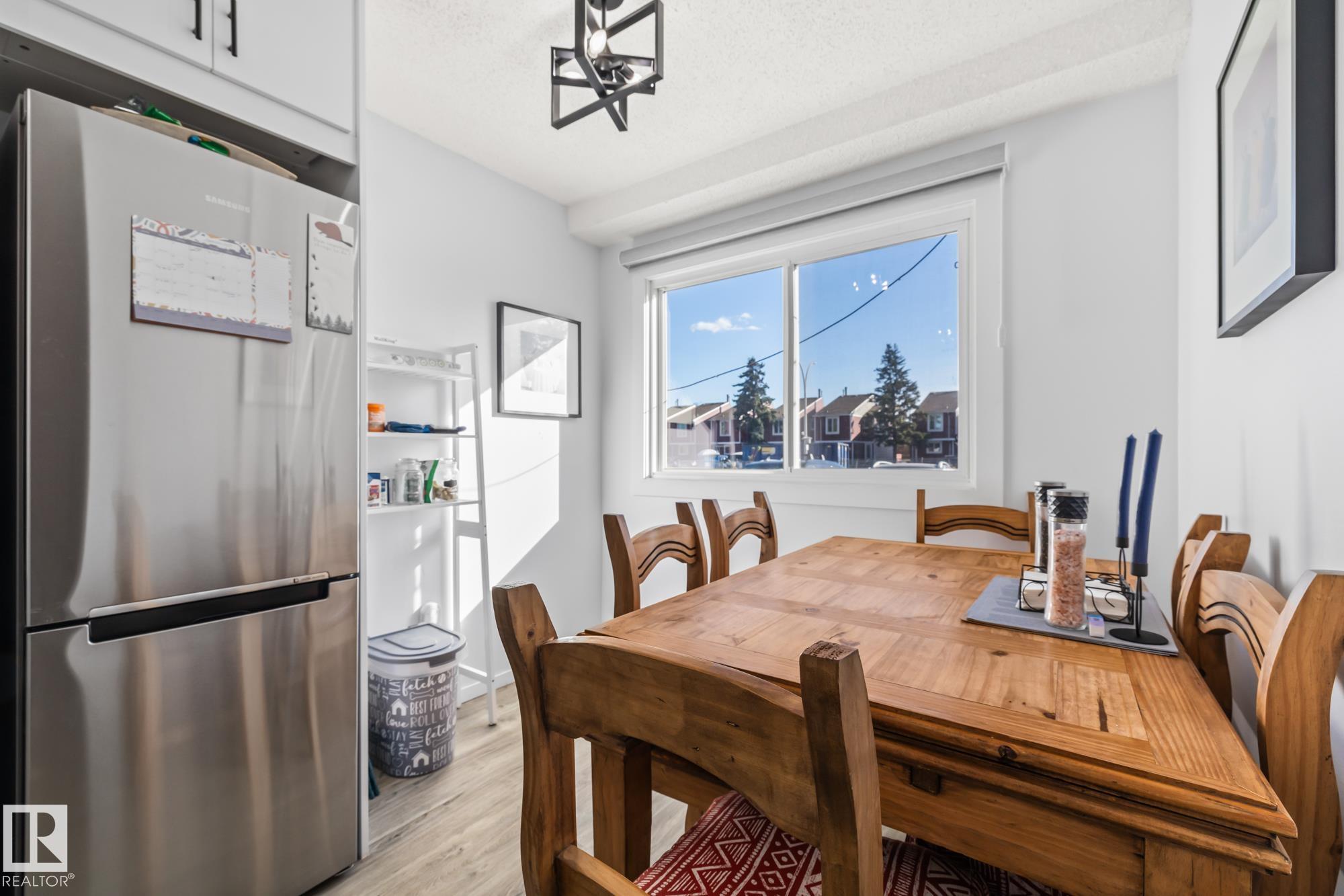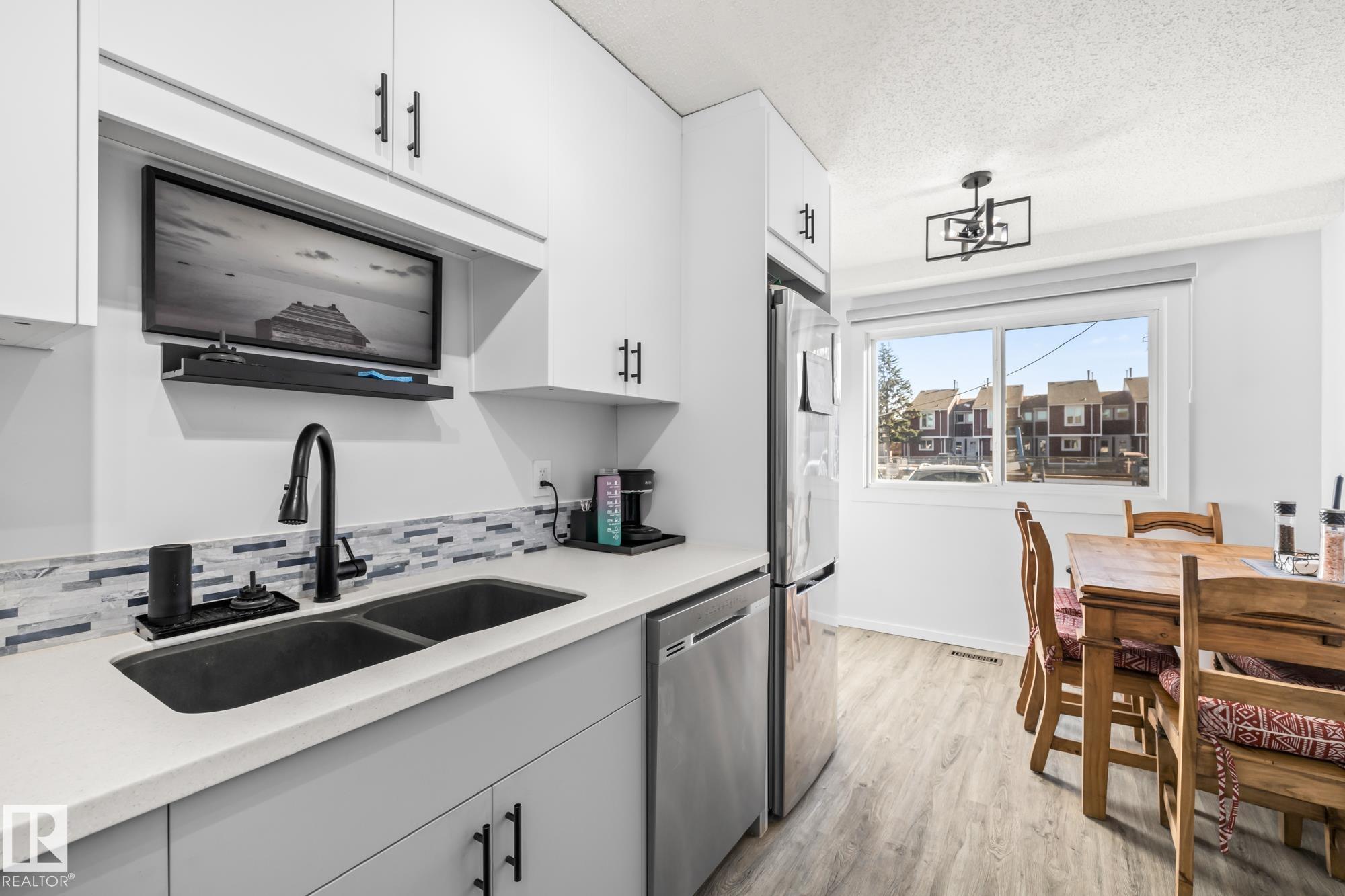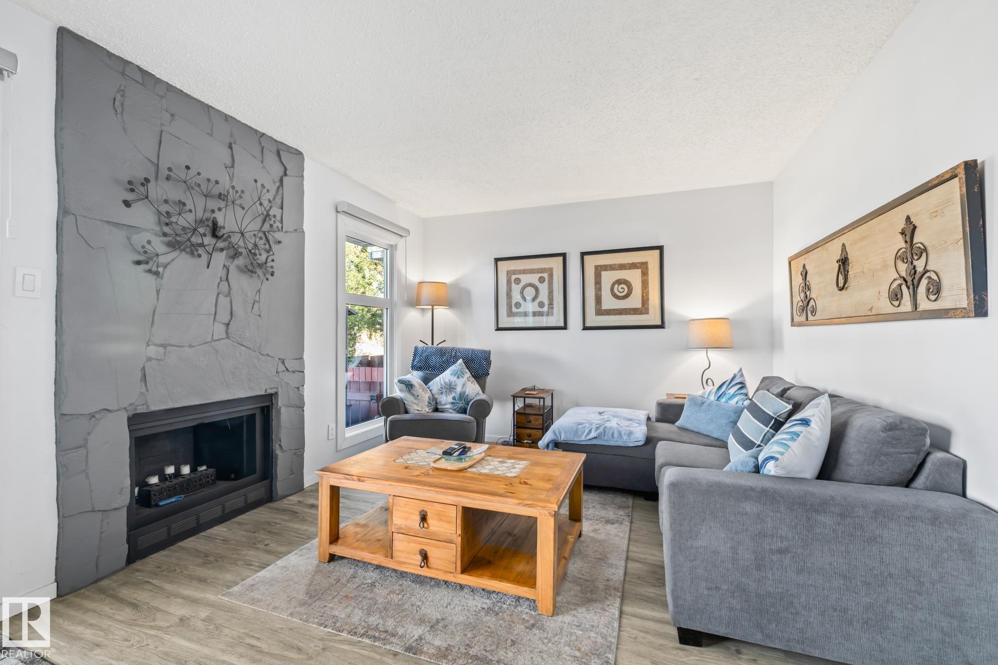 Welcome home to Red Willow! This beautifully renovated corner unit townhouse is move-in ready and full of upgrades. The main floor features new vinyl plank flooring, a bright south-facing dining area, an updated 2-piece bathroom, and a fully renovated kitchen with Corian countertops, new cabinets, and stainless steel appliances. The spacious living room offers a stone-faced wood-burning fireplace and access to your fully fenced yard backing onto green space. Upstairs, enjoy new carpet, a bright renovated 3-piece bathroom, a large primary bedroom, and two more spacious bedrooms. The basement is partially finished with new furnace, new hot water tank, laundry area, and extra storage?ready for your final touch. The complex also features brand new vinyl siding just installed for great curb appeal. Includes two assigned powered parking stalls and is close to parks, trails, schools, shopping, restaurants, and much more.