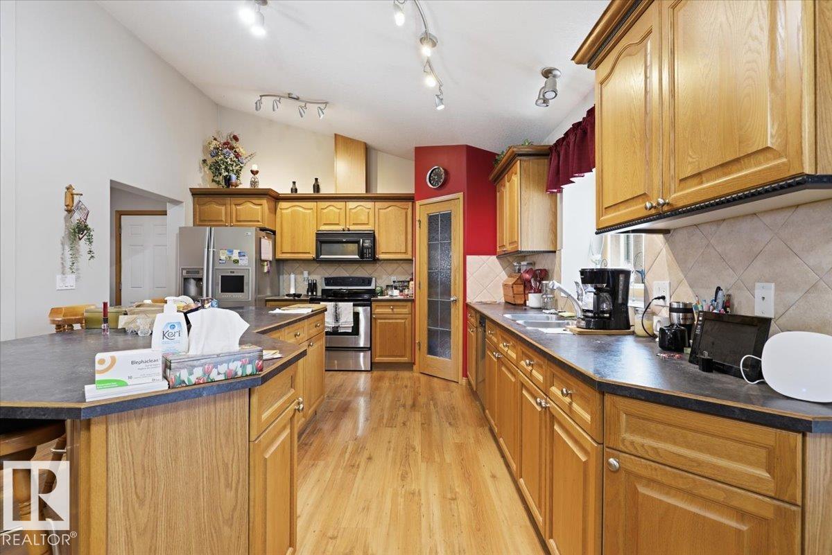 Located close to the lake this Beautiful Property has a 1669 sq/ft home with a Heated Double Attached Garage and Shop! Inside, the main floor of the home has three bedrooms including the primary that has its own 5 piece ensuite bathroom and walk-in closet. The open concept kitchen, dining, and living room are spacious and bright. A 4 piece bathroom, and 2 piece bathroom/laundry room conclude the main floor plan. The Fully Finished Basement greets you with a large family room. Three more rooms in the basement could be used as bedrooms if needed with a 3 piece bathroom amongst them. The Shop measures 18'x48' with half being a heated workshop and the other half used for parking and cold storage. Air Conditioning, Landscaping, and a Paved Driveway are just a few of the many upgrades. This well taken care of property shows off its pride of ownership inside and out!