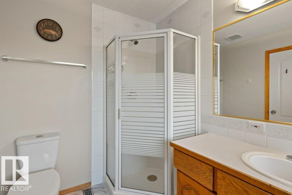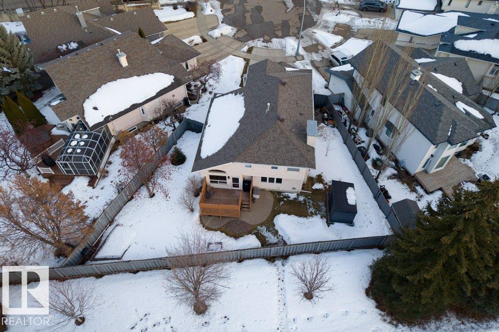 Former showhome in sought-after Oakmont! This beautifully maintained 2,015 sq ft 2-storey is tucked away on a quiet cul-de-sac and offers bright, functional living throughout. The kitchen showcases solid oak cabinetry, granite countertops, a travertine backsplash, gas stove, stainless steel appliances, a vaulted ceiling, and a handy island all flowing into the sunny dining nook overlooking the west-facing backyard with deck, storage shed, and direct trail access. The front living room also features a soaring vaulted ceiling, creating an impressive and airy first impression. A cozy family room with gas fireplace, main floor bedroom/den, flexible front room, and convenient laundry add everyday versatility. Upstairs, the spacious primary suite offers a large walk-in closet and 4-piece ensuite with soaker tub, plus two additional bedrooms and a full bath. Updates include roof and furnace (2015), A/C plus a double attached garage and fiber optics to the home. Backing onto green space